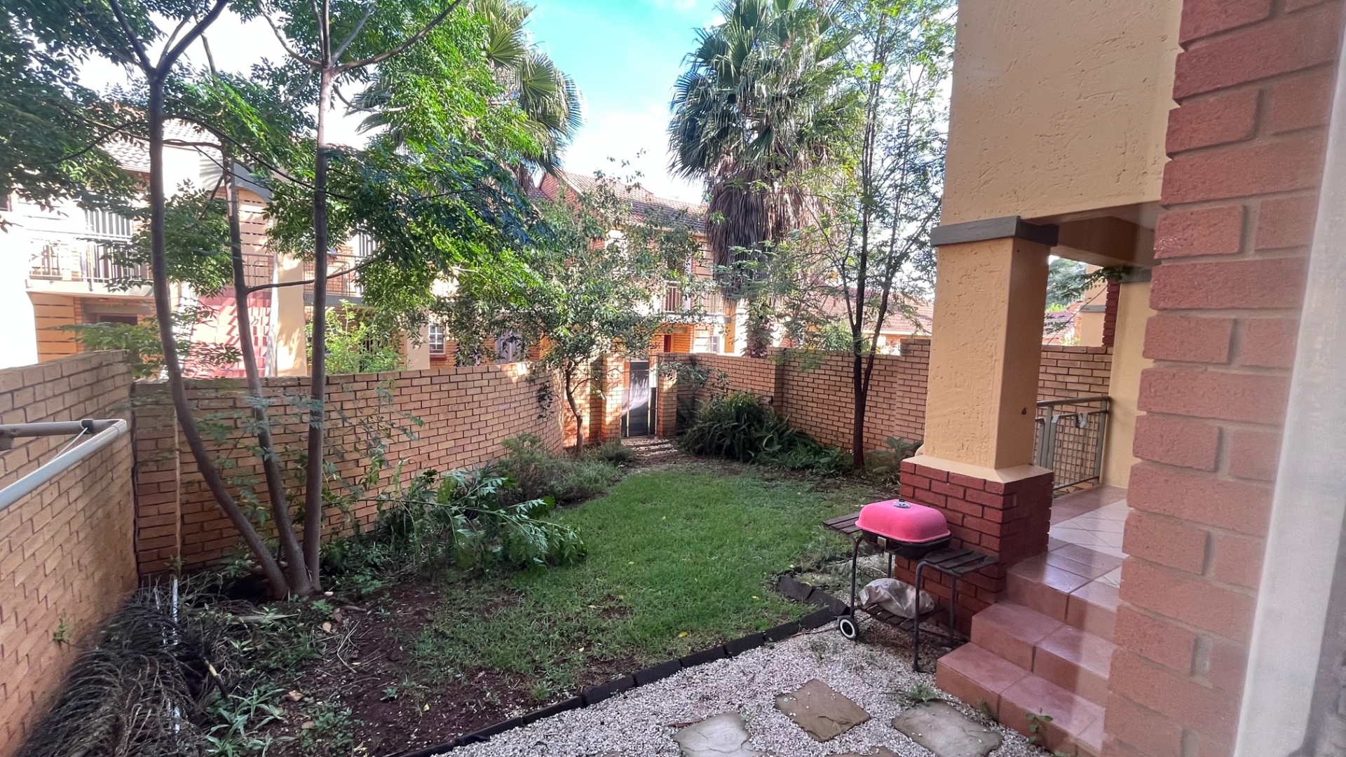 Discover this inviting 2-bedroom, 1-bathroom rental property spanning 83 sqm, perfectly situated within a secure estate. The residence features an open-plan lounge and dining area, benefiting from abundant natural light and direct access to a private patio and garden via large sliding doors. The compact, L-shaped kitchen is equipped with light wood cabinetry, dark countertops, a built-in hob, and a double stainless steel sink, complemented by a tiled backsplash and floor. Ideal for individuals or small families, this home offers a comfortable lifestyle with pets allowed. Enjoy the private, enclosed garden and covered patio. Parking includes a single garage and an additional space. Residents also benefit from access to the estate's communal pool, squash court, and tennis court, enhancing the living experience. Security is a priority within this well-managed security estate, featuring 24-hour security, CCTV surveillance, electric fencing, an access gate, security post, and intercom system, ensuring peace of mind. The property is also fibre-ready, providing high-speed internet connectivity for modern living. Located in Mooikloof Ridge, Pretoria, this property offers a desirable address within a sought-after estate, combining suburban tranquility with convenient access to city amenities. Key Features: * 2 Bedrooms, 1 Bathroom * 83 sqm Floor Size * Open-plan Lounge & Dining * Private Patio & Garden * Single Garage & Additional Parking * Fibre-ready Connectivity * 24-Hour Security Estate * Communal Pool, Squash & Tennis Courts * Pets Allowed
