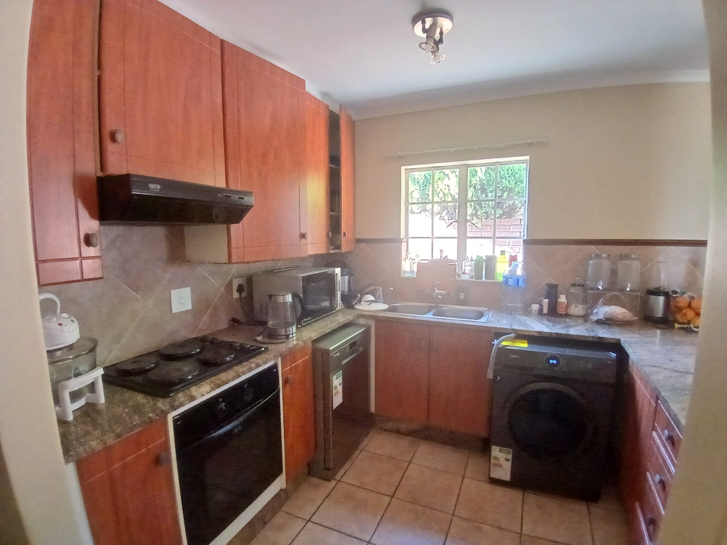 Discover comfortable living in this spacious 112 sqm apartment located within the sought-after Mooikloof Ridge estate in Pretoria. The inviting open-plan living and dining areas are bathed in natural light, flowing seamlessly from large sliding doors that provide access to a private outdoor space. Neutral walls and easy-to-maintain tiled flooring create a versatile canvas for your personal style. The functional U-shaped kitchen is well-appointed with ample wooden cabinetry, generous counter space, a double sink, and includes essential appliances such as a stove, oven, extractor, and a washing machine, ensuring convenience for daily living. This residence features two comfortable bedrooms, offering private retreats for residents. The main bedroom benefits from an en-suite bathroom, providing added privacy and convenience. A second well-appointed bathroom serves the additional bedroom and guests. Both bathrooms are fully tiled and include a bathtub and vanity with storage, catering to practical needs. Perfect for professionals or small families, this pet-friendly rental offers a desirable lifestyle within a secure complex. Residents enjoy access to a range of communal amenities, including aquatic activities with a sparkling pool and a clubhouse, fostering a vibrant community atmosphere. The property's cul-de-sac location within the estate ensures a tranquil environment. Security is a priority within this metropolitan security estate, featuring an access gate for controlled entry and exit. The unit further benefits from two dedicated garages, providing secure parking and additional storage. Located in Pretoria's desirable Mooikloof Ridge, residents enjoy a peaceful environment with convenient access to urban amenities, making it an ideal location for modern living. Key Features: * 2 Bedrooms, 2 Bathrooms (1 en-suite) * 2 Garages * 112 sqm Floor Size * Open-plan living and dining areas * Modern kitchen with integrated appliances * Access to private outdoor space * Pet-friendly accommodation * Secure estate with access gate * Communal pool and clubhouse facilities
