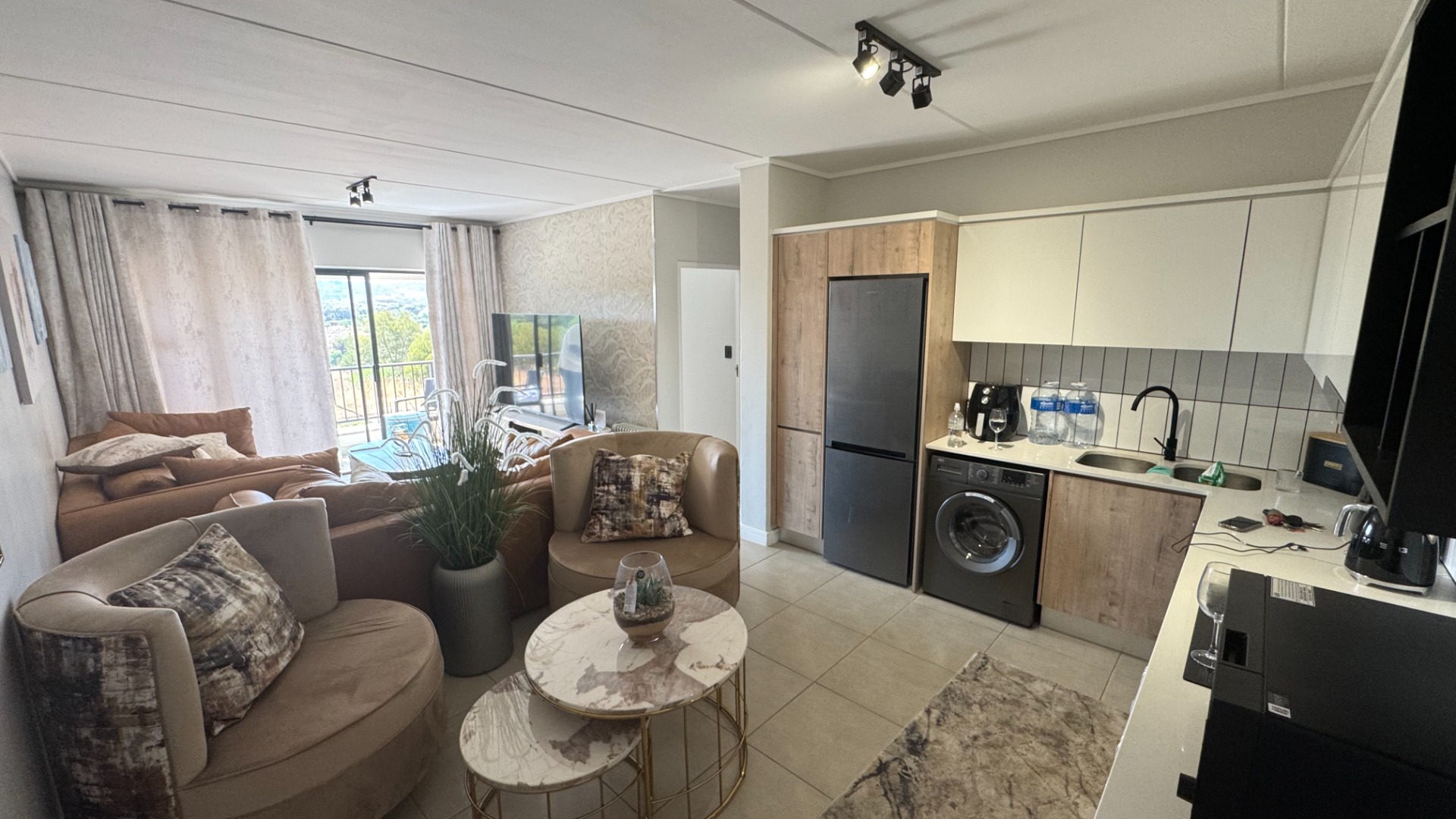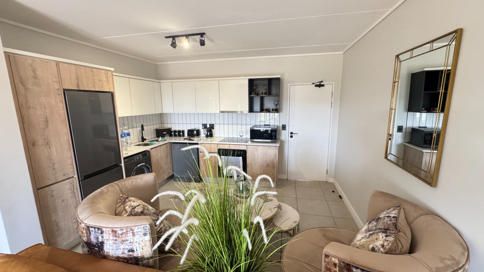 The open-plan kitchen, offering both functionality and elegance. It flows effortlessly into a spacious living area—perfect for relaxing or entertaining guests.