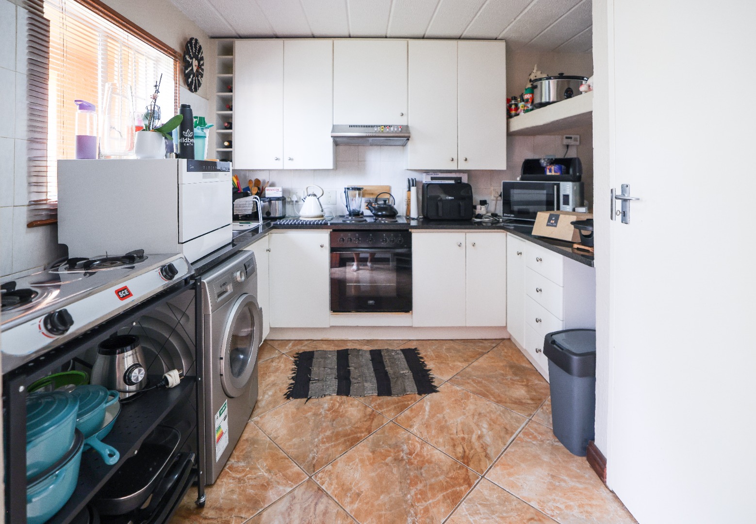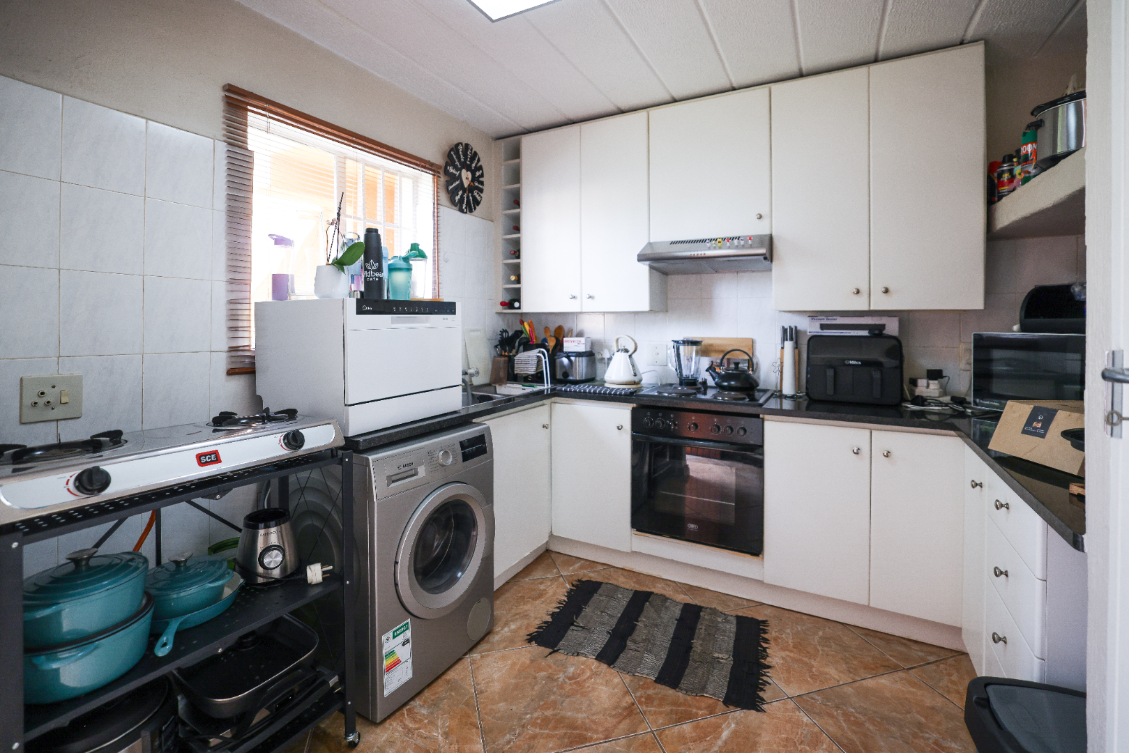 - Kitchen with Defy stove/oven and spacious cupboards, pantry