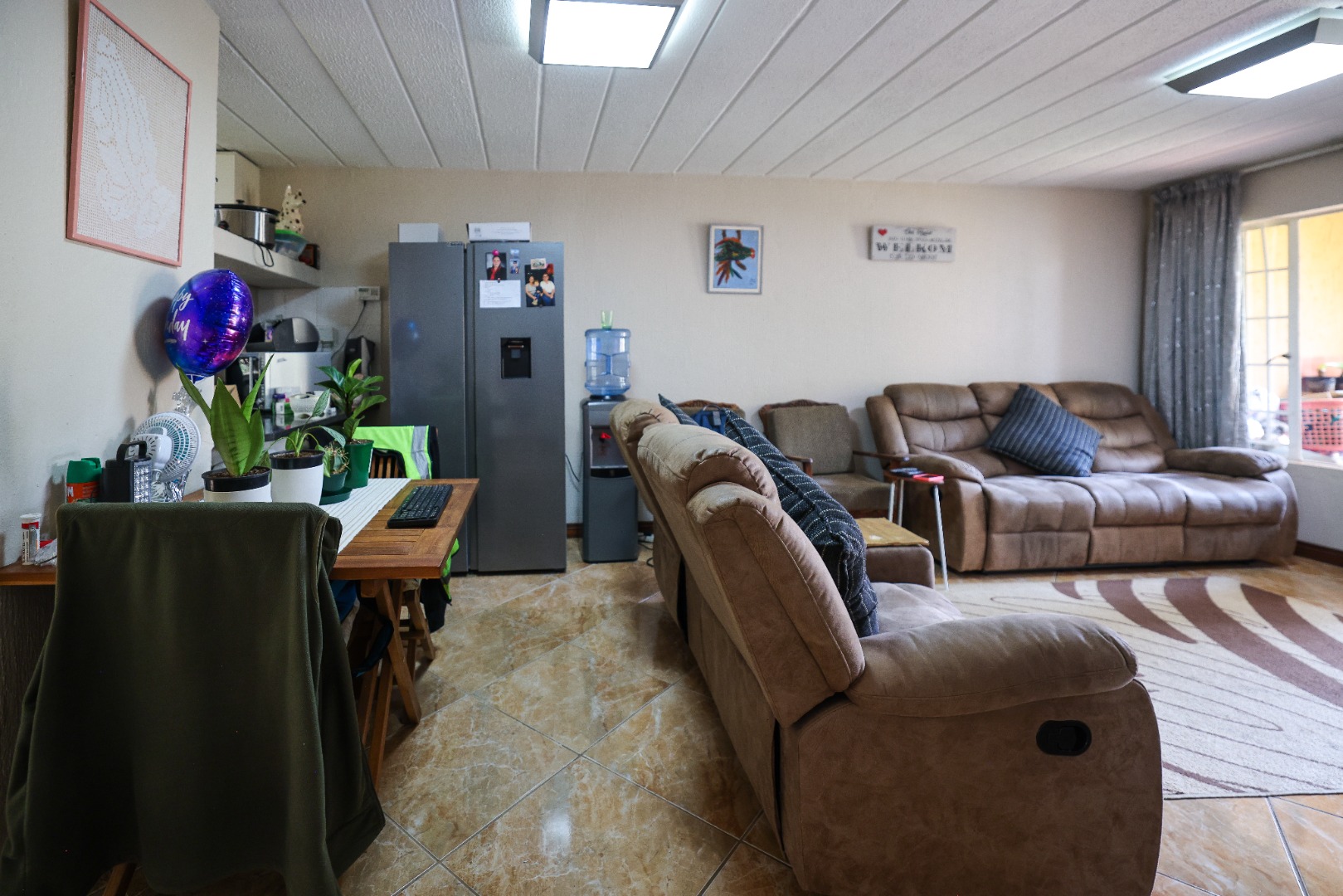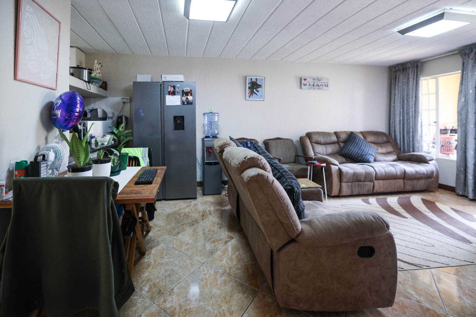 - Lounge, TV/dining area with open plan leading to patio
