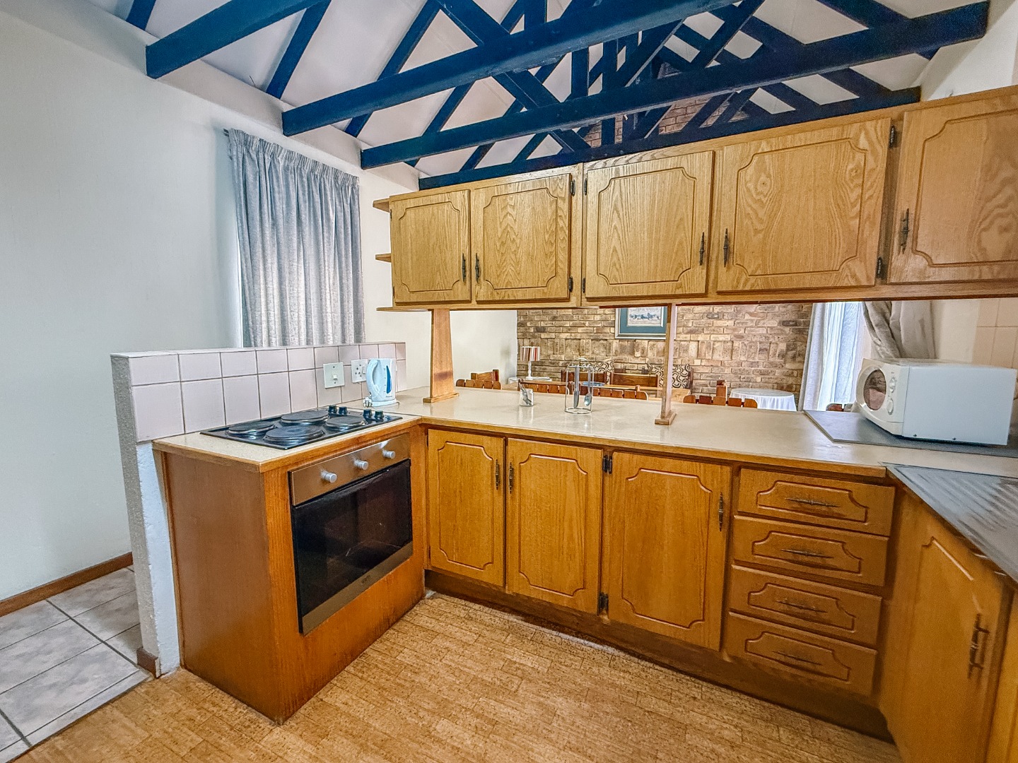 The kitchen is well laid out and functional, offering ample preparation and storage space for everyday living. Additional interior storage solutions are available, ensuring practical organisation throughout the property.