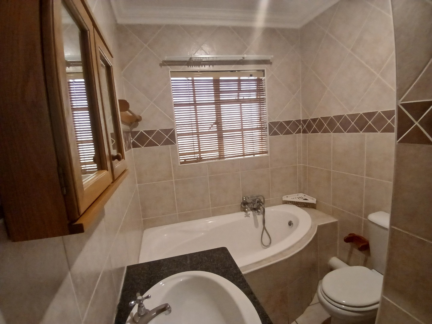 This stunning three-bedroom house is located in a secure, gated estate, offering both luxury and peace of mind. The property boasts modern architecture with spacious interiors and elegant finishes throughout. Each of the three bedrooms features an en-suite bathroom, ensuring privacy and comfort for every family member or guest. The open-plan living and dining areas flow seamlessly into a well-designed kitchen equipped with a scullery for added convenience and neatness. Large windows allow natural light to flood the rooms, creating a bright and welcoming atmosphere.