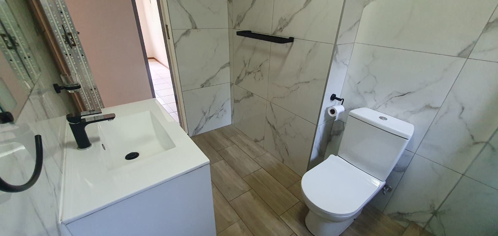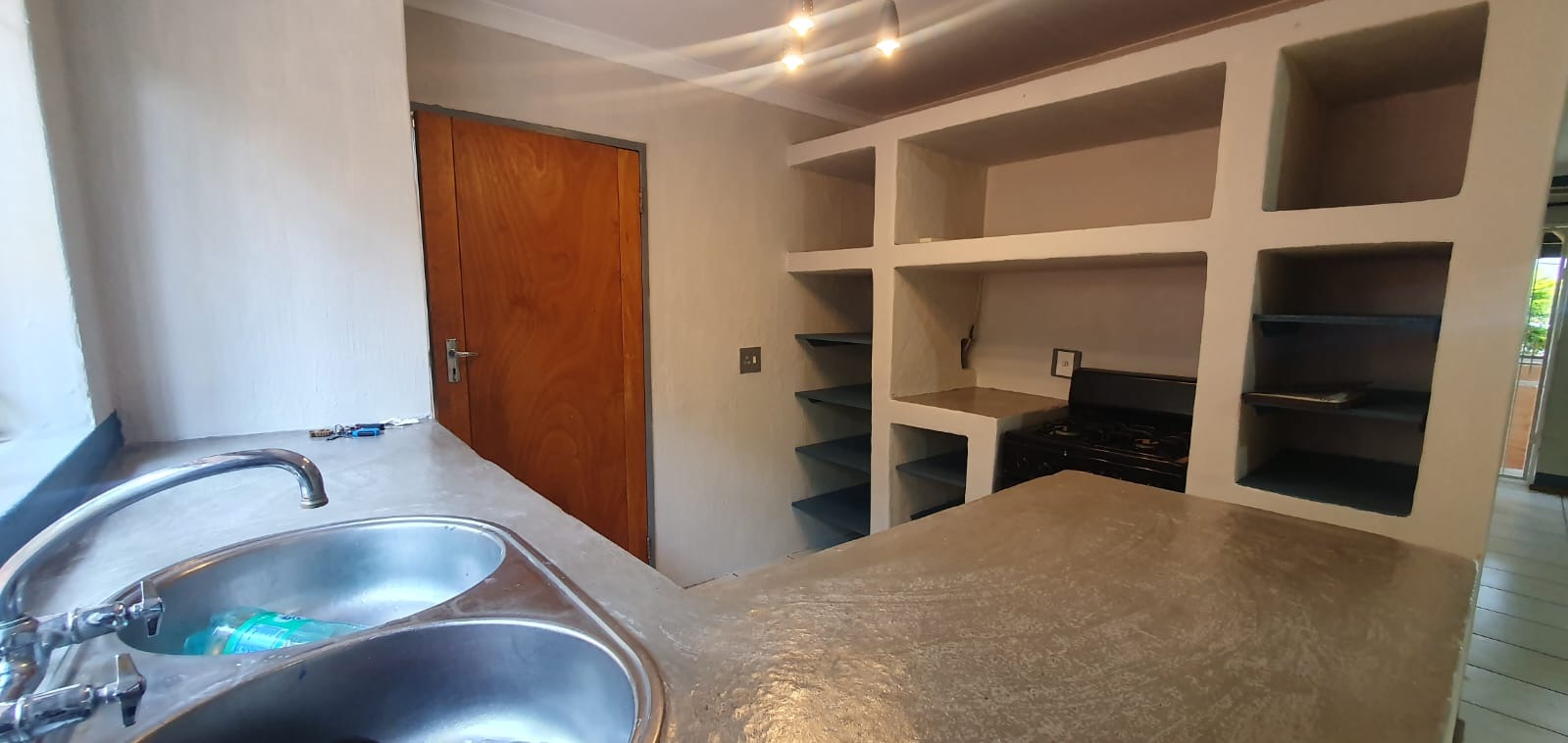 Discover this inviting 86 sqm rental property located within a secure complex in Moreleta Park, Pretoria. This unfurnished home features three comfortable bedrooms and a well-appointed bathroom, ideal for a family or professionals. The open-plan layout seamlessly connects the living, dining, and kitchen areas, creating a spacious and functional environment. The kitchen is equipped with a double sink, a gas stove, and practical built-in open shelving, complemented by durable concrete-look countertops. Tiled flooring extends throughout the home, ensuring easy maintenance.