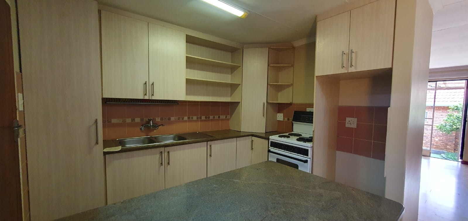 Discover comfortable living in this inviting 3-bedroom, 1-bathroom rental property within a secure estate in Moreleta Park, Pretoria. This 110 sqm home features an open-plan layout with a lounge, dining room, and a functional kitchen, all boasting easy-to-maintain tiled flooring and neutral wall tones. Built-in cupboards provide practical storage, while sliding doors open to a private patio. This residence is perfect for families or professionals seeking a convenient lifestyle. The estate offers well-maintained communal green spaces and includes access to a tennis court, fostering an active community. A single garage and additional parking ensure ample vehicle accommodation. Pets are permitted, enhancing its appeal. Security is paramount within this complex, featuring 24-hour security, CCTV surveillance, a dedicated security post, and controlled access gates. Electric fencing and security gates further enhance peace of mind. The home is also fibre-ready, ensuring high-speed internet connectivity. Moreleta Park is a well-regarded residential suburb in Pretoria, known for its established community and convenient access to local amenities and major routes. Key Features: * 3 Bedrooms, 1 Bathroom * 110 sqm Floor Size * Open-plan Living Area * Private Patio * Single Garage & Additional Parking * Pet-Friendly * 24-Hour Security & CCTV * Fibre-Ready * Communal Tennis Court