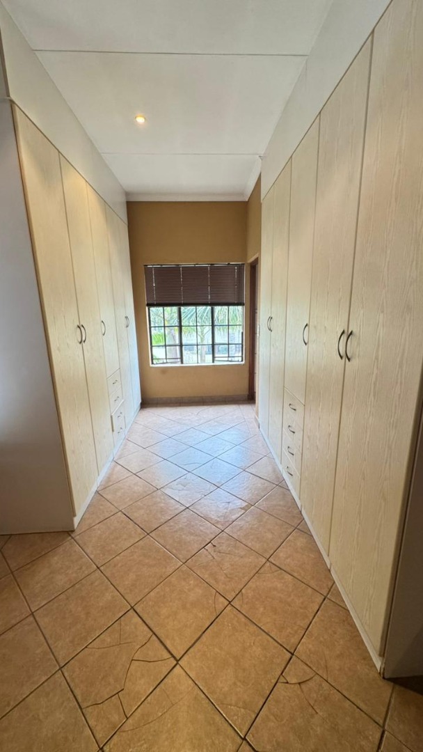 Looking for a comfy and spacious home to rent in Moreleta Park? This lovely 4-bedroom, 4-bathroom house is just waiting for you! As you step inside, you'll find a welcoming open-plan living area that flows beautifully, perfect for family time or entertaining friends. The tiled floors throughout the main living spaces make for easy cleaning, and there's plenty of natural light streaming in through the large windows and sliding doors. The kitchen is super functional with lots of cabinet space, a handy pantry, and even a separate laundry area to keep things tidy. You'll love the modern stainless steel appliances, including a gas range, making meal prep a breeze. With four bedrooms and four bathrooms, including two en-suites and a guest toilet, everyone gets their own space and privacy. Plus, there's a dedicated family TV room and an office, so you have all the room you need for work and play. Outside, you can enjoy the fresh air on the balcony or patio, and there's a nice garden for a bit of greenery. Parking is sorted with three garages and a paved driveway. For your peace of mind, the property is totally walled, has an access gate, electric fencing, and burglar bars. You'll also appreciate the modern touches like solar panels, a battery inverter, and water tanks, helping with those utility bills. Fibre internet is available too, keeping you connected. And yes, your furry friends are welcome here! Moreleta Park is a fantastic metropolitan area in Pretoria, offering a convenient lifestyle with easy access to amenities and main routes. This home is perfect for a family or professionals looking for space, comfort, and security in a great neighbourhood. Key Features: * 4 Bedrooms, 4 Bathrooms (2 En-suite) * Open-Plan Living & Dining Areas * Functional Kitchen with Pantry & Laundry * 3 Garages & Paved Driveway * Balcony, Patio & Garden * Solar Panels, Battery Inverter & Water Tanks * Fibre Ready & Air Conditioning * Pet-Friendly & Excellent Security (Walled, Electric Fence, Burglar Bars)