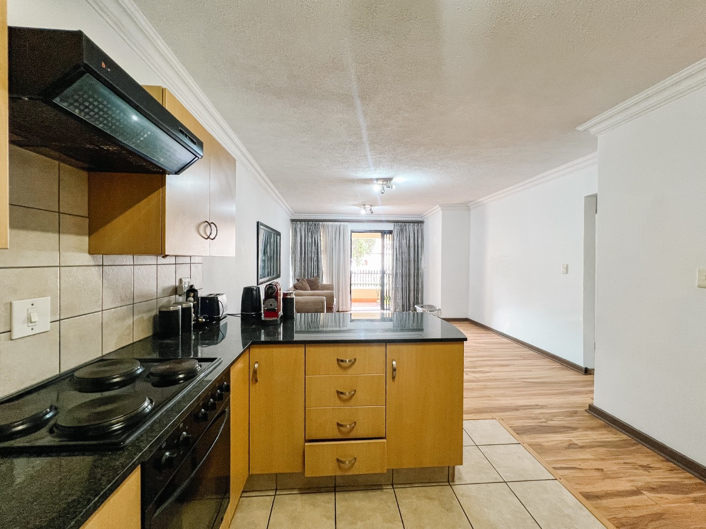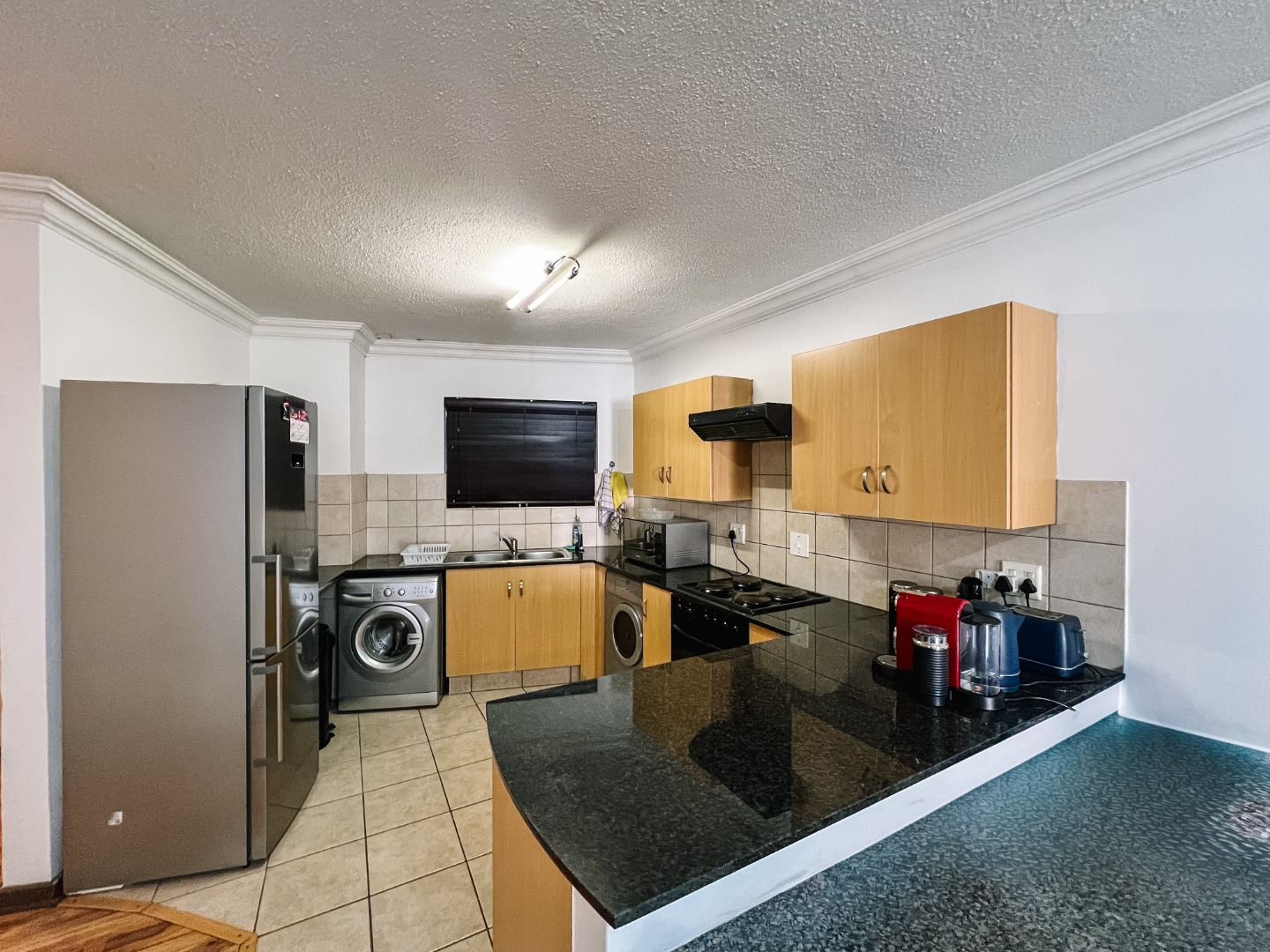 An open-plan kitchen with sleek granite countertops, generous cupboard space, and room for your essential appliances. Ideal for quick meals or weekend cooking sessions.