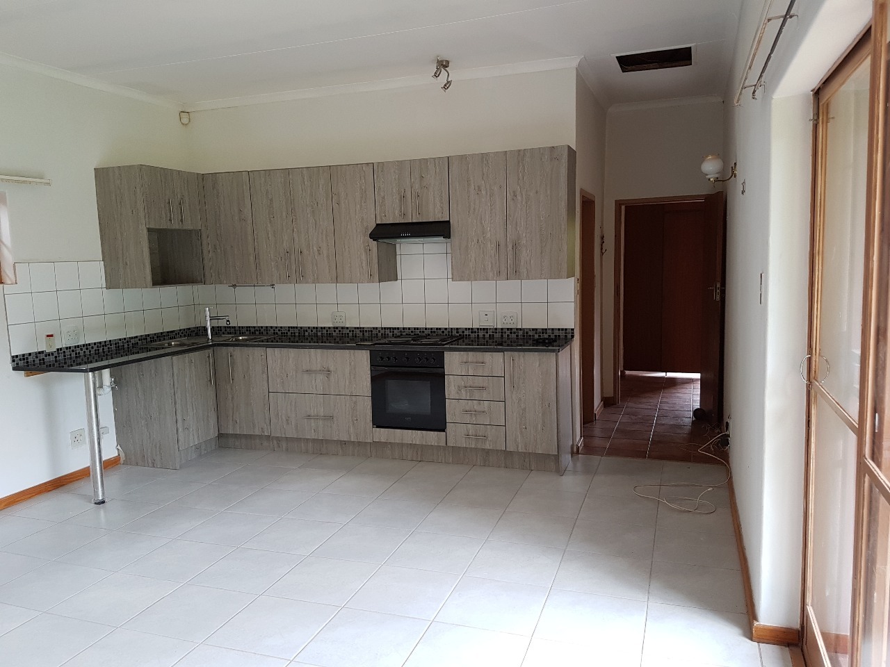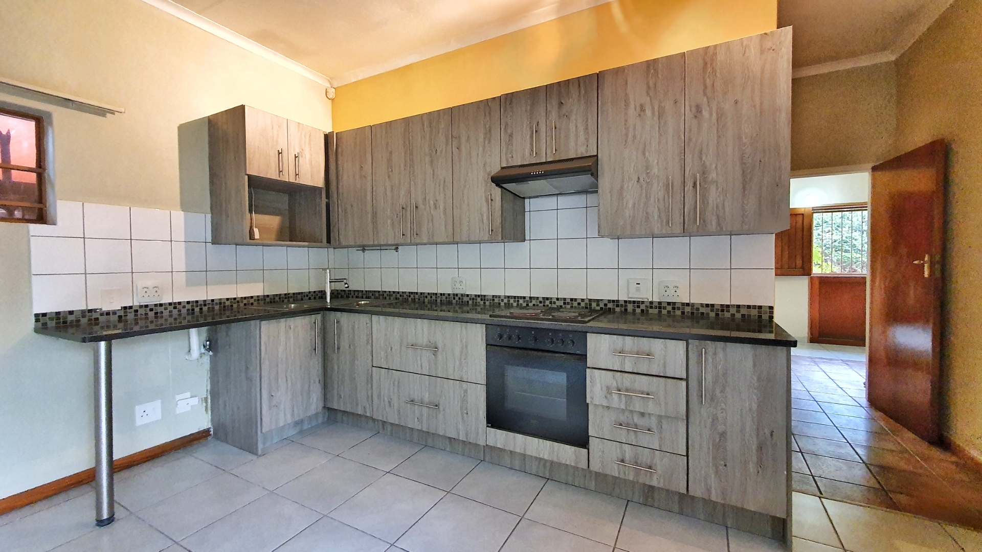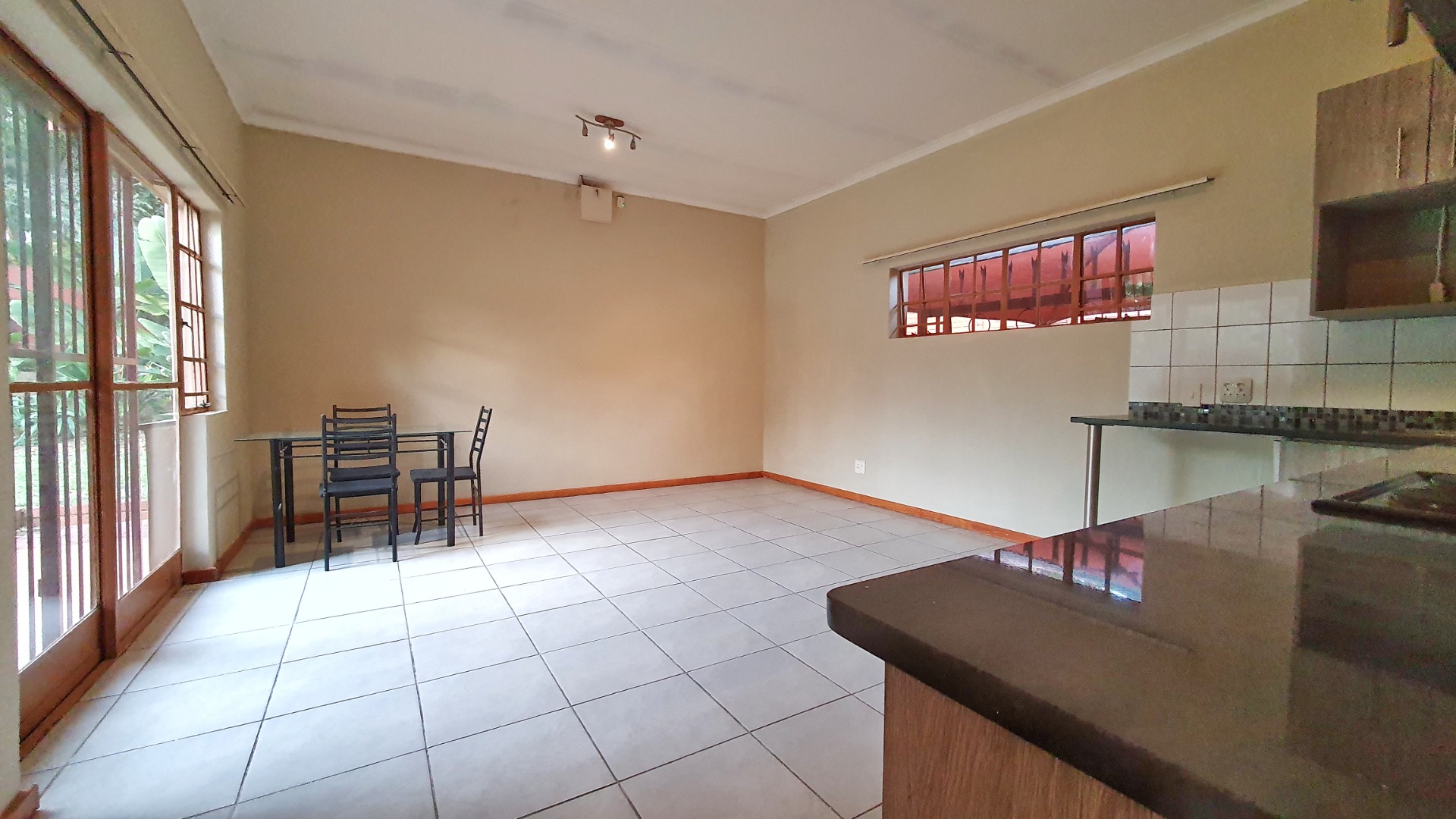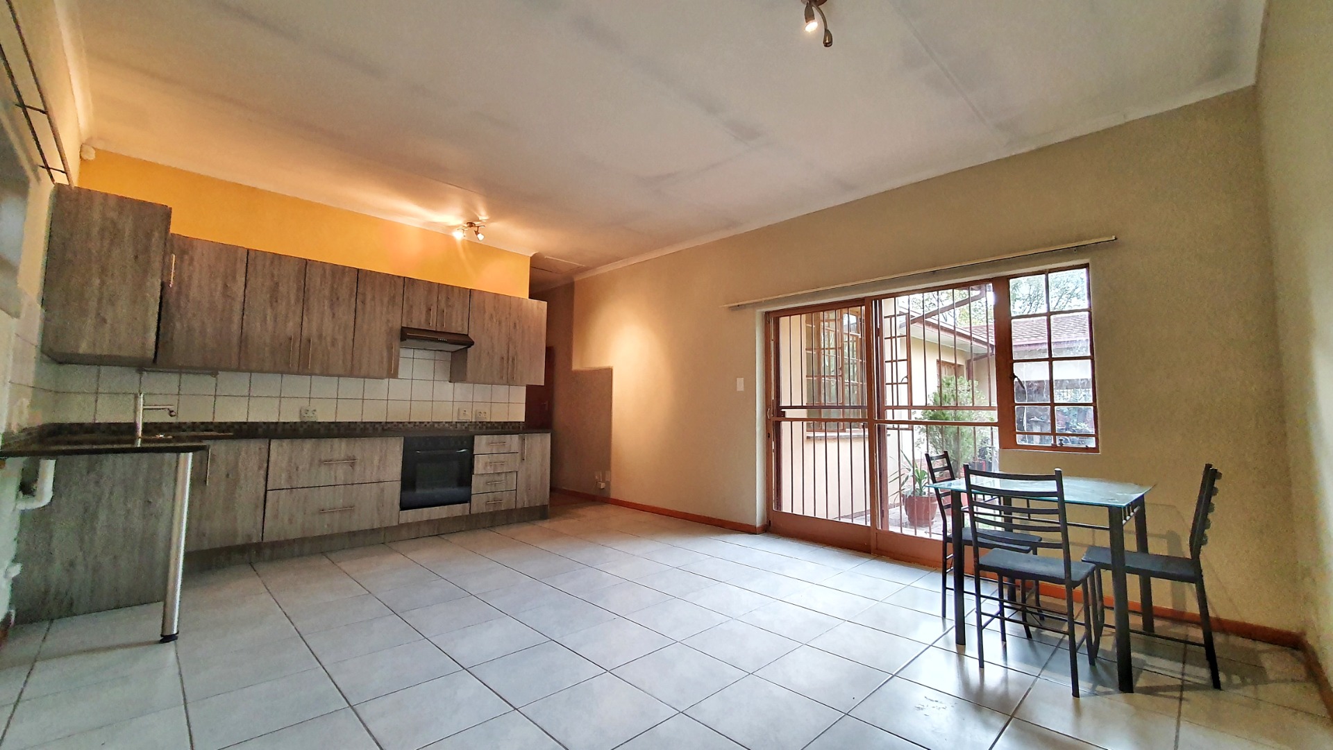 Hey there! Looking for a comfy spot to call home in Pretoria? This lovely 2-bedroom, 1-bathroom rental is just the ticket. Inside, you'll find a welcoming open-plan layout that connects the lounge, dining area, and a super functional kitchen. The kitchen boasts modern wood-look cabinets, sleek dark countertops, and comes with a built-in oven and hob. Plus, there's dedicated space for your washing machine and even a couple of fridges, making daily chores a breeze. Tiled flooring throughout means easy cleaning and a fresh feel.