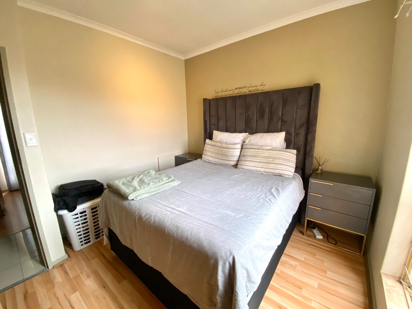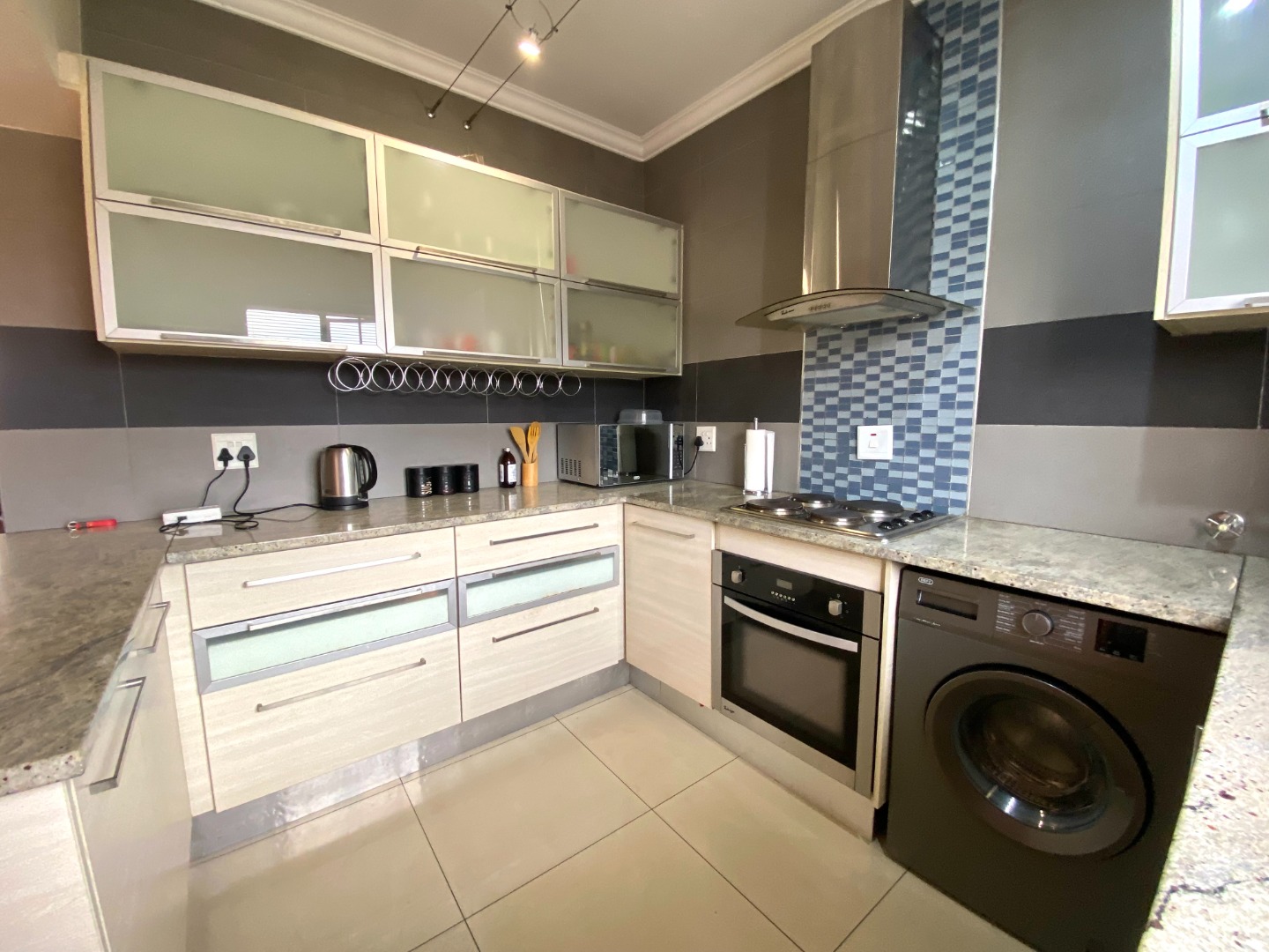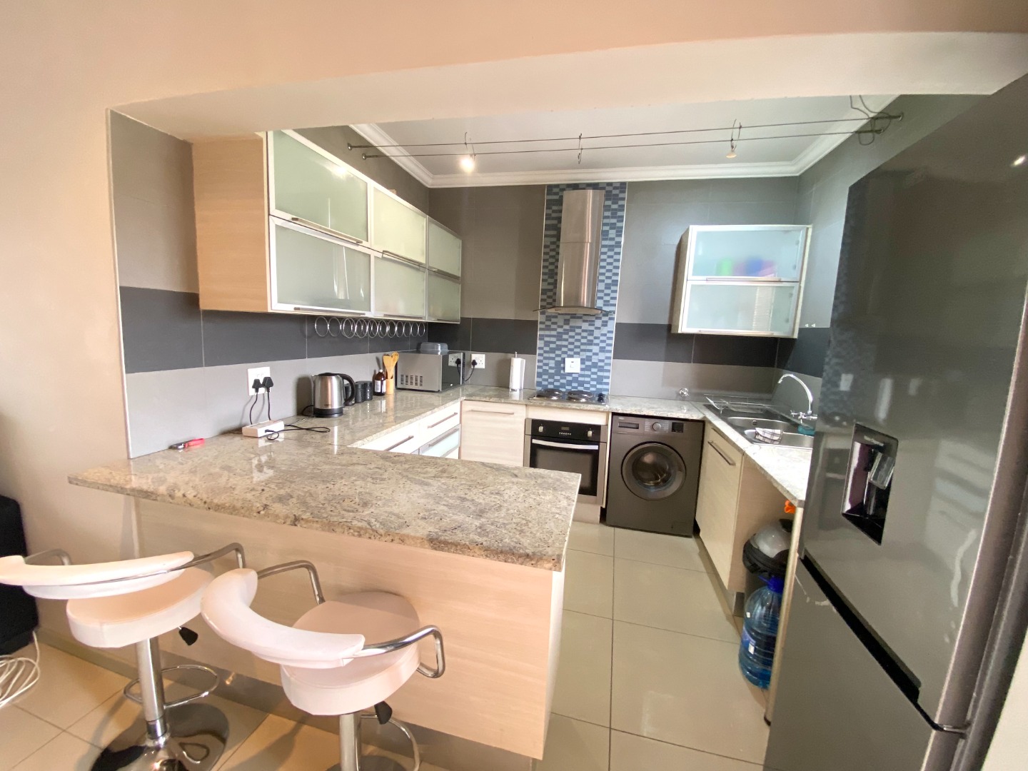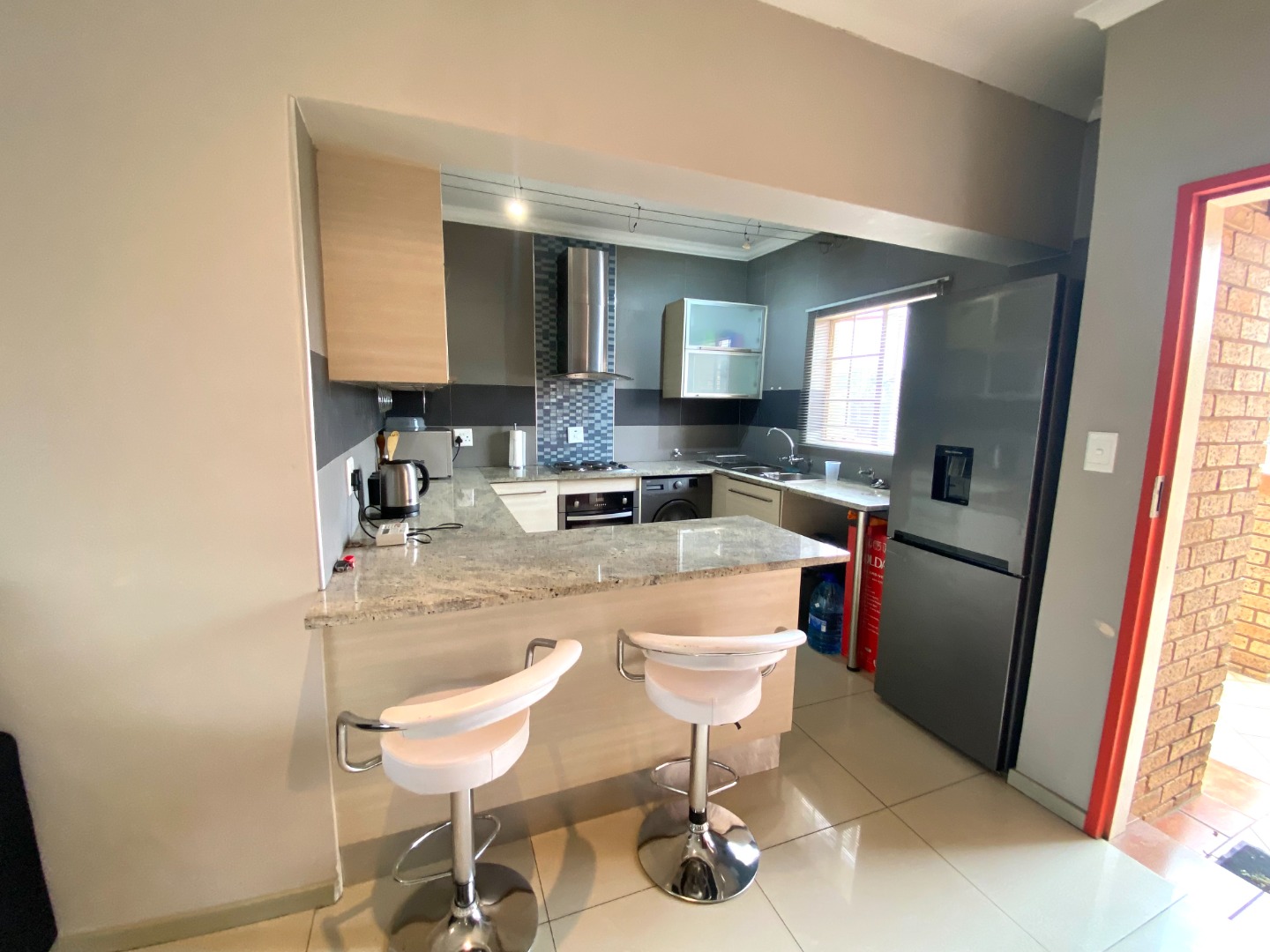 The spacious lounge is the heart of this home, featuring soft dimmable lighting to set the perfect mood and panel heaters to keep things cozy. It opens out onto a lovely balcony where you can enjoy some quiet time or morning sunshine. The kitchen flows seamlessly into the lounge, creating a modern open-plan layout that feels bright and welcoming.