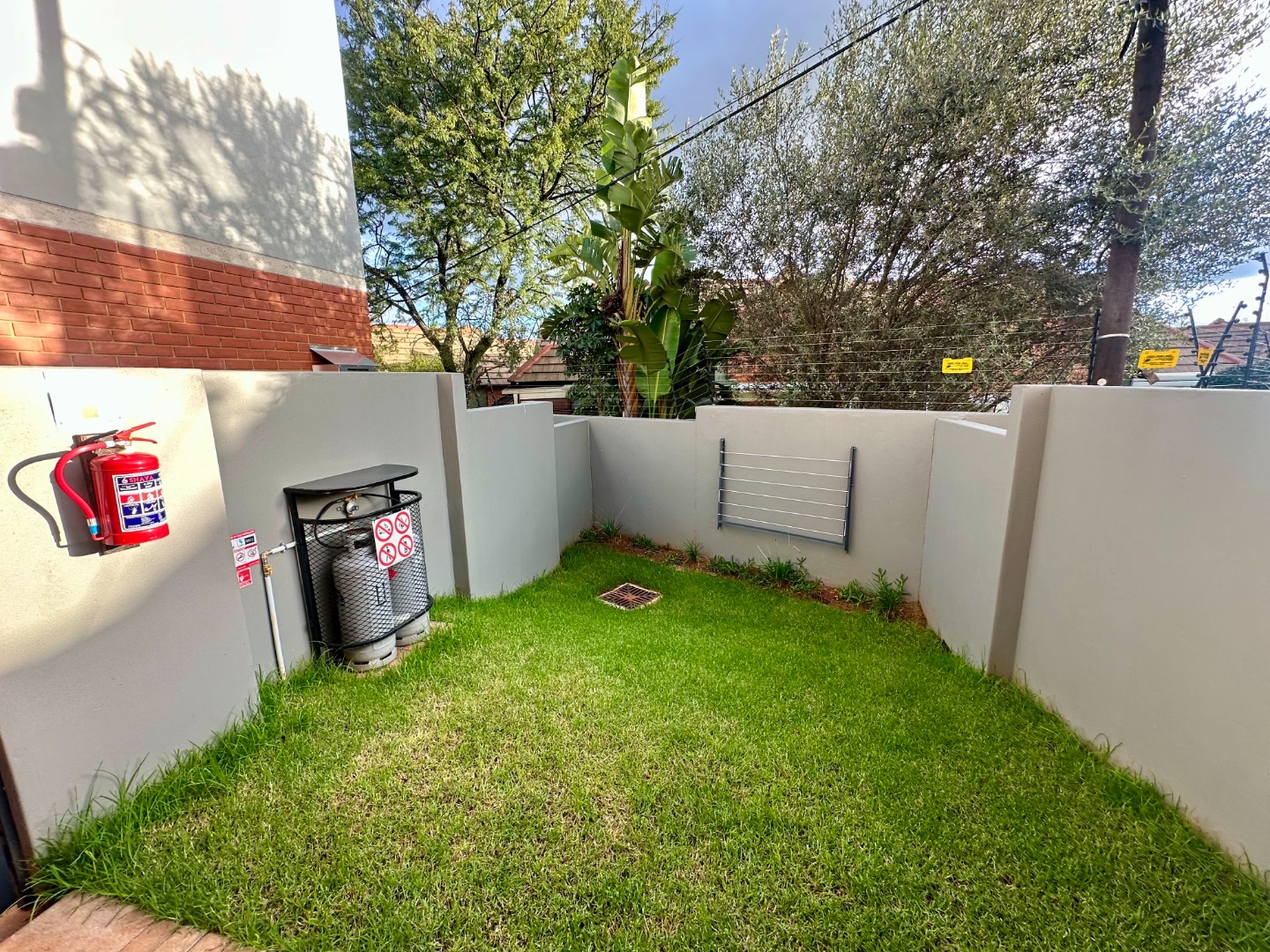 Private courtyard with flip-up washing line