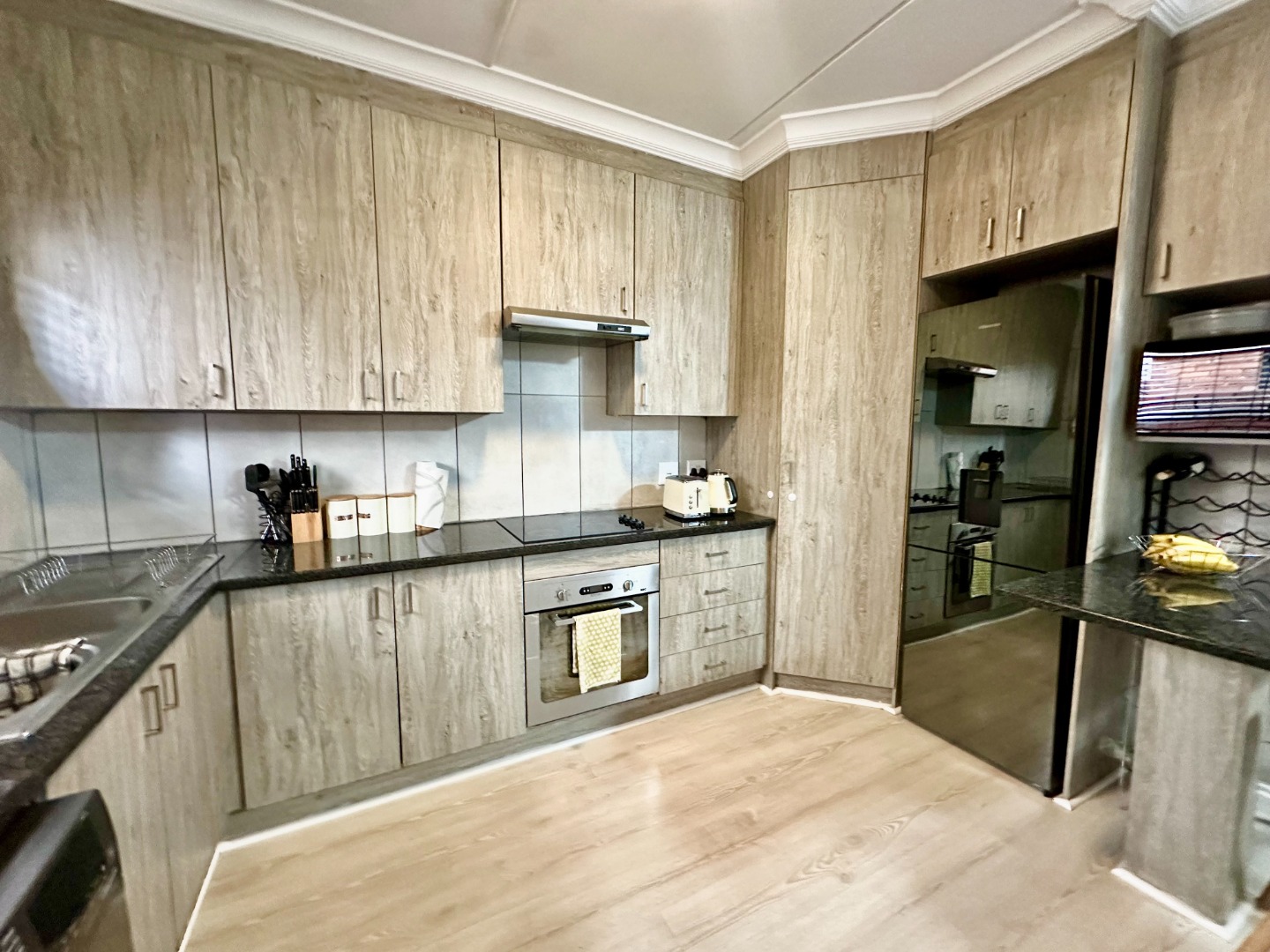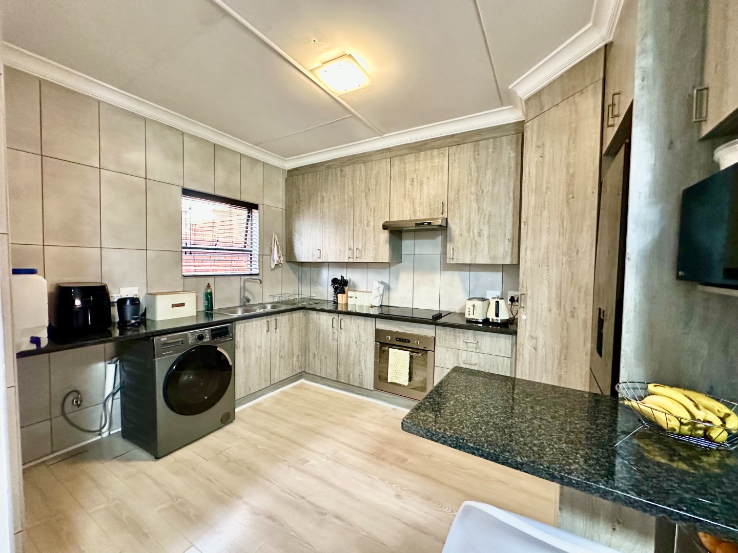 Looking for a comfy and modern place to call home? This lovely 3-bedroom, 2.5-bathroom property in a secure estate in Olympus AH, Pretoria, is just the ticket! You'll find a spacious 172 sqm floor plan that's perfect for relaxed living. The open-plan lounge and dining area flow beautifully, featuring stylish light wood-look flooring and plenty of natural light, making it a super inviting space for everyday life or entertaining friends. The kitchen is a real highlight, boasting modern light wood-grain cabinetry, sleek dark granite countertops, and integrated appliances like an oven, hob, and extractor fan. There's also a handy breakfast bar and even space for your washing machine, making chores a breeze. With three bedrooms, including one en-suite, and an additional guest toilet, there's ample space for everyone to feel right at home. Step outside to your private, covered patio, complete with a built-in braai – ideal for those classic South African get-togethers. The property also features a garden and is pet-friendly, so your furry friends are welcome too! Plus, you get two garages for secure parking and extra storage. This home is all about easy living and convenience. Living in this security estate means peace of mind, with 24-hour security, a security post, and access control. You'll also be connected with fibre internet available, which is great for working from home or streaming your favourite shows. Olympus AH offers a fantastic suburban lifestyle within the metropolitan hub of Pretoria, giving you the best of both worlds. Key Features: * 3 Bedrooms, 2.5 Bathrooms (1 en-suite) * Open-plan living and dining areas * Modern kitchen with integrated appliances * Covered patio with built-in braai * Private garden, pet-friendly * Two secure garages * Fibre-ready connectivity * 24-hour security estate living