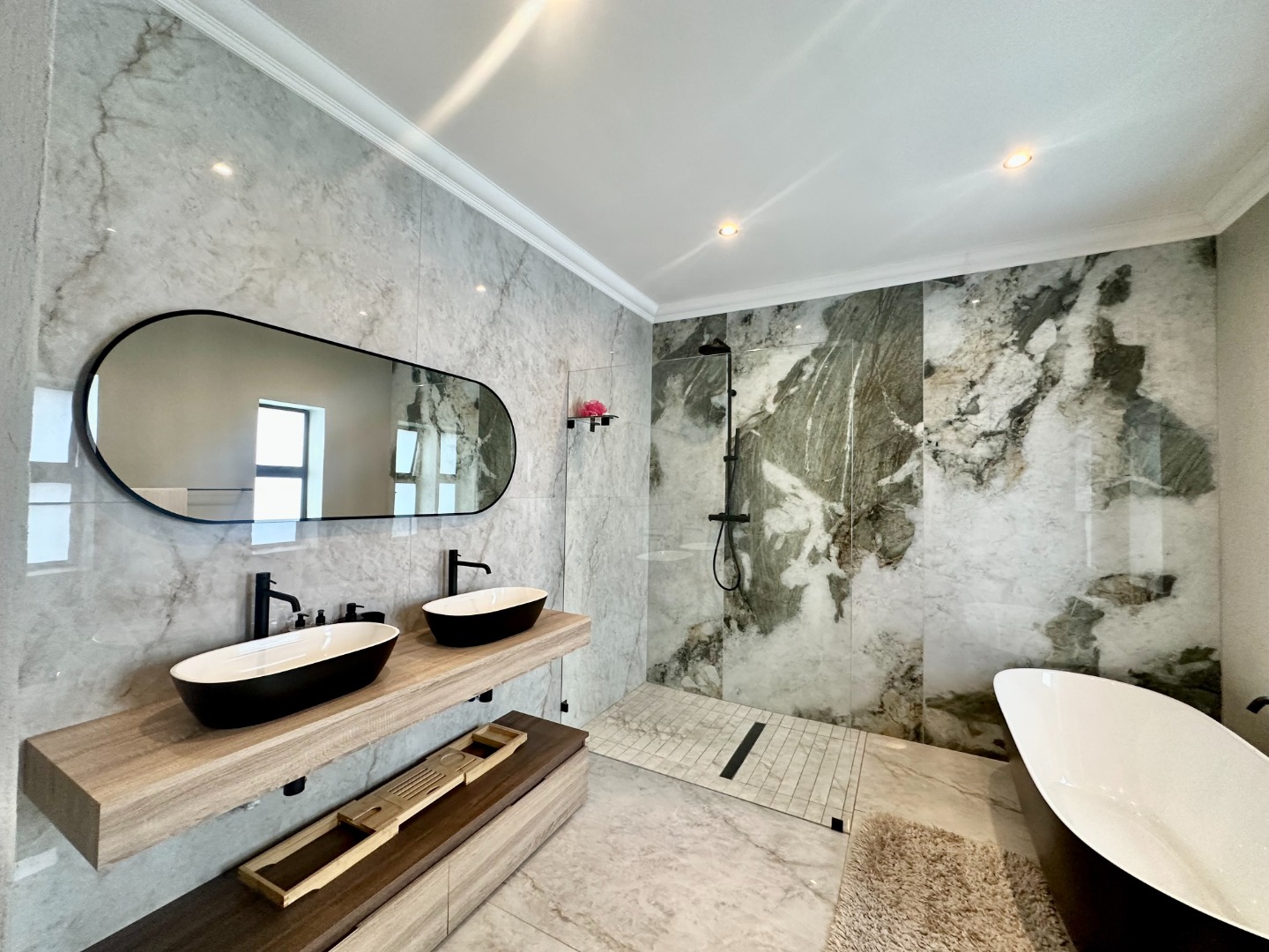 Step into this fantastic 4-bedroom, 3.5-bathroom home in Olympus AH, Pretoria, perfect for comfortable family living. You'll love the spacious open-plan layout, featuring two lounges and a dining room, all with modern tiled flooring that keeps things cool and easy to clean. The kitchen is ready for your culinary adventures. One of the highlights is definitely the awesome covered patio, complete with a built-in bar – ideal for entertaining friends or just chilling out. Those special bi-fold doors really open up the space, connecting indoor and outdoor living seamlessly. With a generous 357 sqm under roof and a 500 sqm erf, there's plenty of room for everyone. Plus, your furry friends are welcome here, as pets are allowed! Imagine sunny days by the pool or enjoying the neatly paved garden area. Parking is a breeze with a double garage and three additional parking spots. This home is designed for a relaxed lifestyle, offering both comfort and convenience for families or professionals. Living in this security estate means peace of mind, with 24-hour security, an access gate, and a security post keeping things safe. You'll also appreciate the modern touches like air conditioning for those warm days, and the property is equipped with fibre internet, solar panels, and a battery inverter, making it super efficient and reliable. No more worrying about power outages! Olympus AH offers a lovely suburban lifestyle within the metropolitan hub of Pretoria. It's a great spot for those seeking a secure and well-connected community. Key Features: * 4 Bedrooms, 3.5 Bathrooms (2 en-suite) * Spacious Open-Plan Living * Covered Patio with Built-in Bar * Private Pool & Garden * Double Garage + 3 Parking Spaces * Pet-Friendly * Fibre, Solar Panels & Inverter * 24-Hour Security Estate