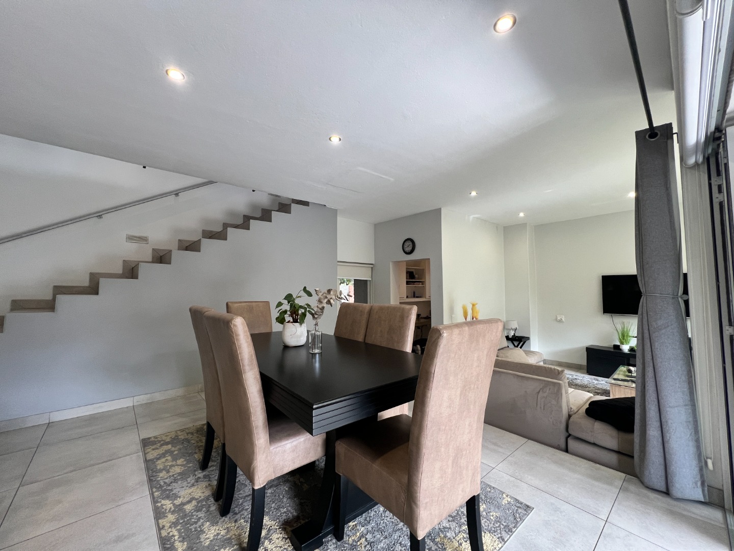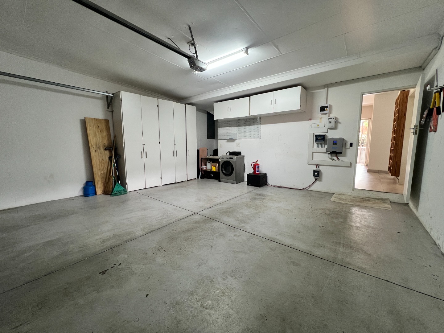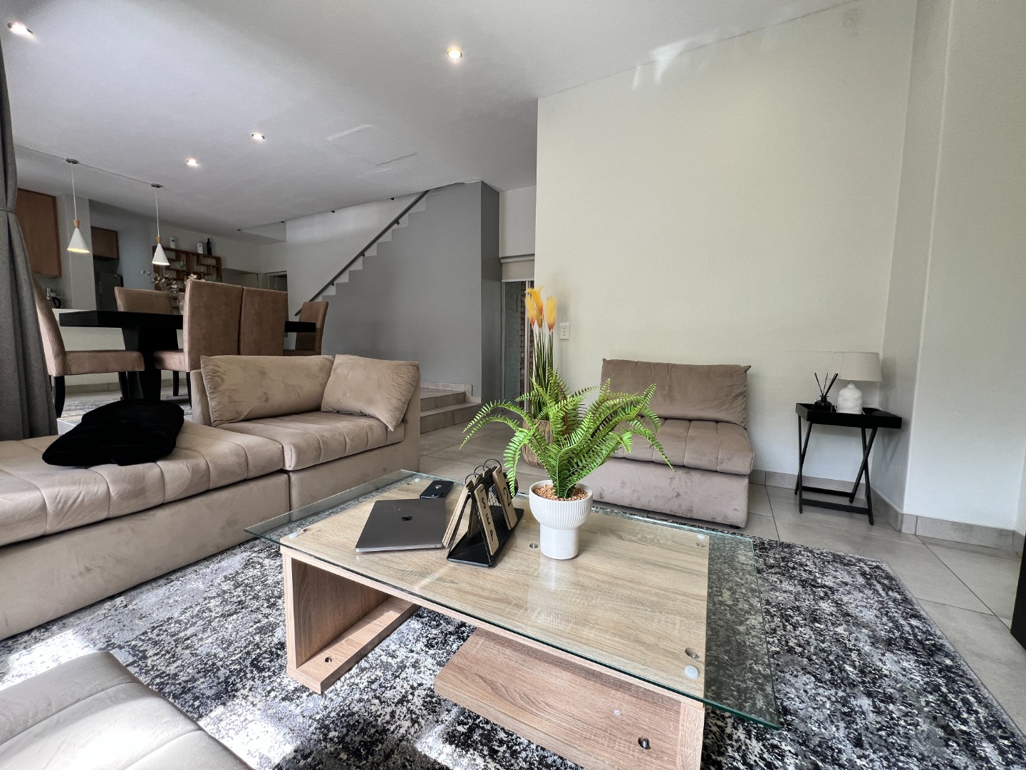 The home comes fully furnished with lounge furniture, a TV, and a dining table set, and includes a double automated garage with extra storage space, a prepaid electricity meter, and an inverter to keep essentials running during load-shedding.