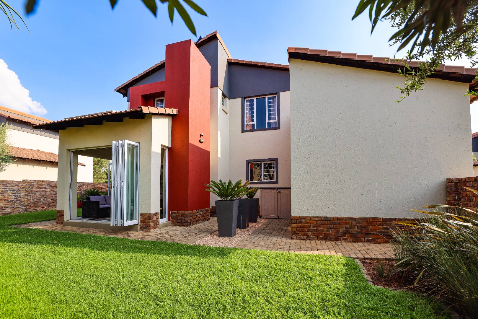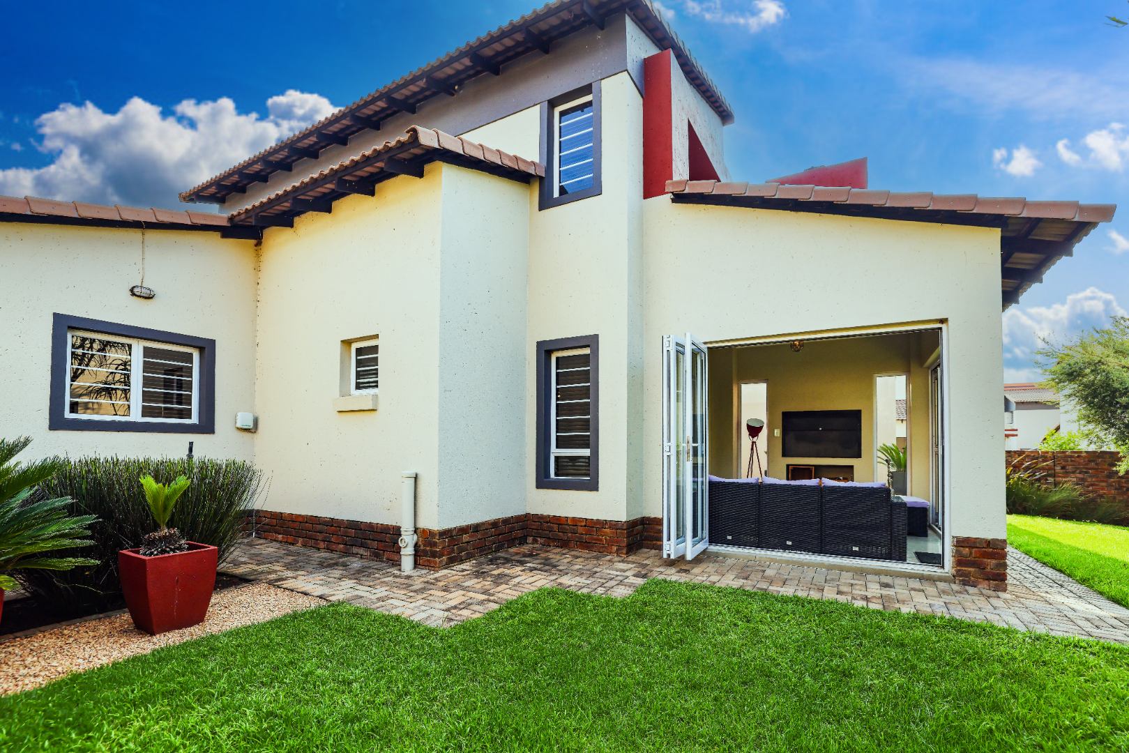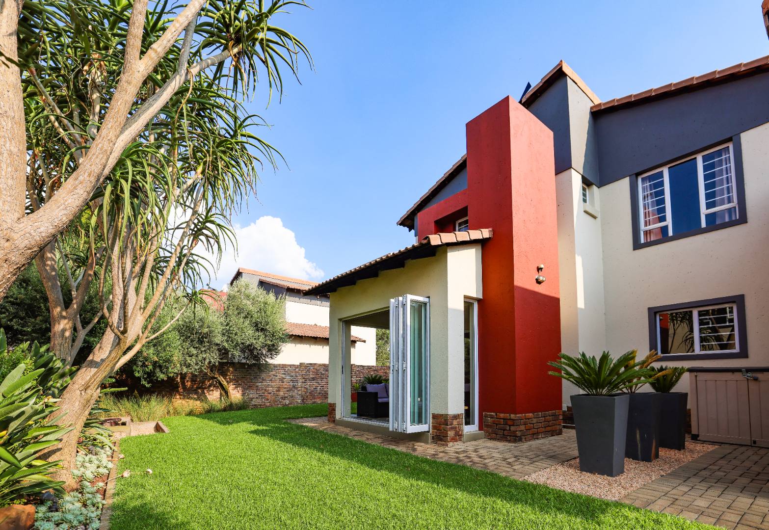 This gorgeous home offers an amazing, manicured garden and back-up solar power, perfect for those who value comfort and peace of mind. With a double garage, modern living areas, and an enclosed patio featuring stacking doors that open seamlessly to the garden, this property is designed for sophisticated living.