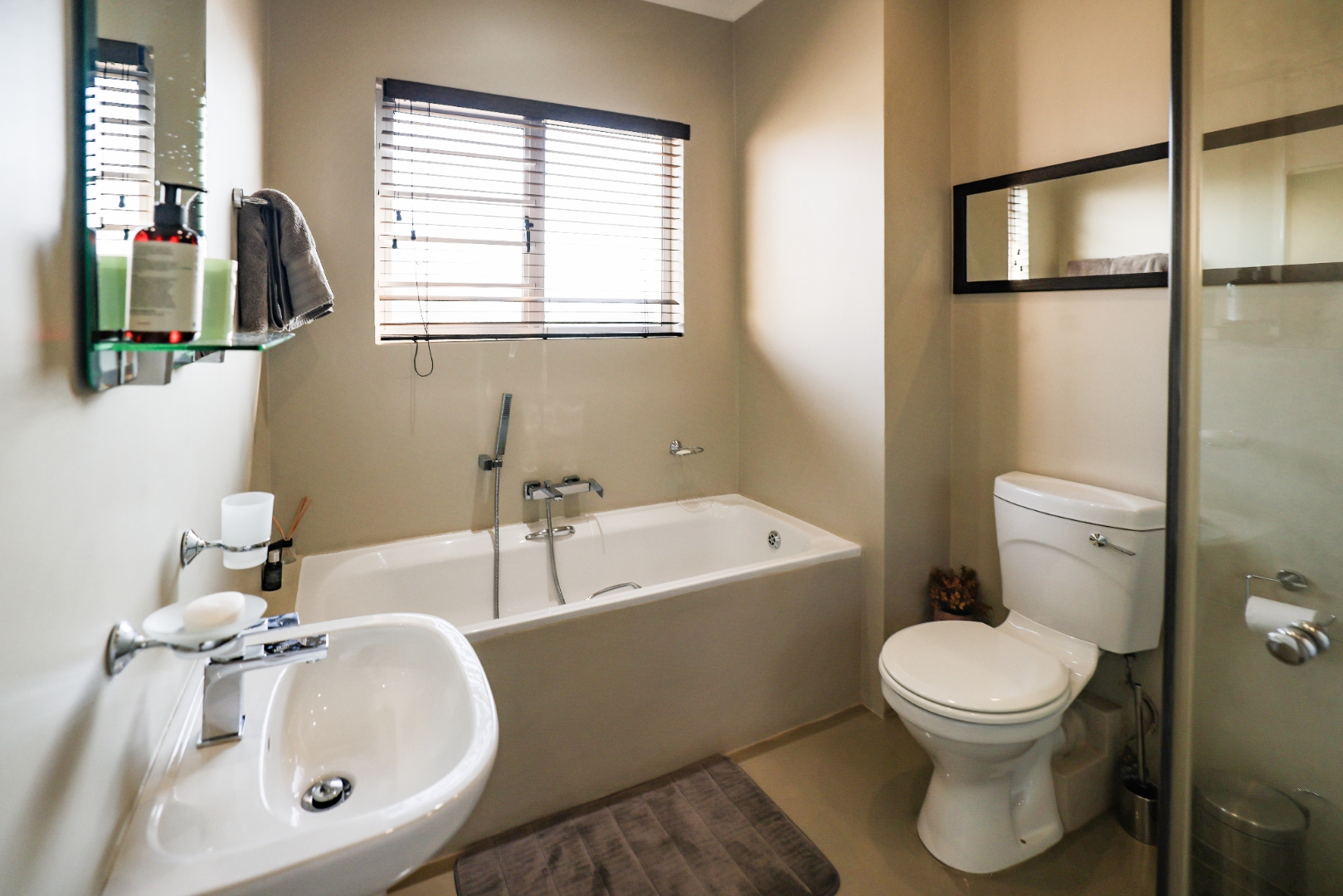 This beautiful home offers 3 spacious bedrooms, each fitted with built-in cupboards that feel brand new. The modern kitchen is designed for convenience and style, featuring a gas stove and granite countertops. Bathrooms are finished to the highest standard, with luxurious rain showers and Hansgrohe taps, creating a spa-like experience at home.