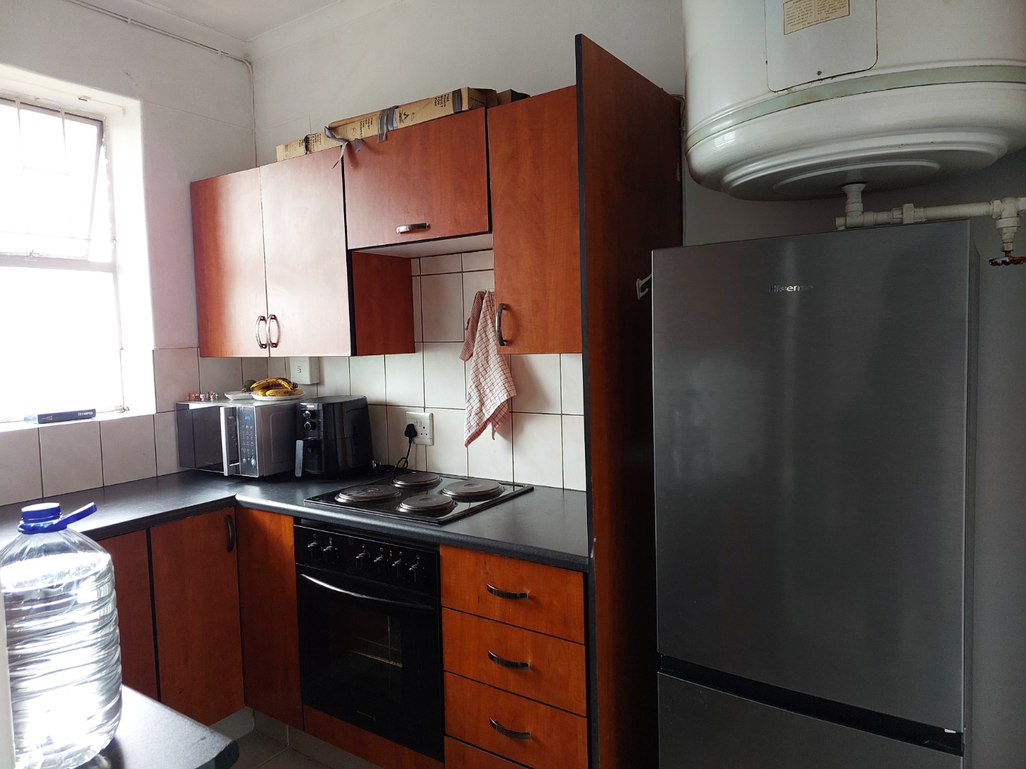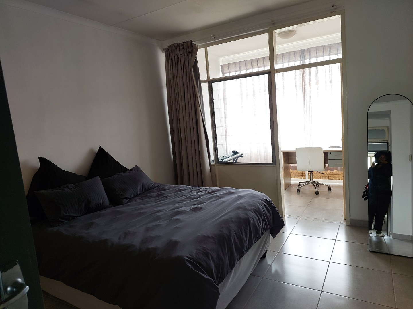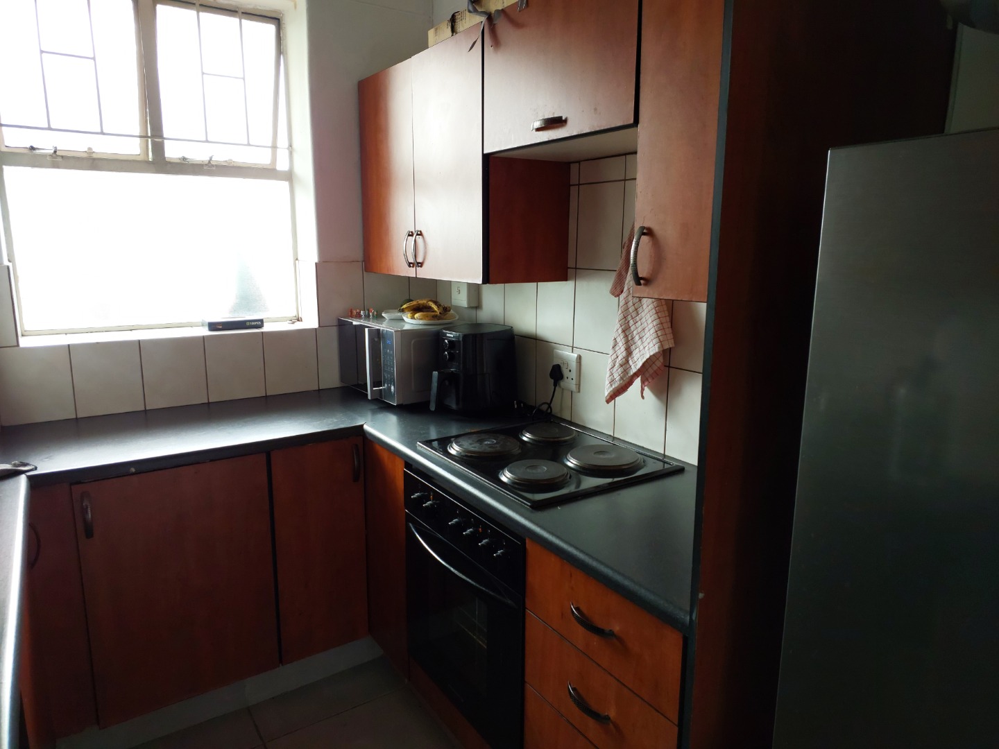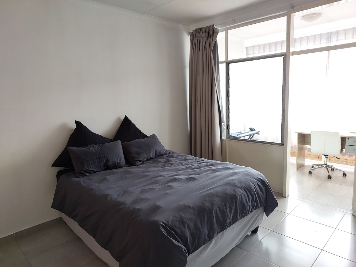 This apartment in Queenswood, Pretoria, offers a functional 1.5-bedroom layout, with one main bedroom and a versatile half-bedroom suitable for a home office. It includes one bathroom, an open-plan living area, a functional kitchen, and modern tiled flooring. The unit comes with a private garage and allows both pets and smoking. Building amenities provide convenience and security, featuring lifts, access gates, a communal braai area, and a family TV room.