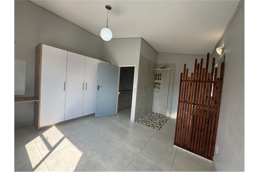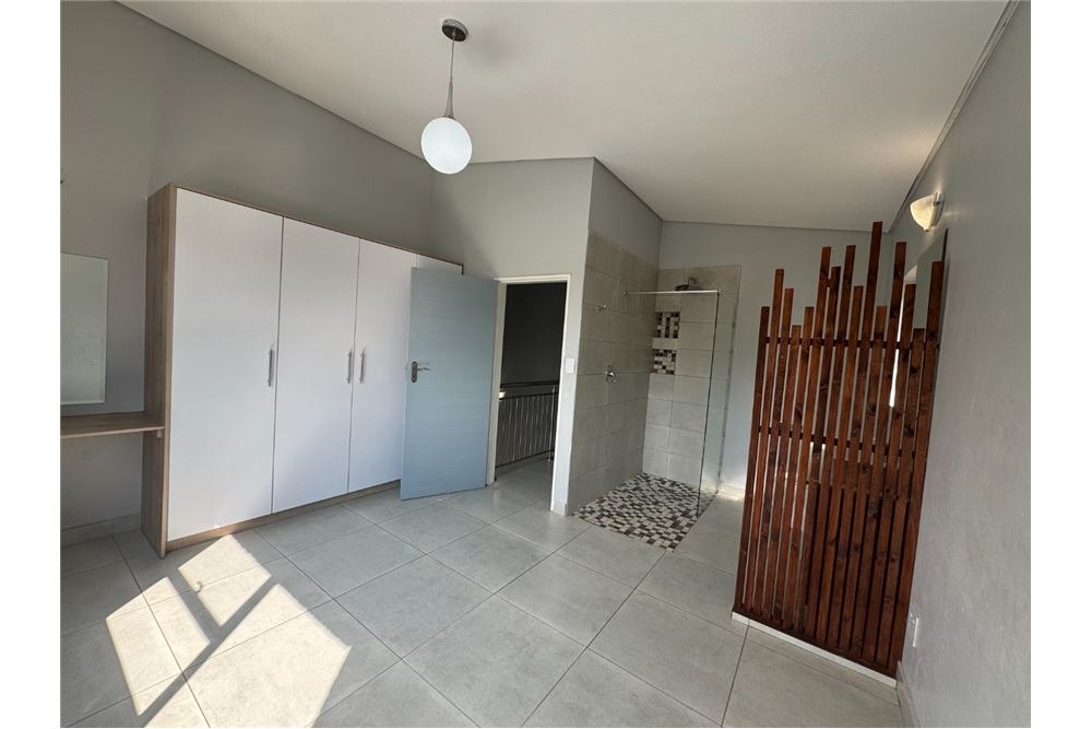 Upstairs, you’ll find a convenient linen cupboard and two spacious bedrooms. The main bedroom features a luxurious en-suite bathroom with a shower, basin, and toilet, while the second bedroom is serviced by its own separate bathroom with a shower, basin, and toilet – offering comfort and privacy for all.