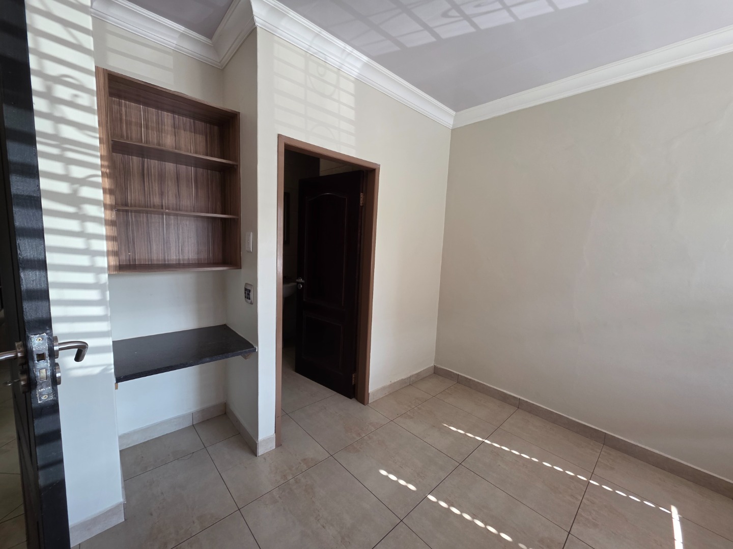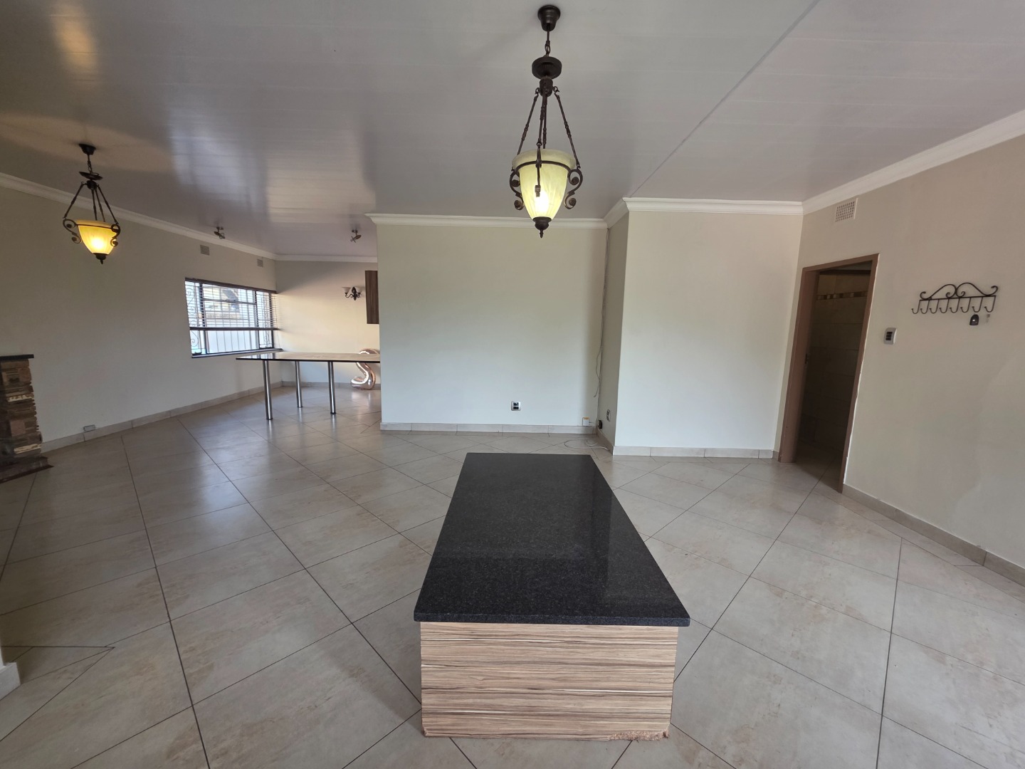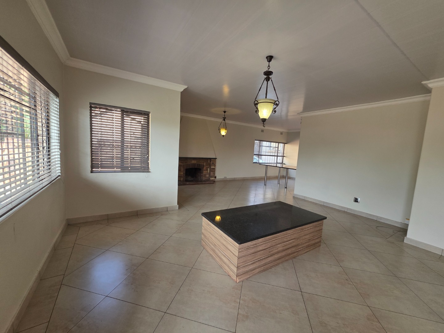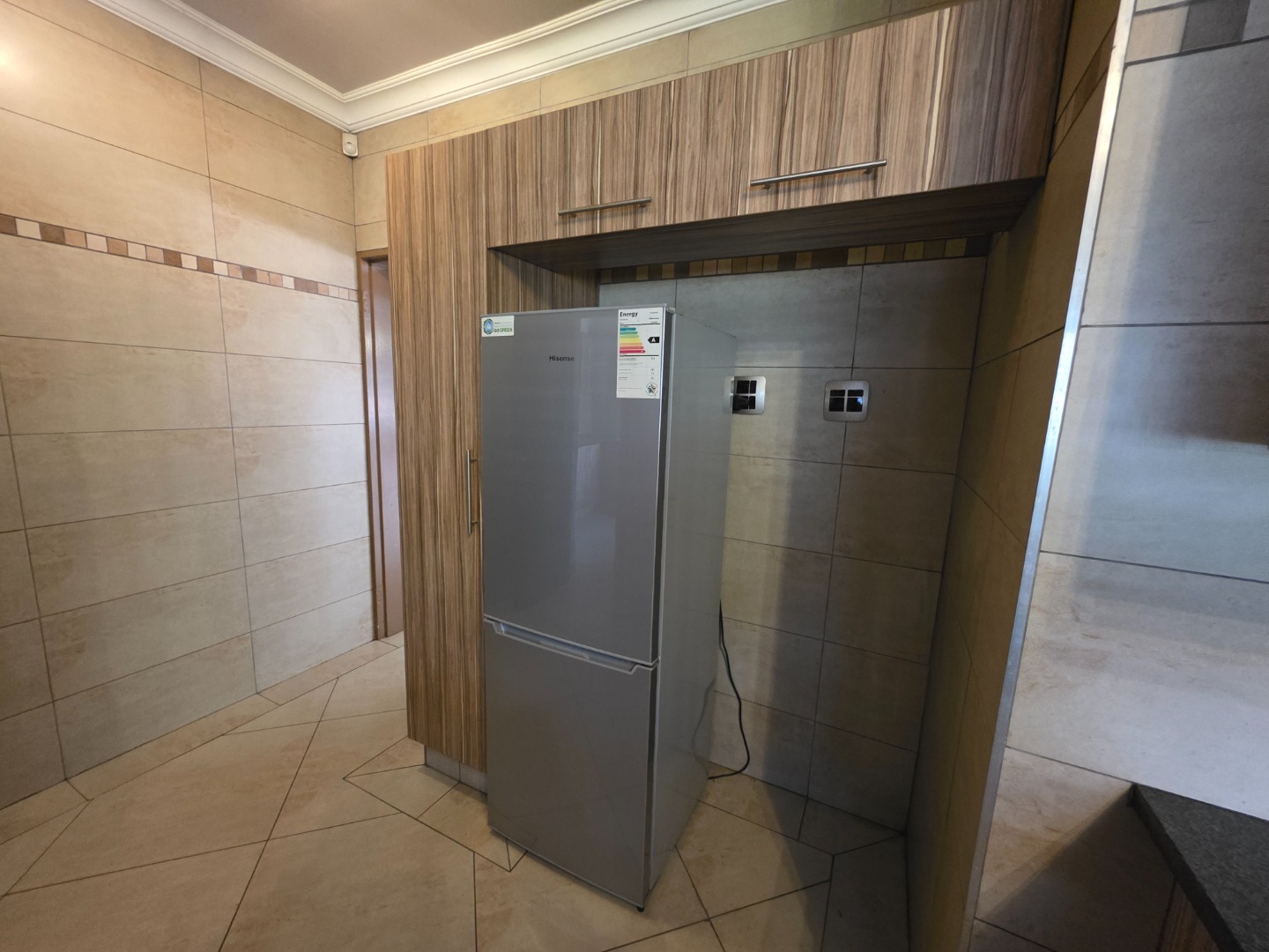 The home offers a large lounge area with a fireplace, creating a warm and comfortable living environment. The very spacious kitchen includes a single-door refrigerator, which is included in the rental. A separate back kitchen/washing area provides space for a washing machine and tumble dryers, adding practical functionality.