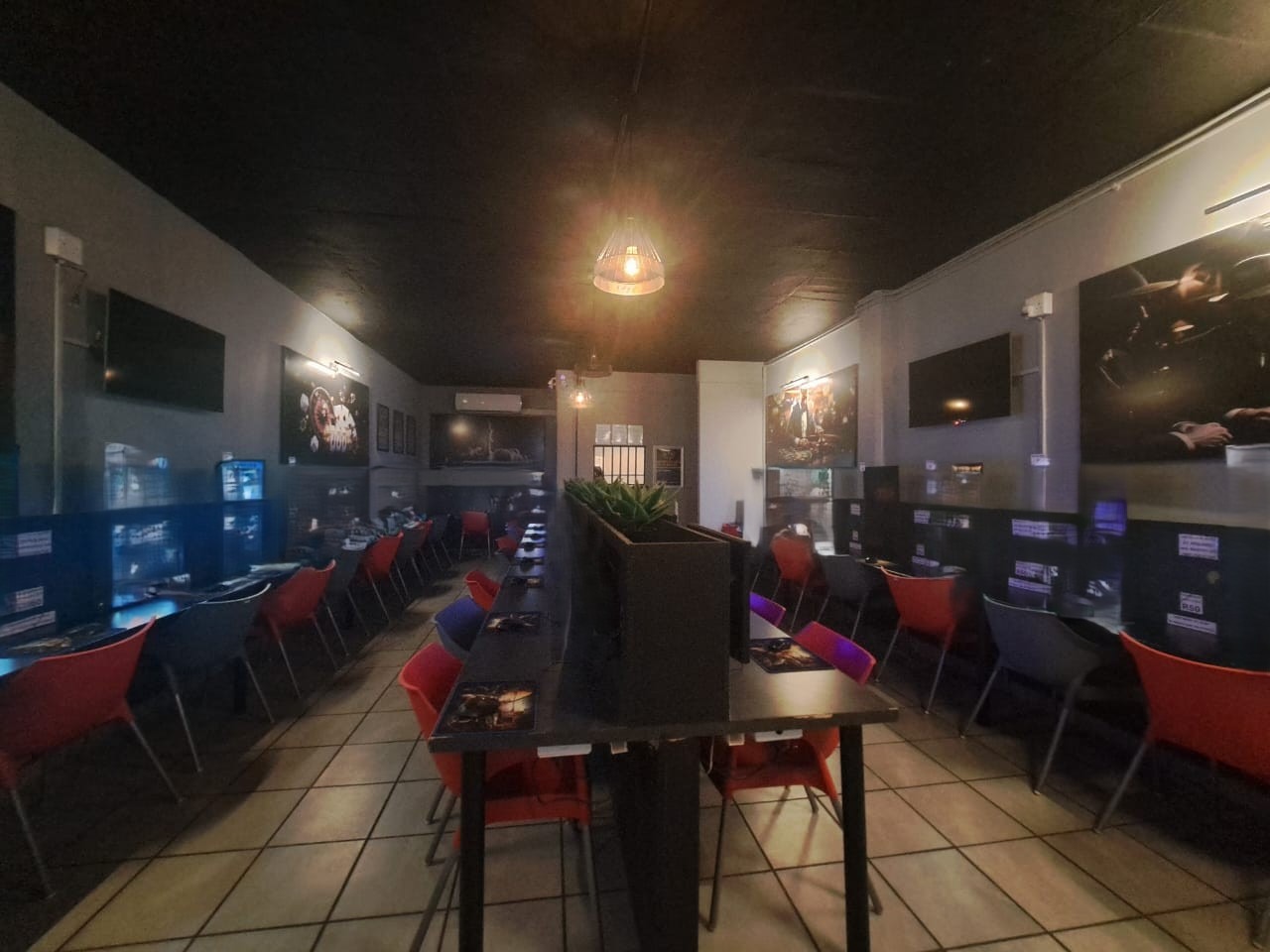 This 65sqm commercial unit, situated within a secure complex in Rietfontein, Pretoria, offers a highly adaptable space ideal for various business operations. Currently configured as a functional internet cafe or gaming lounge, the layout features multiple individual workstations with privacy screens, thematic wall art, and durable tiled flooring throughout. Air conditioning ensures a comfortable environment for clients and staff, while the overall design supports a focused work or entertainment setting. The property includes two well-appointed bathrooms and a practical utility area with a sink and dedicated workstation. A communal kitchen/break area provides essential amenities for staff convenience. The secure environment is enhanced by ornate wrought-iron gates at the entrance and a metal security gate within, ensuring peace of mind for tenants and visitors. With 10 dedicated parking bays, accessibility is excellent for both customers and employees. Located in Rietfontein, this property benefits from its position within a security complex, offering an added layer of safety and a professional setting for your business. This versatile commercial space is perfect for businesses seeking a ready-to-operate setup or a flexible layout to customise. Key Features: * 65sqm commercial unit * 2 bathrooms * 10 parking bays * Security complex location * Tiled flooring * Air conditioning * Utility/break area * Wi-Fi connectivity