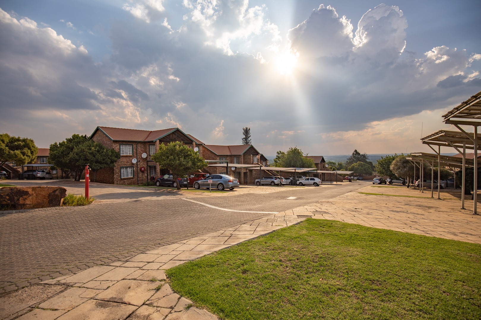 The secure townhouse complex has a communal swimming pool