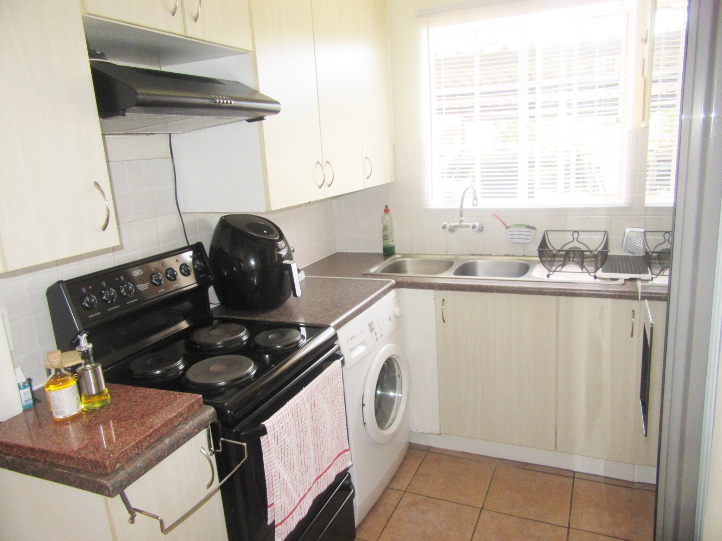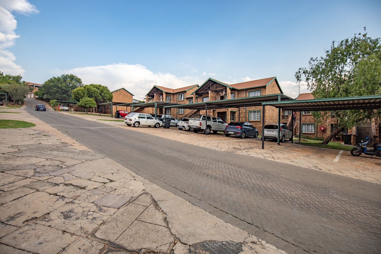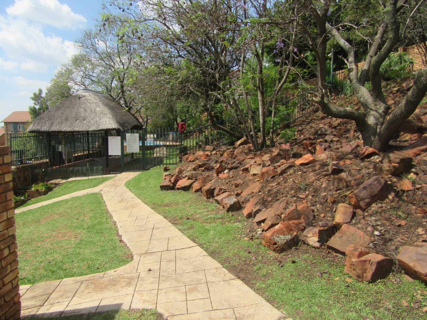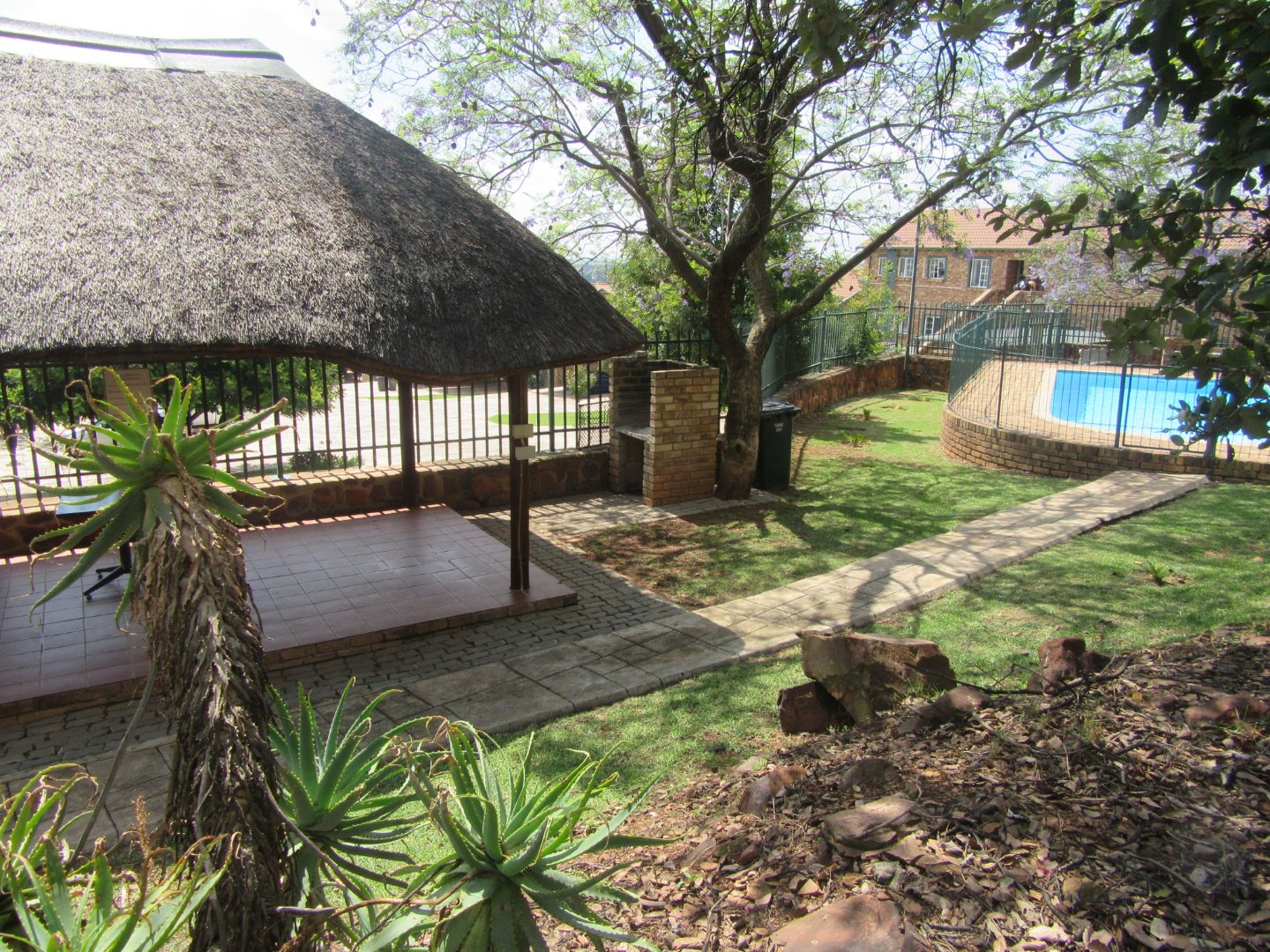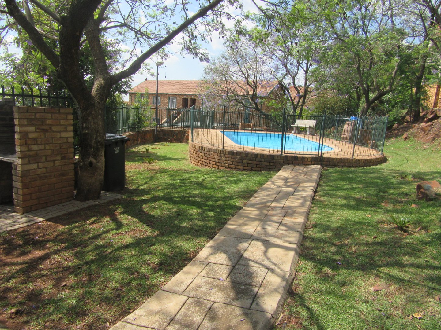 The secure townhouse complex has a communal swimming pool