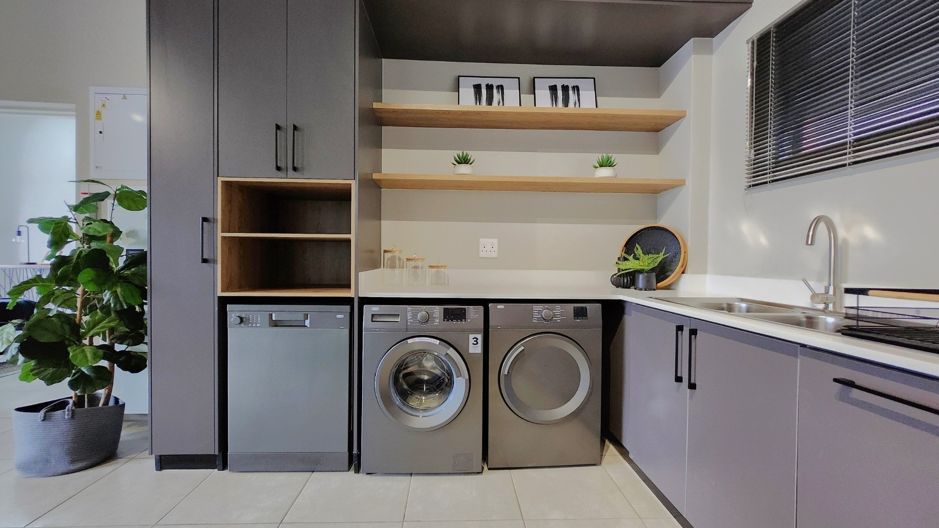 Modern features include prepaid electricity, backup solar power, a Kwikot solar geyser, individual water metering, a gas hob with electric oven, fibre readiness, and a bulk backup water system supplied by a borehole within the complex.