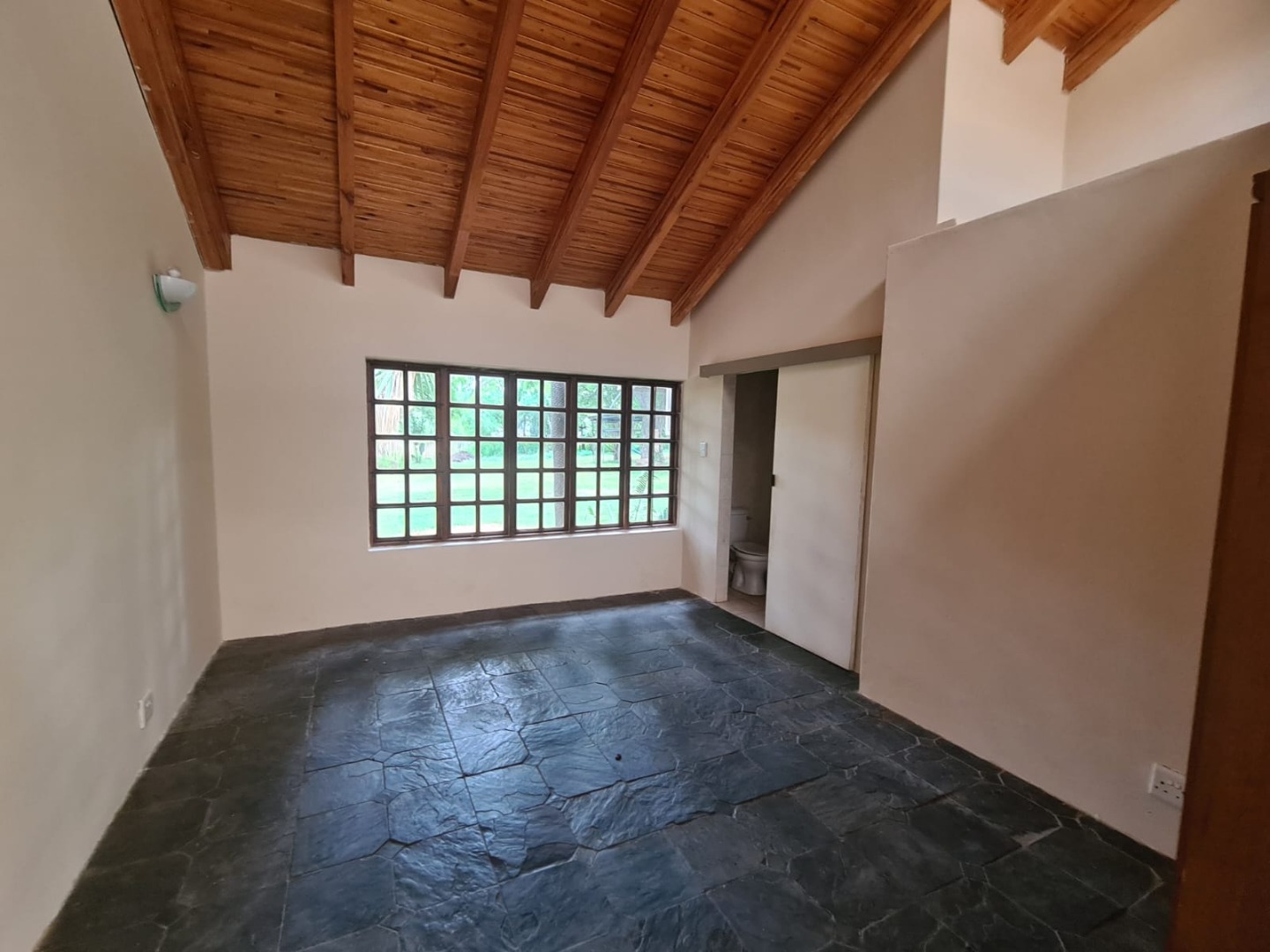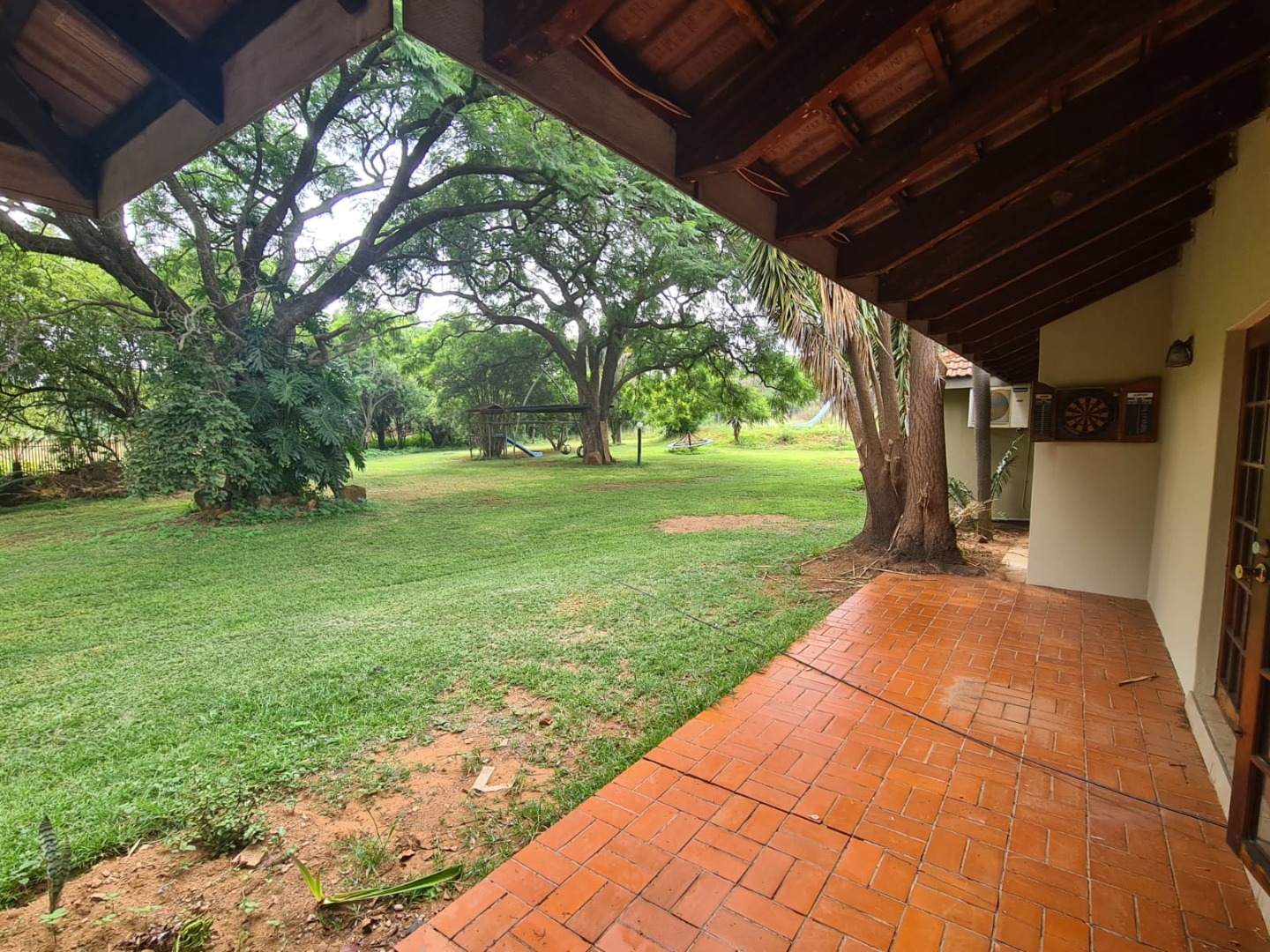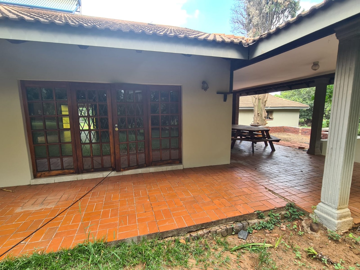 This expansive residential rental property in Roodeplaat, Pretoria, offers a unique blend of spacious living and country charm. The main residence features four comfortable bedrooms and three bathrooms, including one en-suite, providing ample accommodation for families. Designed for versatile living, the home boasts three distinct lounge areas and a dedicated dining room, complemented by a functional kitchen. Practicality is further enhanced by a generous four-car garage and additional parking, ensuring convenience for residents and guests alike. Set on a substantial 3.00-hectare erf, this property embraces a desirable country living lifestyle. The extensive outdoor space is a highlight, featuring mature trees, established garden areas, and multiple covered patios perfect for outdoor entertaining or quiet relaxation. Children will appreciate the dedicated play equipment, while adults can enjoy the tranquility of the vast grounds. Adding to its appeal is a charming, separate cottage-style structure with a distinctive thatched roof and stone accents, complete with an en-suite bathroom, offering potential as a guest suite, home office, or private retreat. The property incorporates practical features for modern living, including visible burglar bars and security gates for peace of mind. Sustainability is addressed with a solar water heater and solar panels on the roof, contributing to energy efficiency. This home provides a serene escape while remaining within the vibrant community of Pretoria. This area is renowned for its tranquil environment and spacious properties, offering a peaceful retreat from city life while maintaining accessibility to urban amenities. It presents an ideal setting for those seeking a blend of rural serenity and convenience in South Africa. Key Features: * Four Bedrooms, Three Bathrooms (one en-suite) * Three Lounges and Dining Room * Four-Car Garage and Ample Parking * Expansive 3.00 Hectare Erf * Multiple Covered Outdoor Patios * Separate Thatched Cottage with En-suite * Solar Water Heater and Panels * Security Gates and Burglar Bars * Ideal for Country Living in Roodeplaat