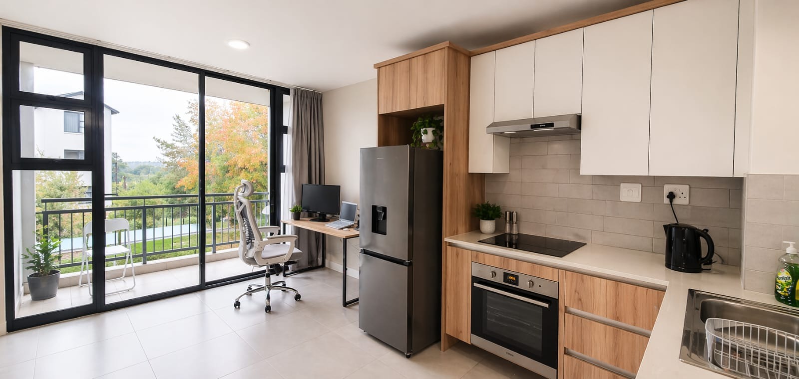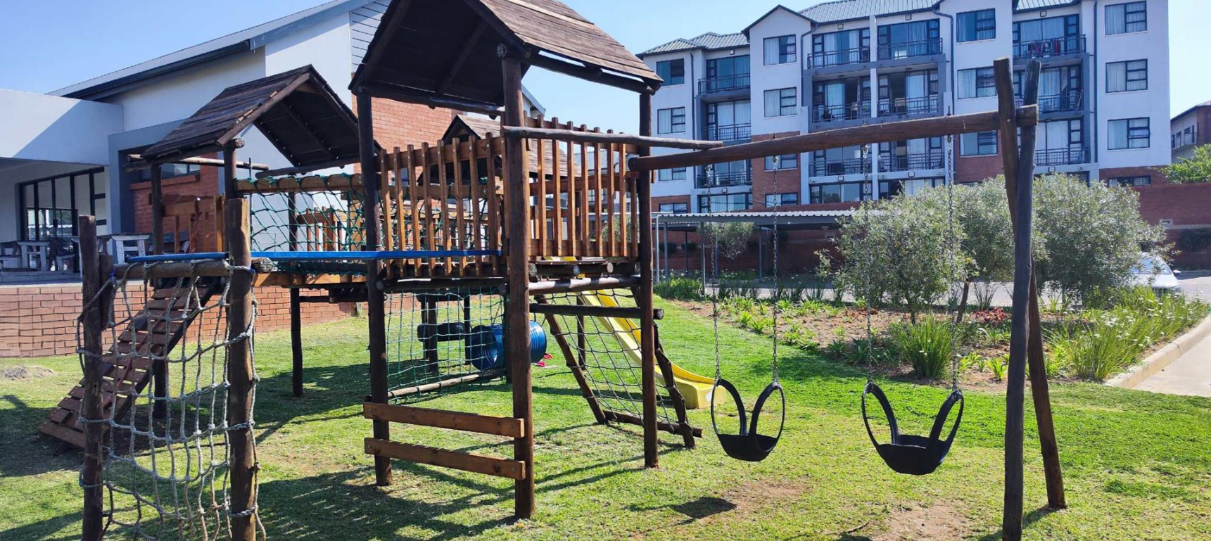But the fun doesn't stop indoors! You've got your very own balcony, perfect for enjoying your morning coffee or unwinding after a long day while soaking in some scenic views. And on those sunny South African days, you can take a refreshing dip in the communal pool – how cool is that? Even though the unit itself is compact, it's part of a huge 31,247 sqm estate, giving you a sense of space and tranquility.