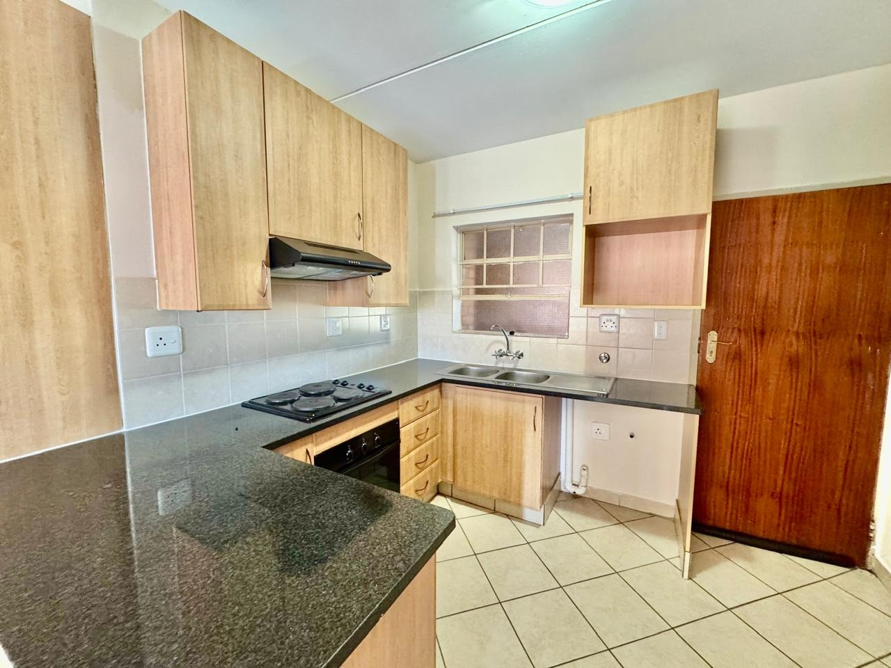 The kitchen is fitted with granite countertops and space for your appliances.