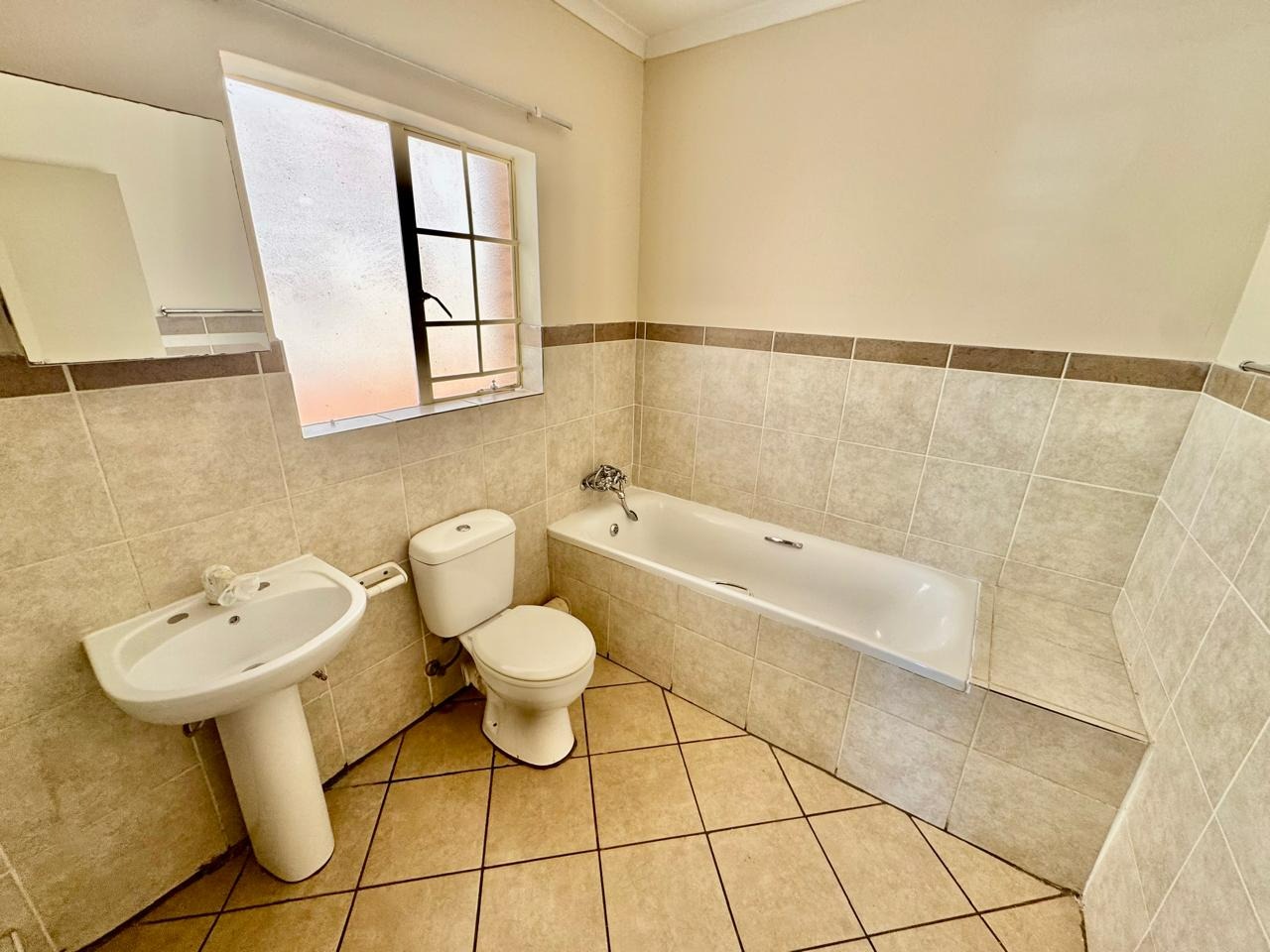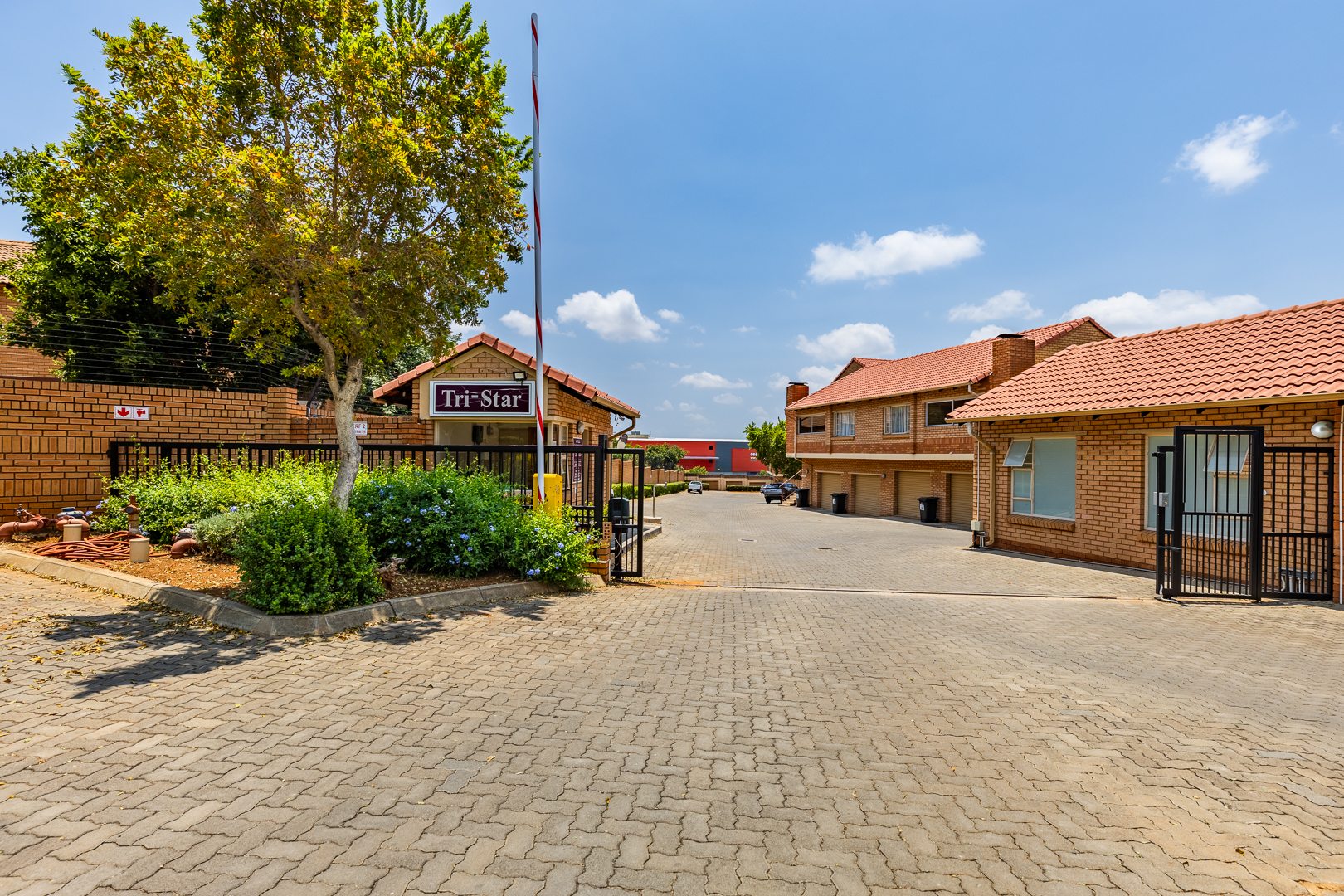The estate offers 24-hour security and a communal swimming pool for residents to enjoy. Additional extras include one lock-up garage and the convenience of being close to main routes and amenities.