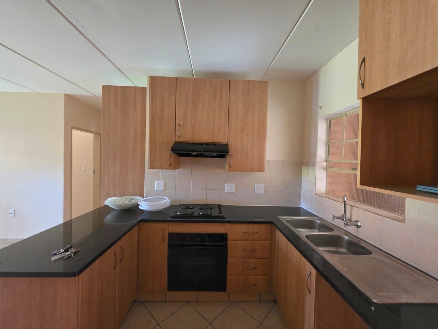 The heart of the home is the open-plan kitchen, complete with elegant granite countertops and ample space for all your appliances, flowing seamlessly into the light-filled lounge area.