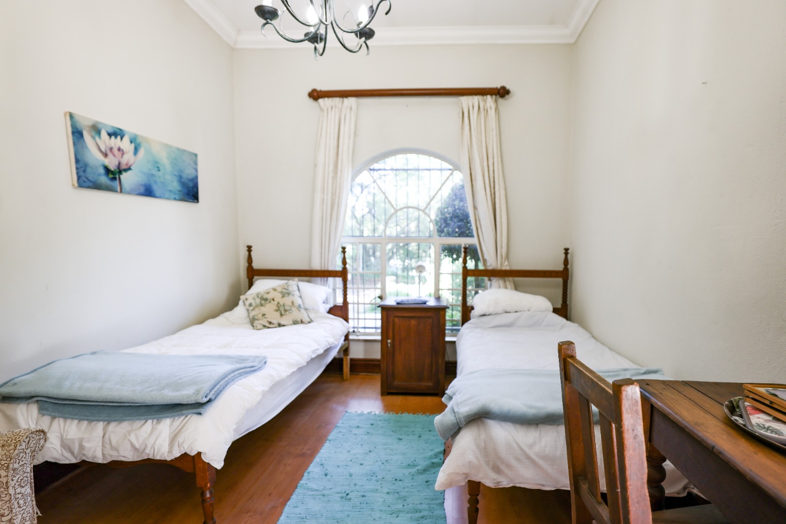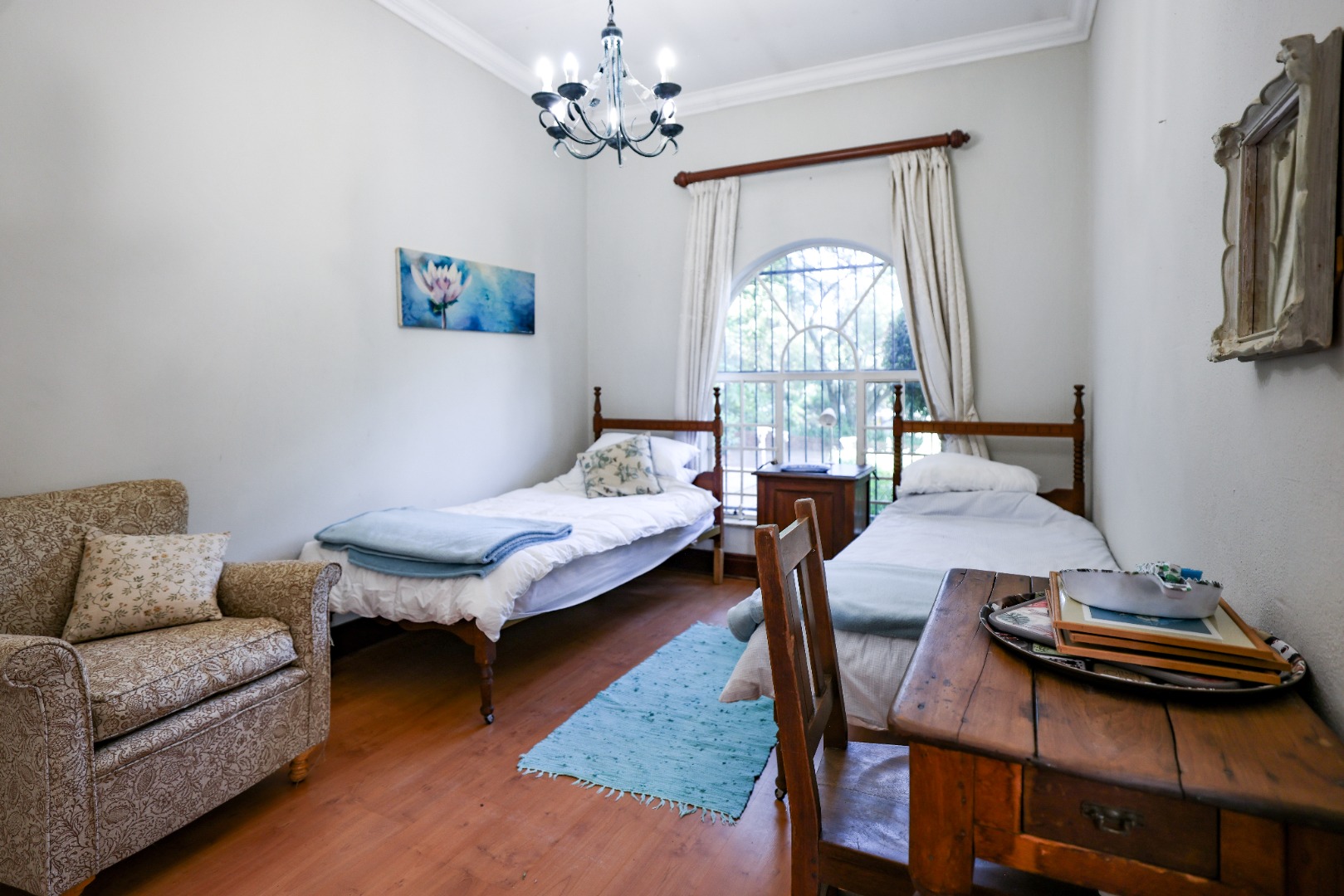 Outside, a majestic garden blooms with color and serenity—perfect for morning coffees, twilight strolls, or simply unwinding beneath the trees. Whether you're a couple seeking a peaceful haven or a professional looking for a soulful space to work and reflect, this cottage offers a rare blend of romance and practicality.