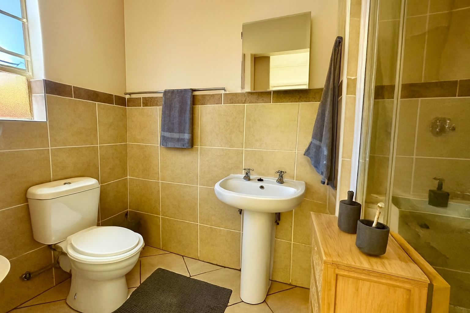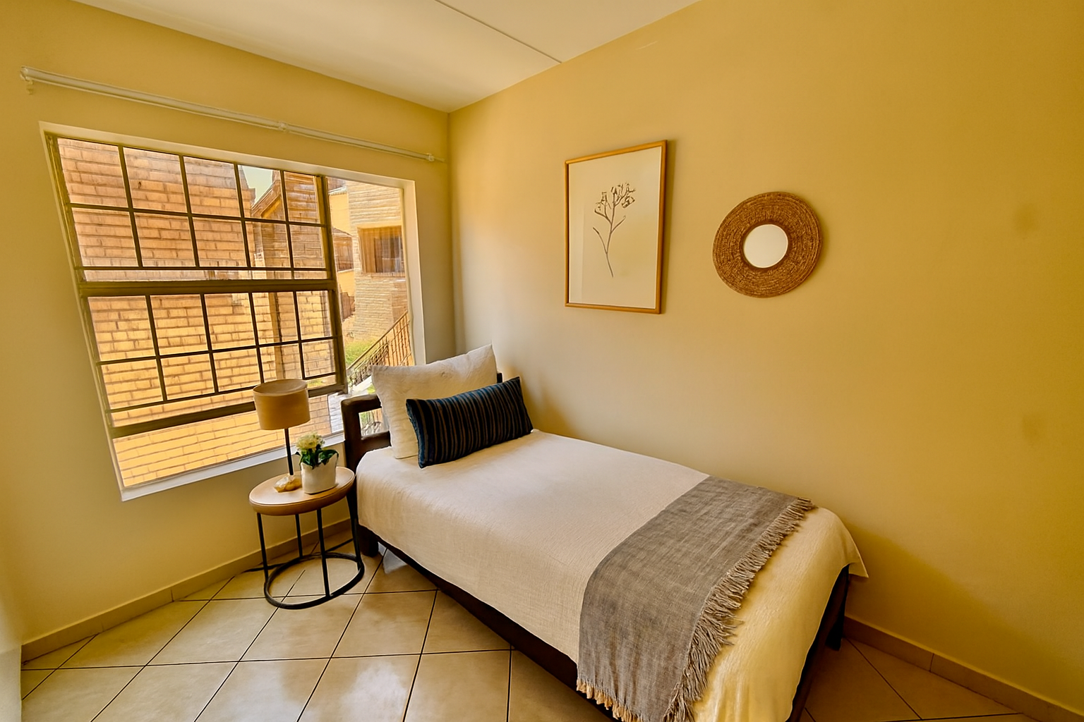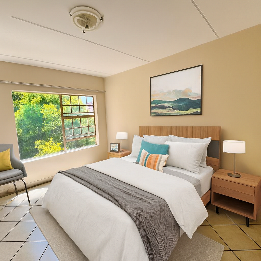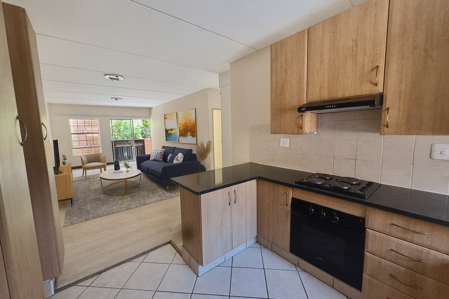 The unit features three fully tiled bedrooms and a laminated lounge, creating a warm and modern living space.