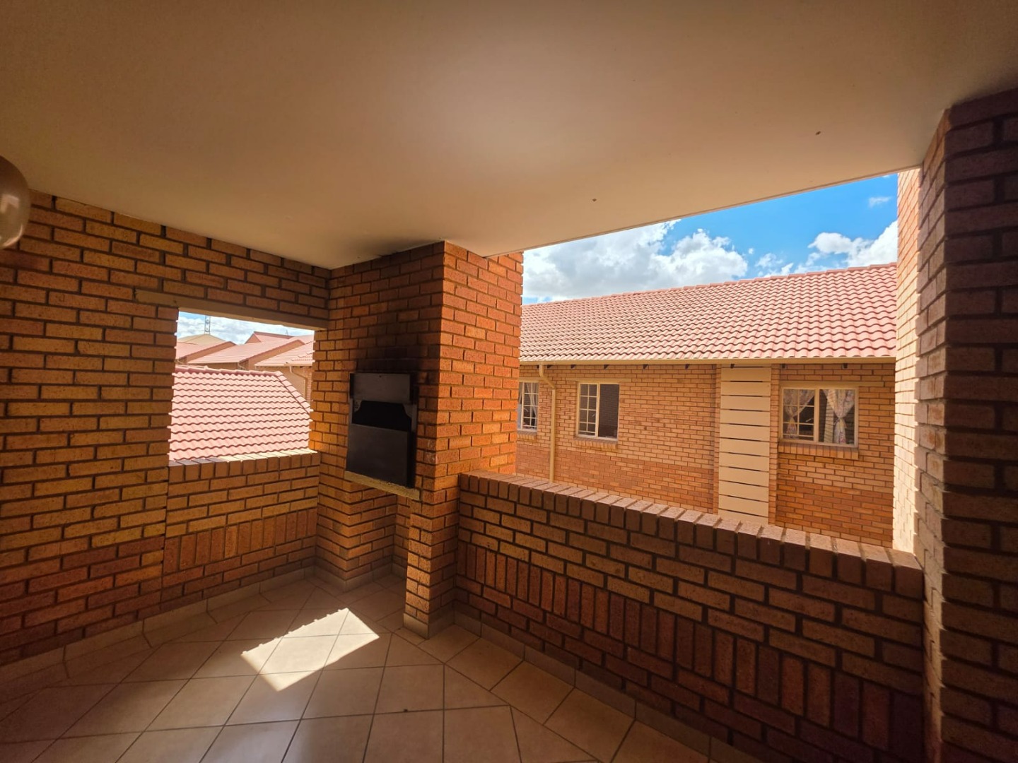 Sliding doors open onto a private balcony with a built-in braai — perfect for relaxed outdoor entertaining.