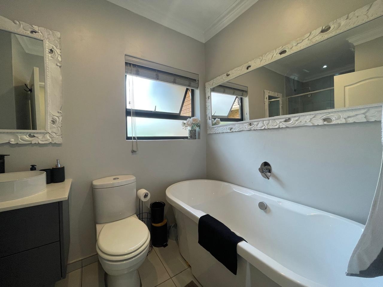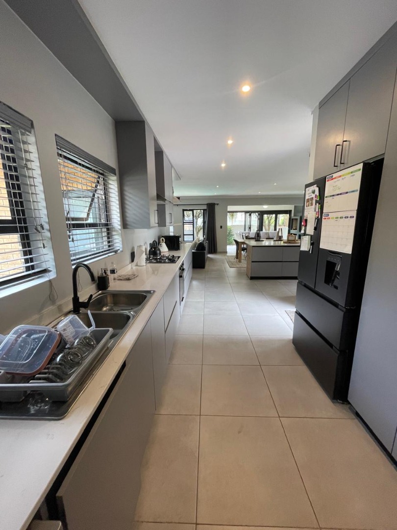 Discover this inviting 3-bedroom, 2-bathroom residence nestled within the prestigious Silver Lakes Golf Estate in Pretoria. Designed for comfortable family living, this home features an open-plan layout that seamlessly connects the spacious lounge, dining room, and a well-appointed kitchen. Large folding glass doors enhance the indoor-outdoor flow, bathing the interiors in natural light and offering views of the lush garden, creating an airy and welcoming atmosphere. The property boasts a private swimming pool, perfect for relaxation and entertaining, complemented by a paved patio and a built-in braai for al fresco dining. The expansive, well-maintained garden provides ample space for outdoor activities, complete with an irrigation system. Additional practical features include a dedicated study, a pantry, a guest toilet, staff quarters, and a convenient laundry area, catering to all household needs. Enjoy peace of mind with 24-hour security within this gated community, an eco-estate offering a secure and tranquil environment. This home is equipped with modern sustainability features, including solar panels and a battery inverter, ensuring energy efficiency. Fibre connectivity is available, and air conditioning units provide comfort throughout. Residents benefit from access to the estate's golf course, tennis court, and clubhouse, enhancing the lifestyle offering. This secure estate is renowned for its family-friendly environment and exceptional amenities. Located in Pretoria, it offers a unique blend of luxury living and natural beauty, with fishing and wildlife aspects contributing to its appeal. This prime location provides convenient access to local facilities while maintaining a serene residential atmosphere. Key Features: * 3 Bedrooms, 2 Bathrooms * Private Swimming Pool * Solar Panels & Battery Inverter * Fibre Connectivity * Built-in Braai & Patio * 2 Garages & 4 Parking Spaces * Access to Golf Course, Tennis Court, Clubhouse * 24-Hour Security in Gated Estate * Pets Allowed