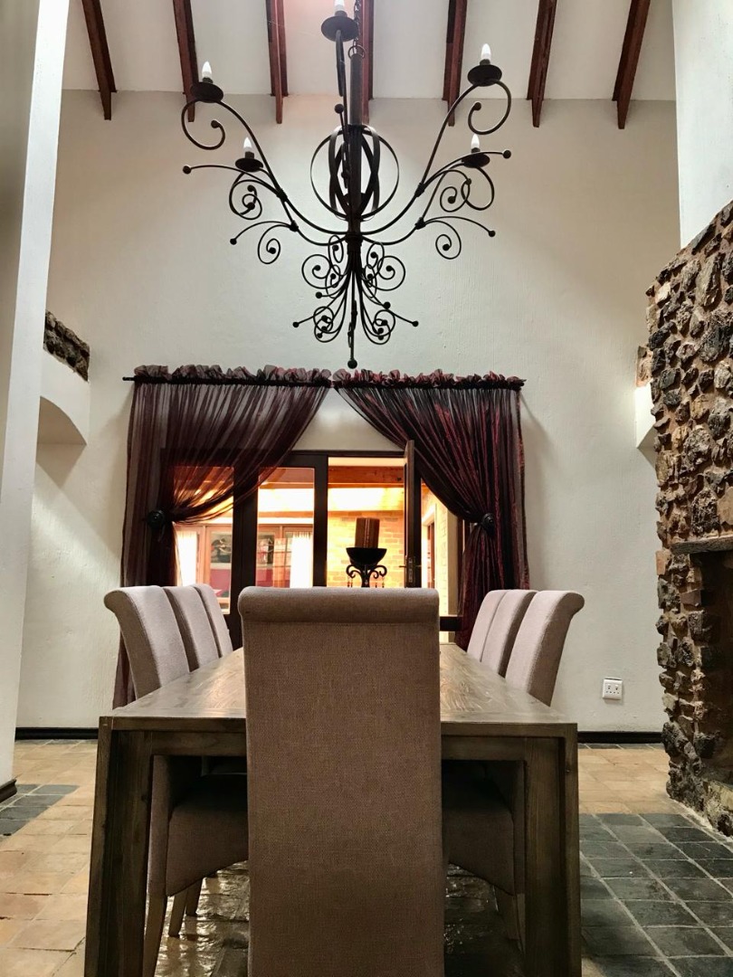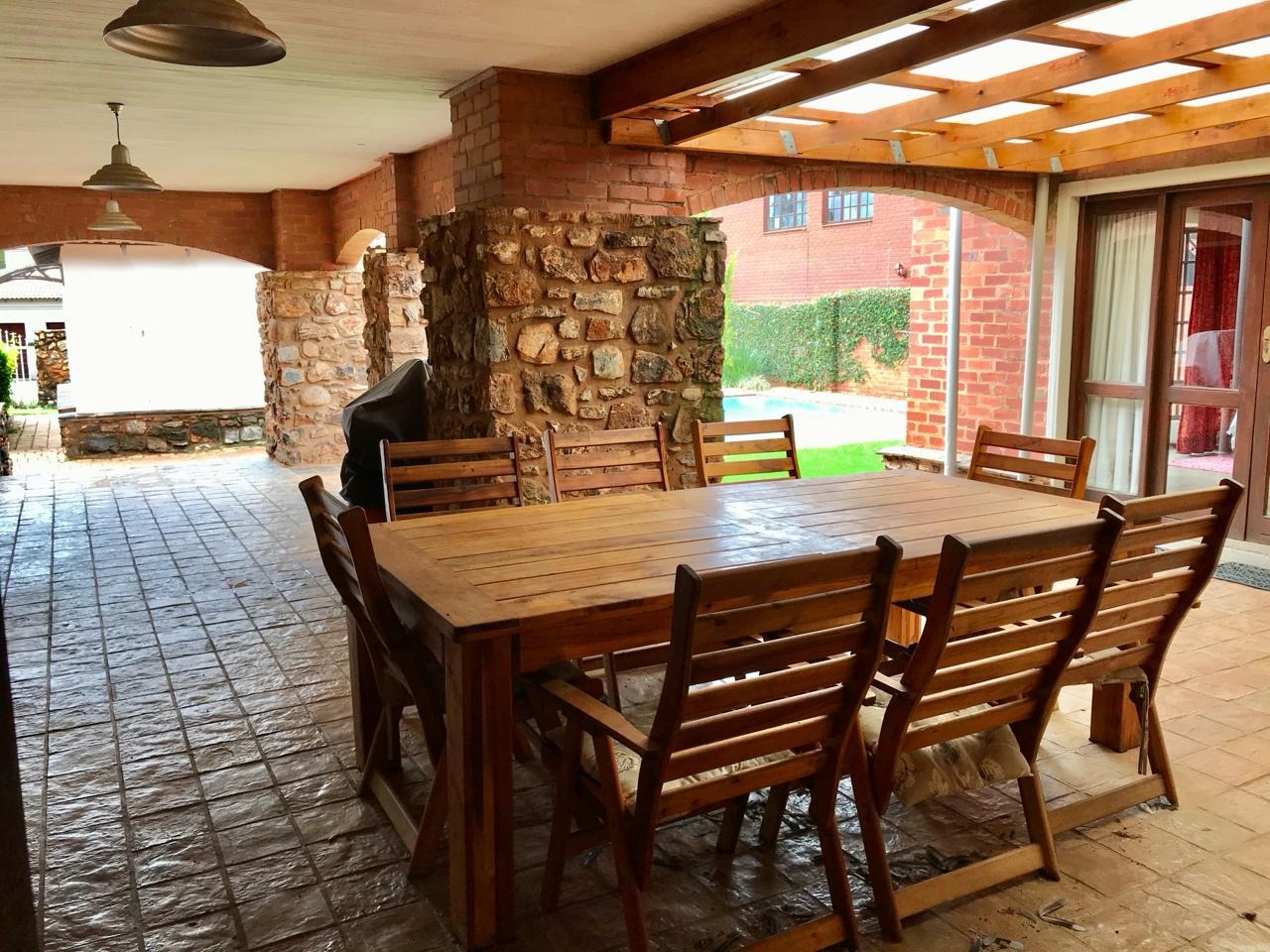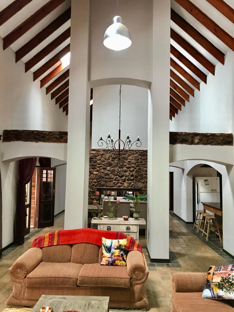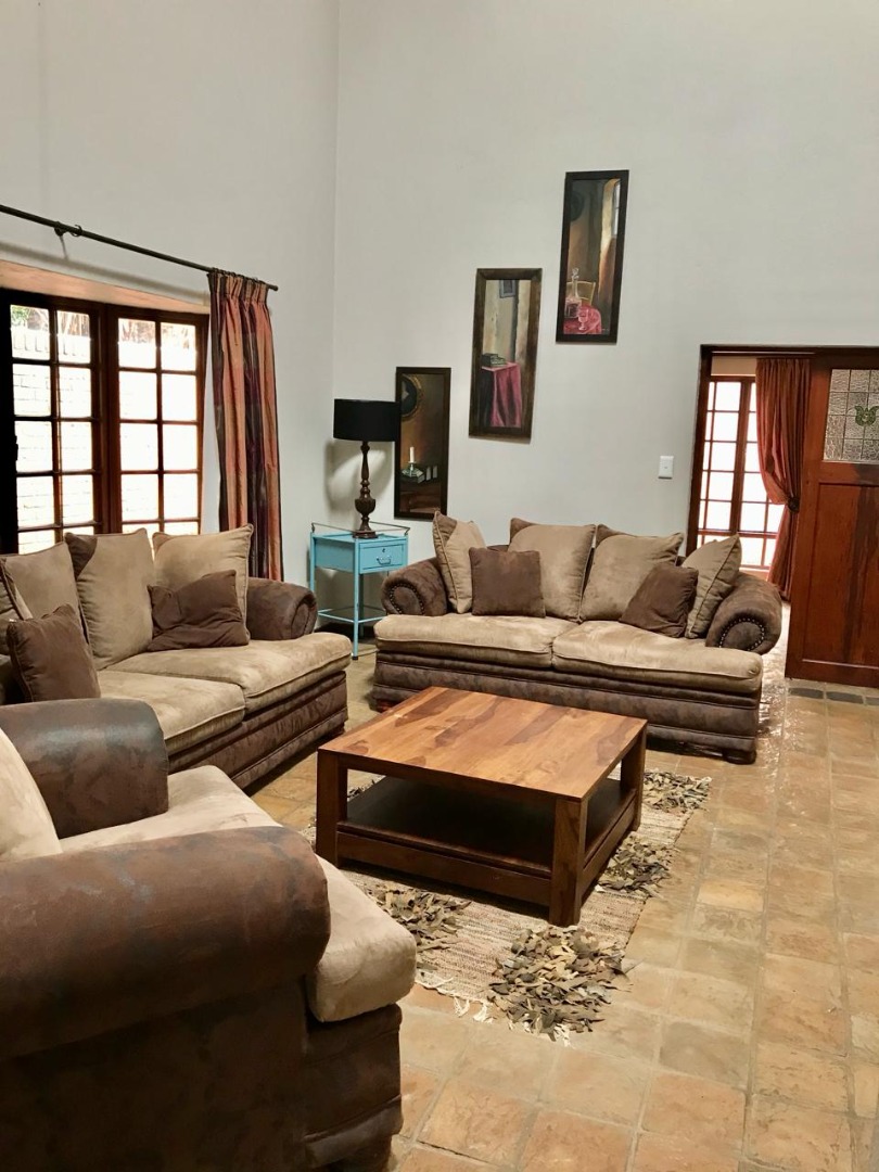 Discover this inviting 4-bedroom, 2.5-bathroom furnished residence available for rent within the prestigious Silver Lakes Golf Estate in Pretoria, South Africa. This home offers a spacious open-plan layout, characterized by high vaulted ceilings with exposed wooden beams, natural stone accent walls, and elegant arched doorways, creating a warm and distinctive ambiance. The interior features a well-appointed kitchen, a dedicated dining room, a comfortable lounge, and a family TV room, all designed for modern living. A rustic stone fireplace adds a focal point, while practical amenities include a pantry, laundry facilities, and a guest toilet. The property extends its charm outdoors with a traditional brick and terracotta tile exterior. Enjoy leisurely days by the private swimming pool or entertain guests in the covered patio area, complete with unique stone pillars. The well-maintained garden benefits from an irrigation system, and the property includes a double garage along with additional parking space. This home is ideal for families or professionals seeking a secure and amenity-rich lifestyle, offering air conditioning for comfort and staff quarters for convenience. Residents benefit from the comprehensive security of a gated community with 24-hour security, ensuring peace of mind. Fibre connectivity is available, catering to modern communication needs. Silver Lakes Golf Estate is renowned for its exceptional lifestyle, featuring a golf course, fishing estate, eco-estate principles, a clubhouse, and tennis courts, providing a diverse range of recreational activities right on your doorstep. Key Features: * 4 Bedrooms, 2.5 Bathrooms * Fully Furnished Residence * Open-Plan Living with Vaulted Ceilings * Private Swimming Pool & Covered Patio * Double Garage & Additional Parking * Study, Pantry, Laundry, Staff Quarters * Air Conditioning & Fibre Connectivity * 24-Hour Security in Gated Golf Estate