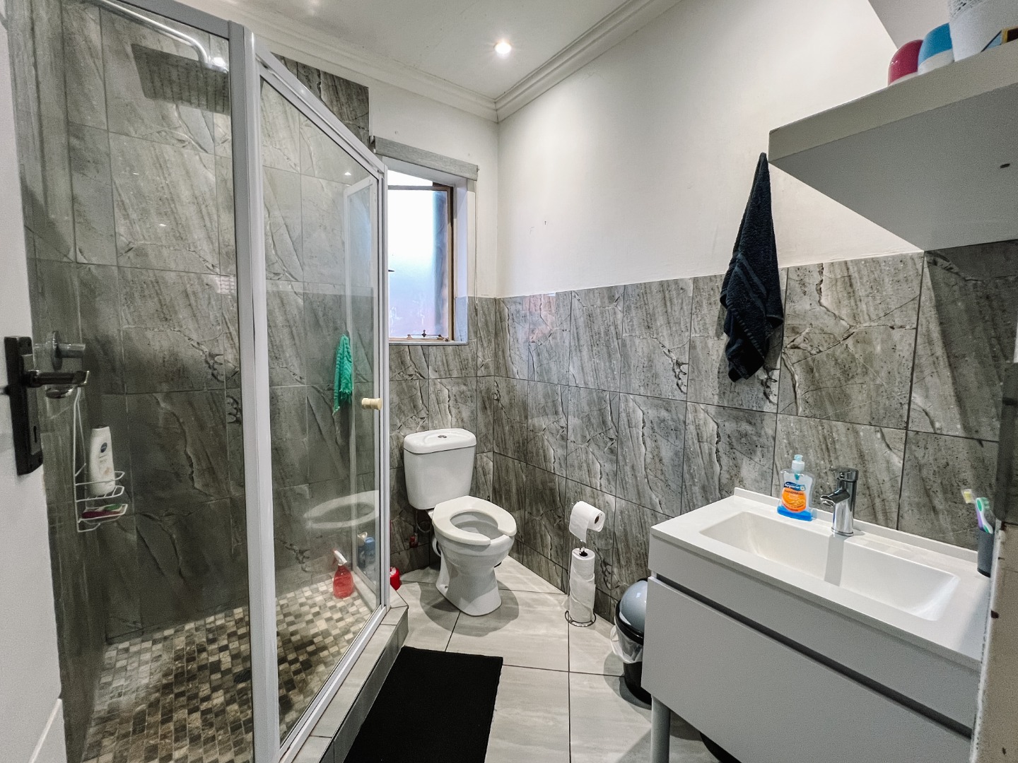 The bathroom is neatly finished and fitted with a shower, basin, and toilet.