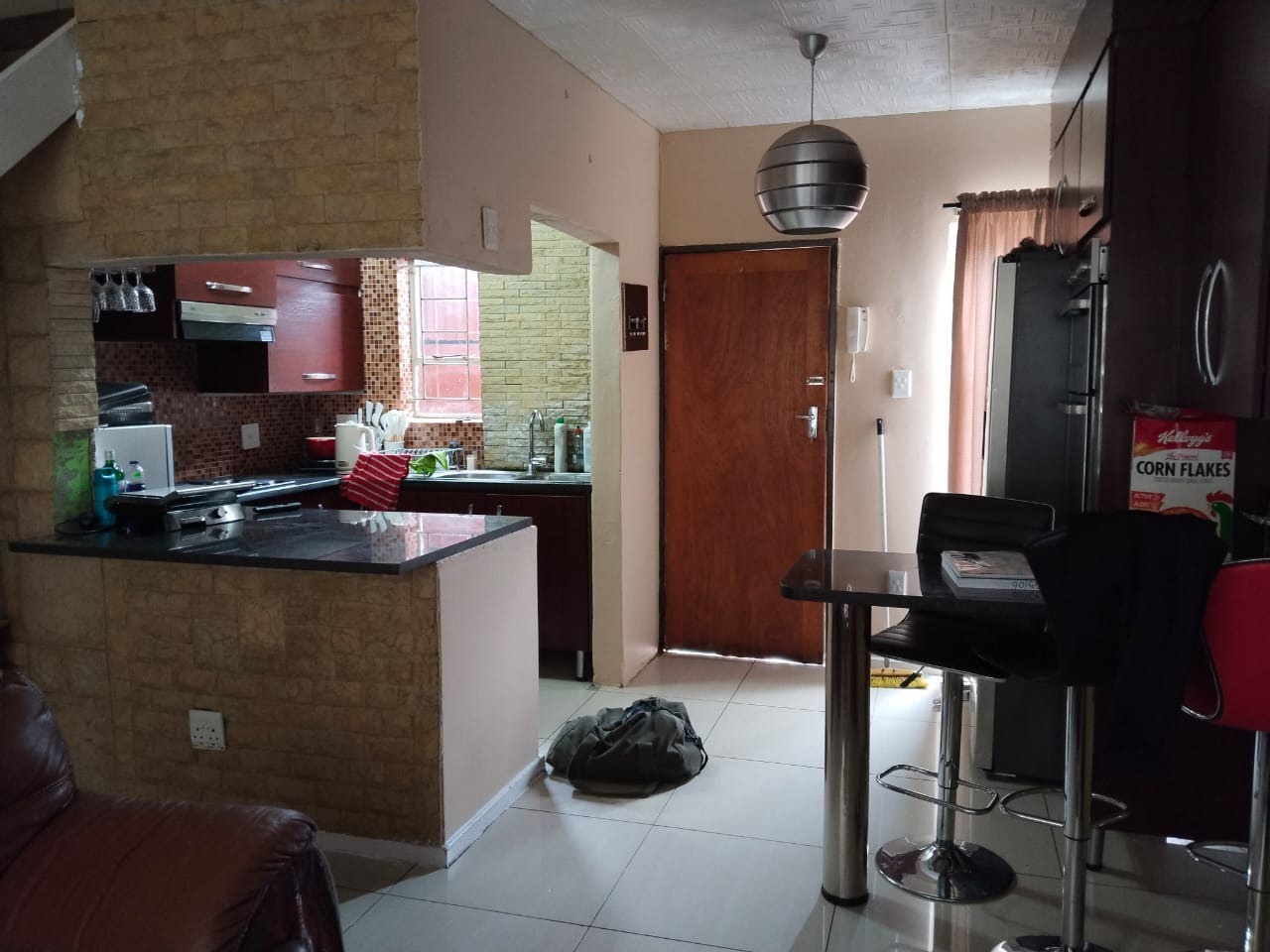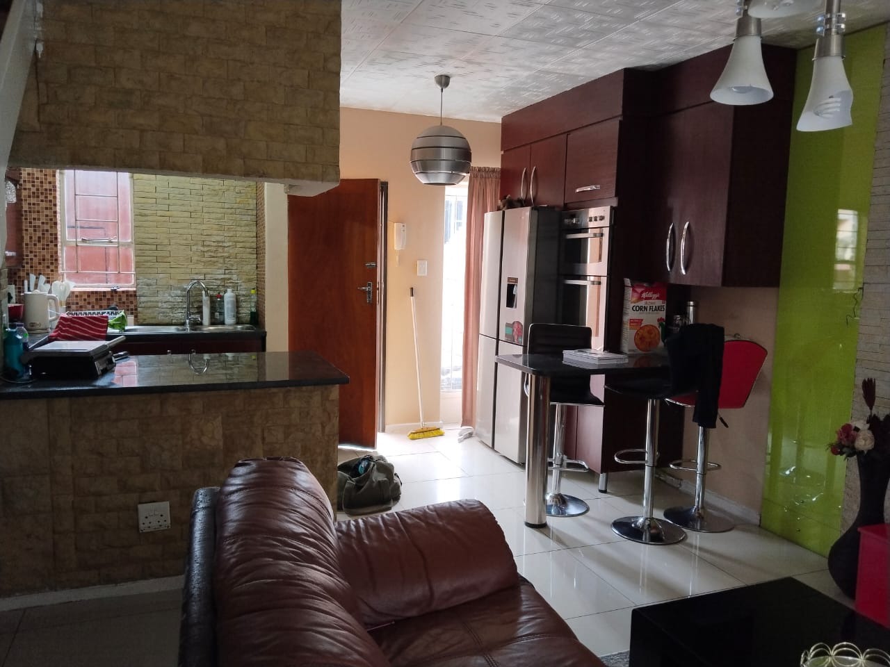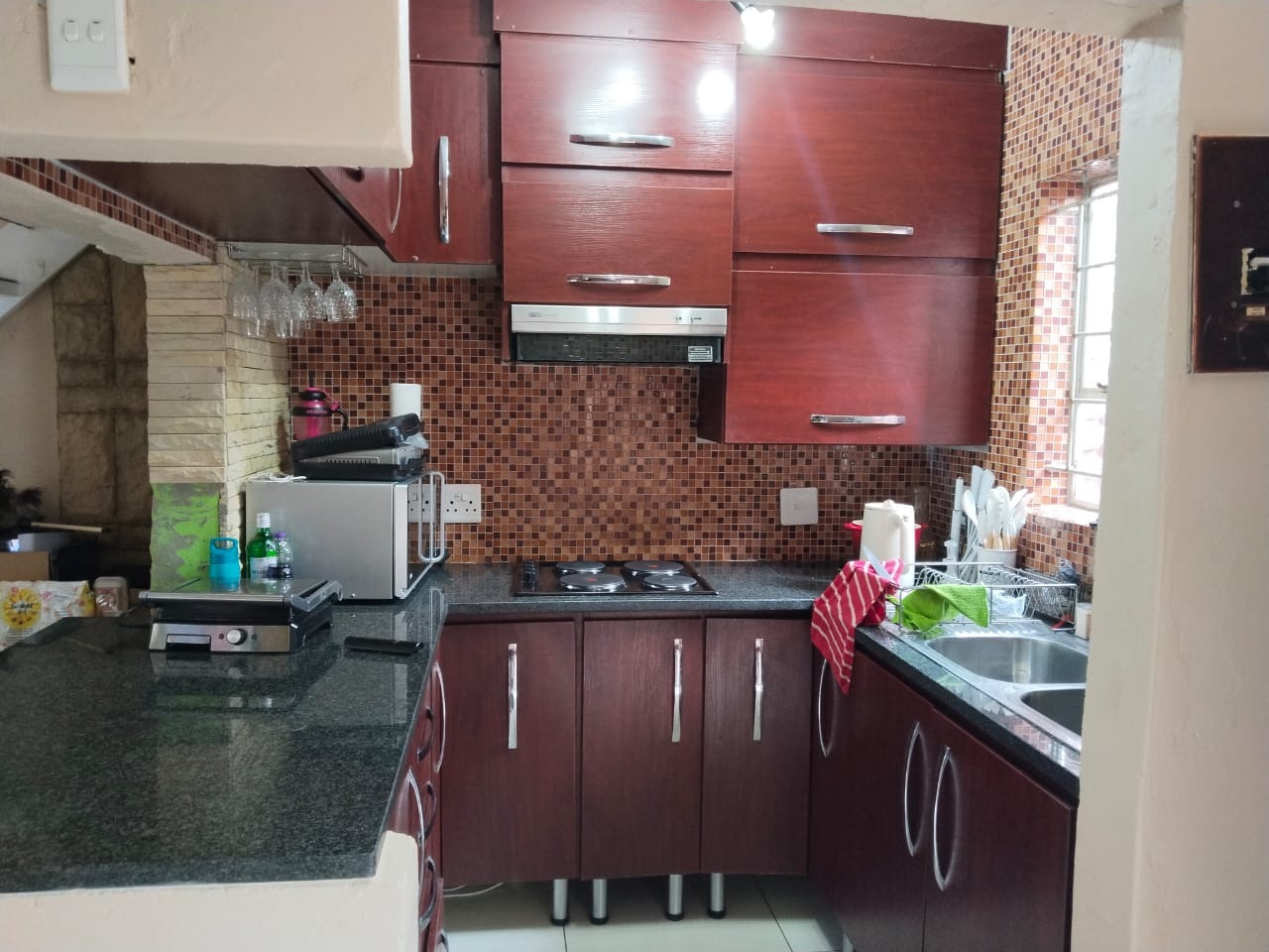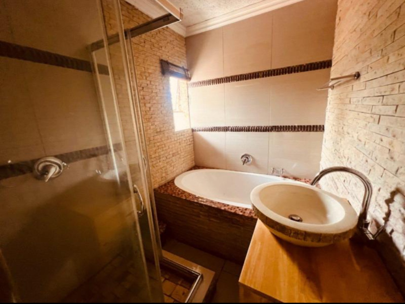 Discover this inviting 3-bedroom, 1.5-bathroom rental property situated within a secure complex in Silverton, Pretoria. Spanning 120 sqm of floor space on a 200 sqm erf, this home offers a practical and comfortable living environment. The open-plan layout seamlessly connects the lounge, dining area, and a modern kitchen, creating an ideal space for daily living and entertaining. The kitchen is a highlight, featuring dark wood cabinetry, granite countertops, a stylish mosaic tile backsplash, a built-in double oven, and an integrated breakfast bar, all complemented by durable tiled flooring. Upstairs, the three well-proportioned bedrooms are equipped with built-in wardrobes and tiled floors, ensuring ample storage and easy maintenance. One bedroom benefits from an air conditioning unit and a distinctive brick-style accent wall. The main bathroom provides both a separate shower enclosure and a bathtub, alongside a unique vessel sink. An additional compact bathroom, likely serving as a guest toilet, adds convenience. Exterior features include a covered carport providing three parking spaces, a paved driveway, and a welcoming patio, perfect for outdoor relaxation. The property is designed for a secure lifestyle, boasting electric fencing, an access gate, a security post, and an intercom system within the complex. Further security is enhanced by burglar bars and security gates. Fibre connectivity is available, and pets are allowed, making it suitable for a variety of tenants. Silverton offers a well-established community in Pretoria, providing convenient access to local amenities, schools, and major transport routes, making it a desirable location for residential rentals. Key Features: * 3 Bedrooms with built-in wardrobes * 1.5 Bathrooms (main with separate shower and bath) * Modern kitchen with granite countertops and built-in oven * Open-plan lounge and dining area * Covered carport with 3 parking spaces * Secure complex with electric fencing and access control * Fibre ready * Pets allowed * Patio and paved driveway