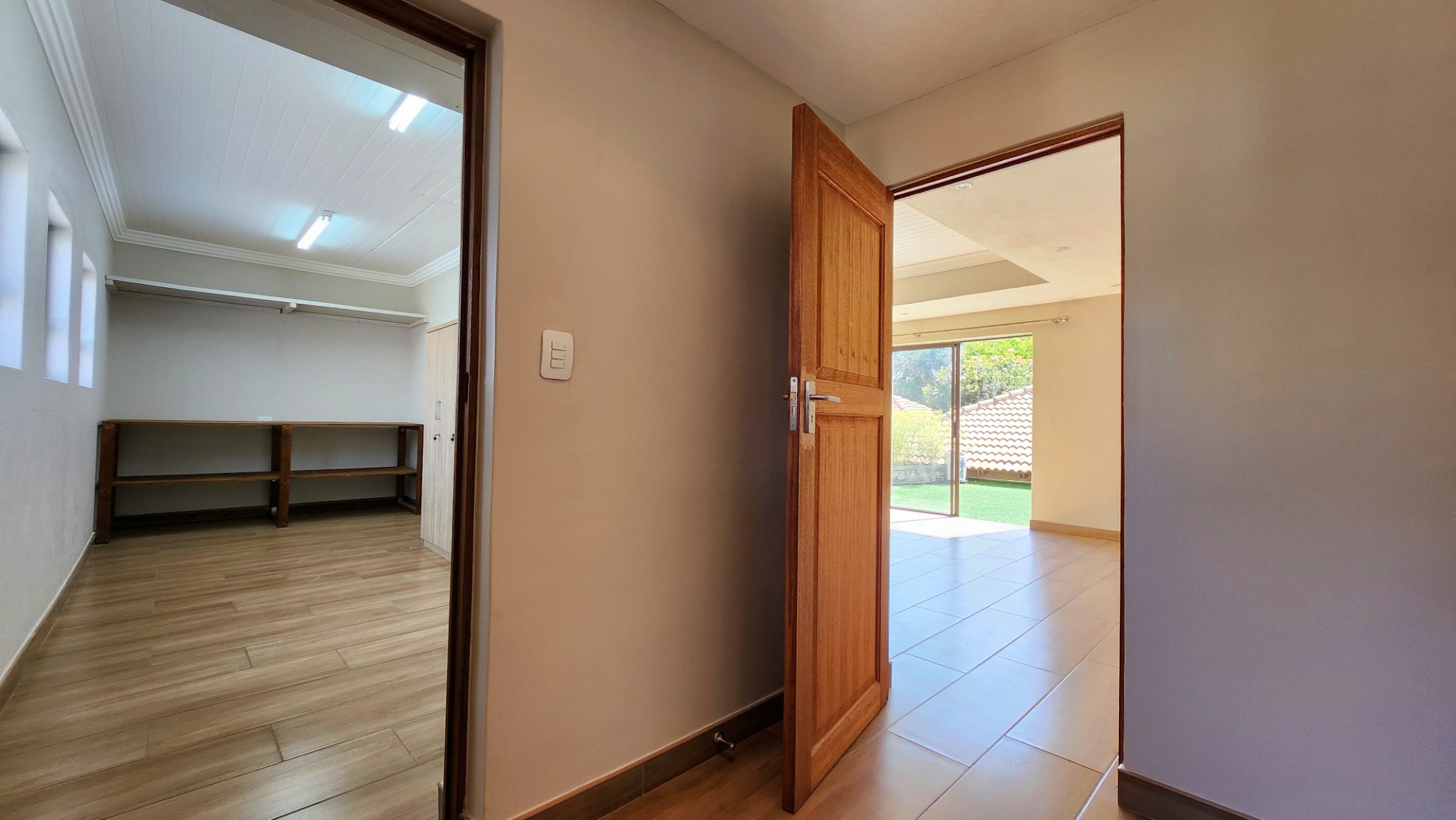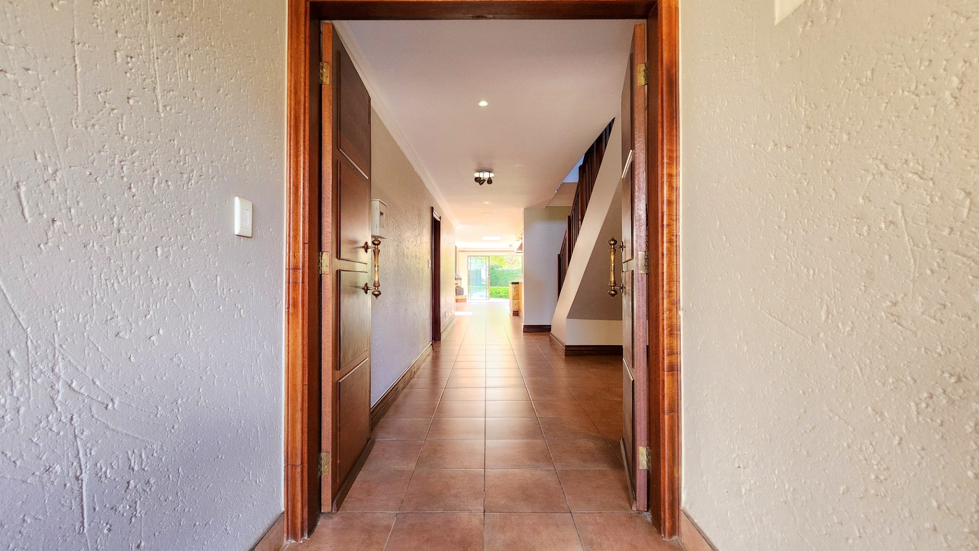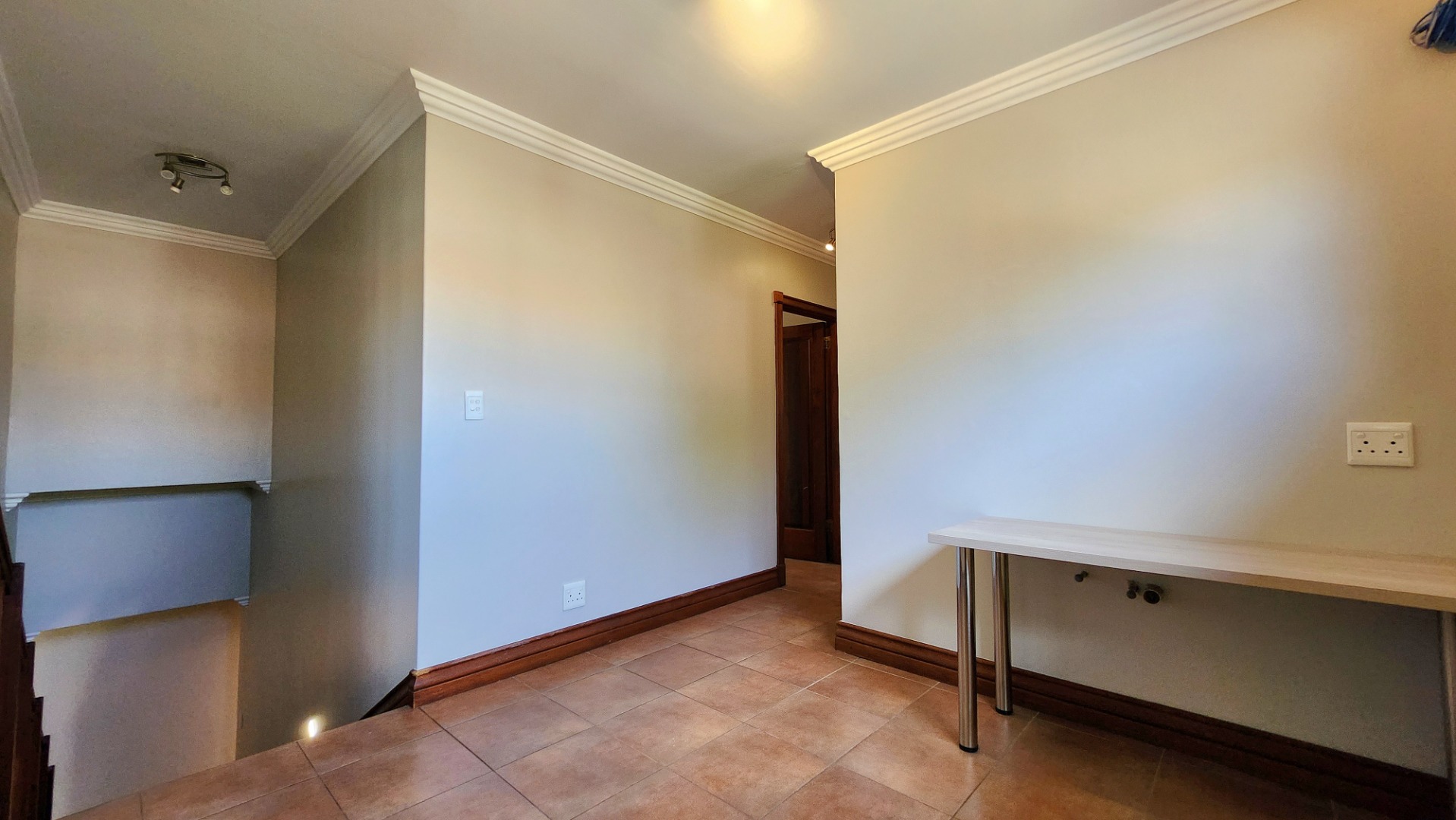 Accommodation includes four generously sized bedrooms and four bathrooms, with two en-suite facilities for privacy and convenience. Outside, a private oasis awaits with a sparkling swimming pool, a spacious patio, and a beautifully landscaped garden, complete with an irrigation system, borehole, and water tanks. A built-in braai is perfect for outdoor entertaining.