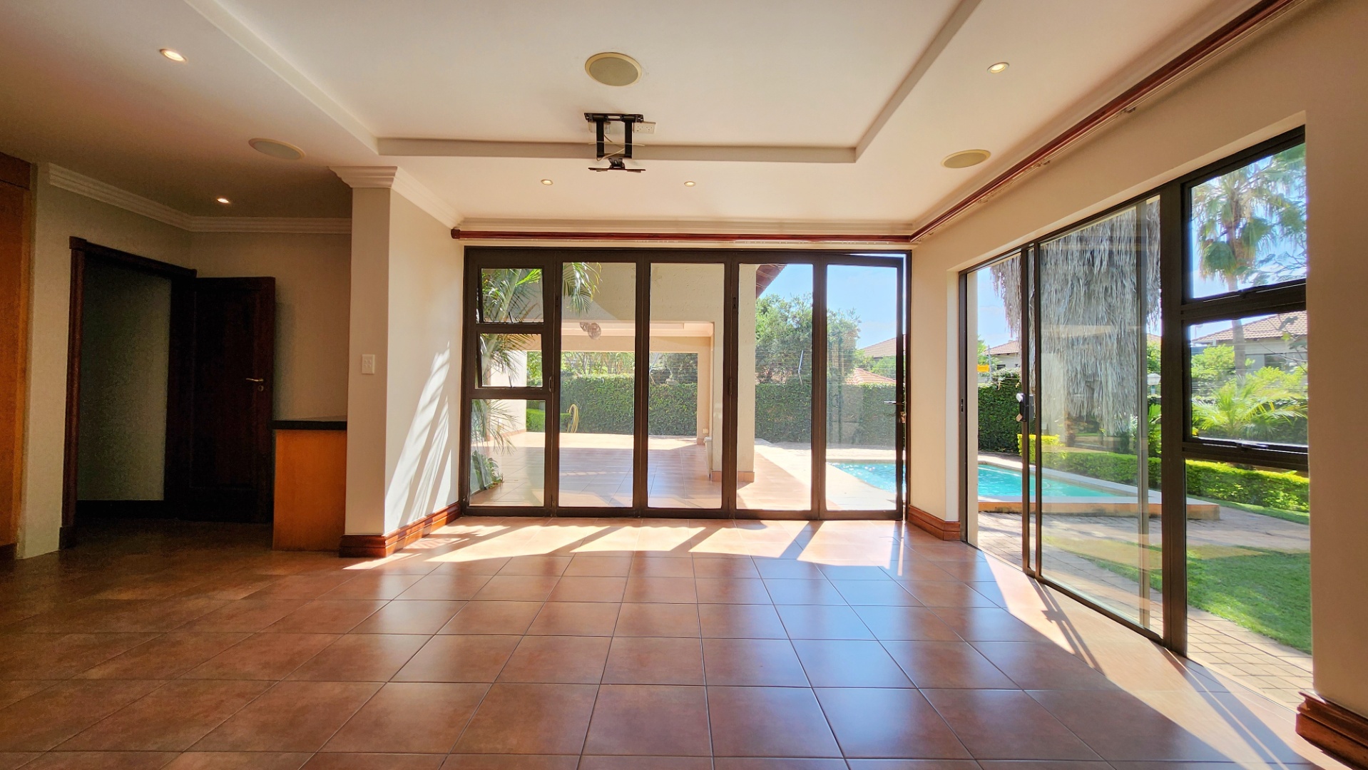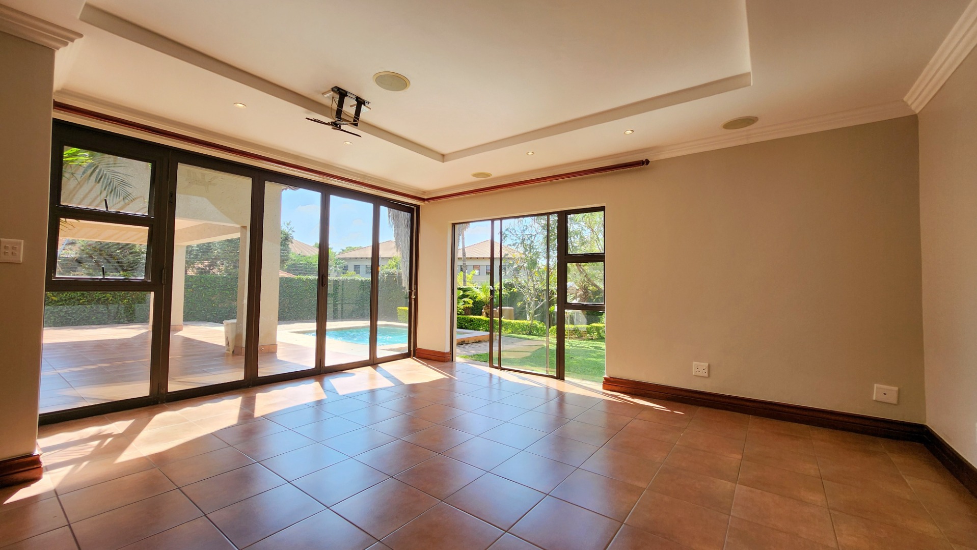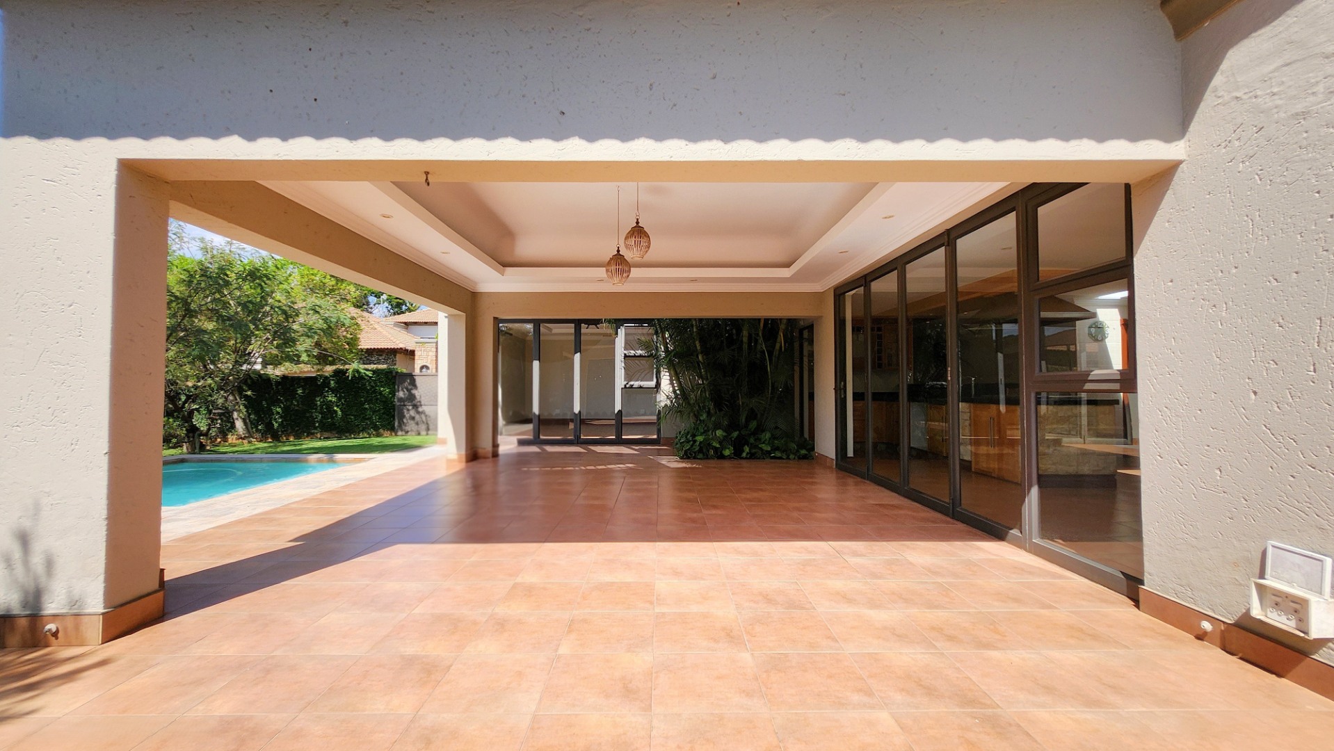 Spanning an impressive 485 sqm on a 750 sqm erf, this residence features an inviting open-plan layout with sliding doors, enhancing natural light and outdoor access. The home boasts one lounge, a dedicated dining room, and a family TV room, providing ample space for relaxation and entertainment. A well-appointed kitchen caters to all culinary needs.