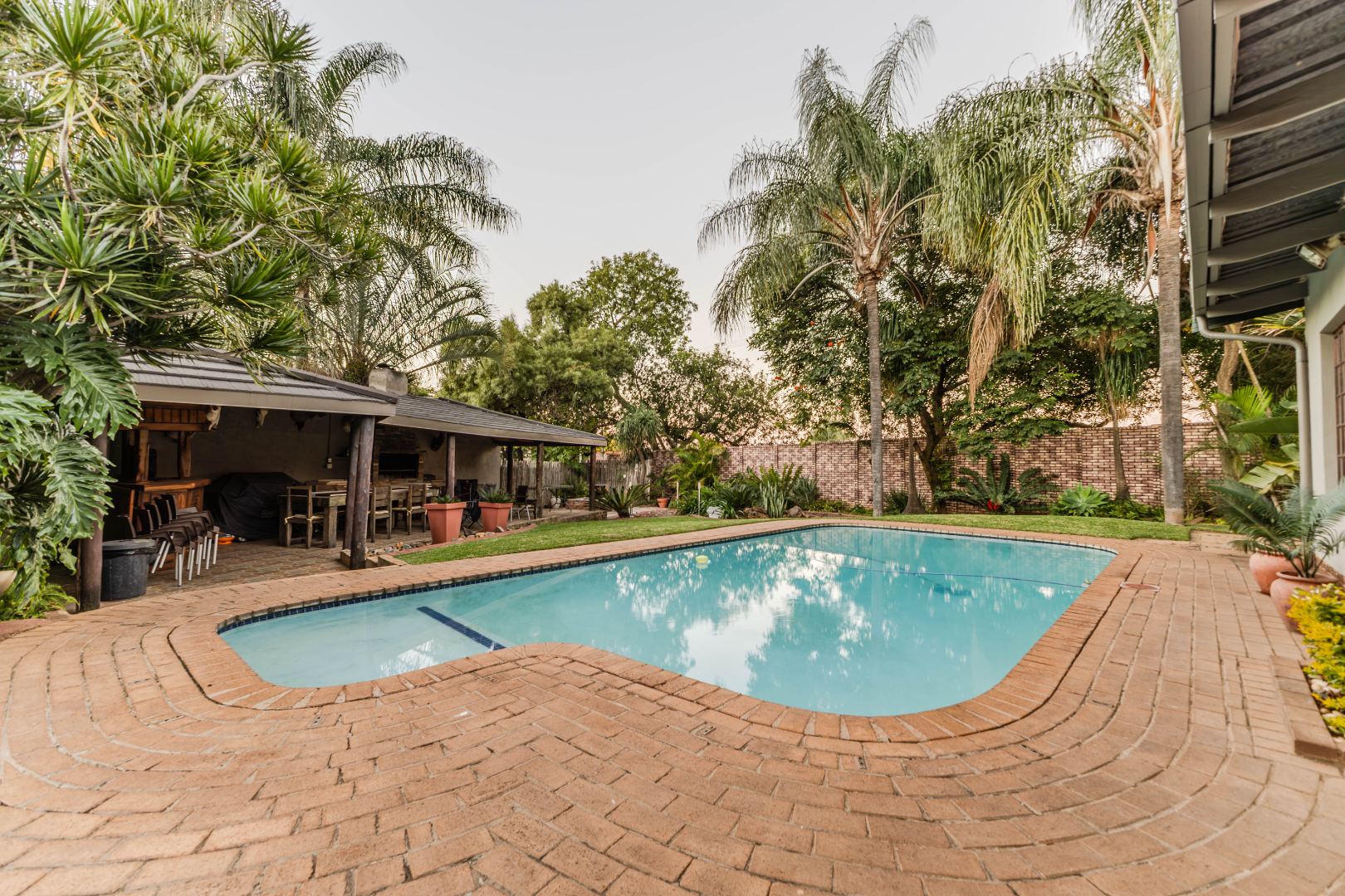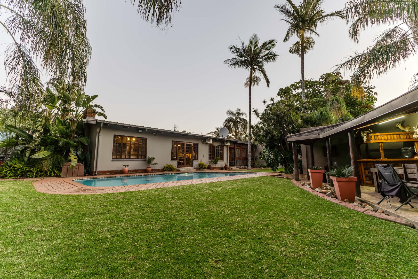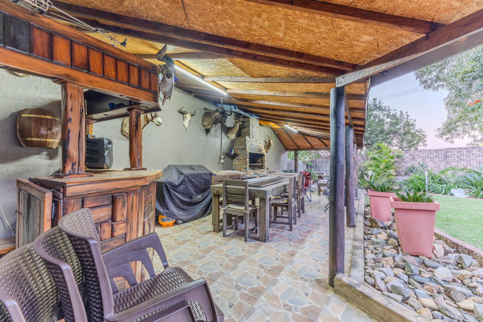The home boasts three generous living areas, providing ample space for relaxation, work, or play. At the heart of the home lies a spacious kitchen with a separate scullery — perfect for both everyday cooking and hosting guests. Step outside to a lovely undercover entertainment area that seamlessly connects to a large garden. Enjoy sunny days by the sparkling pool or cozy evenings around the boma – perfect for year-round entertaining. This home is equipped with a full solar power system, ensuring you’ll never be without electricity, while significantly reducing utility costs. Additional features include staff quarters with a private bathroom and plenty of parking for family and visitors.