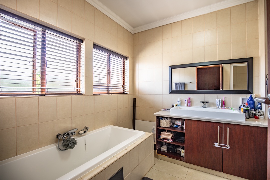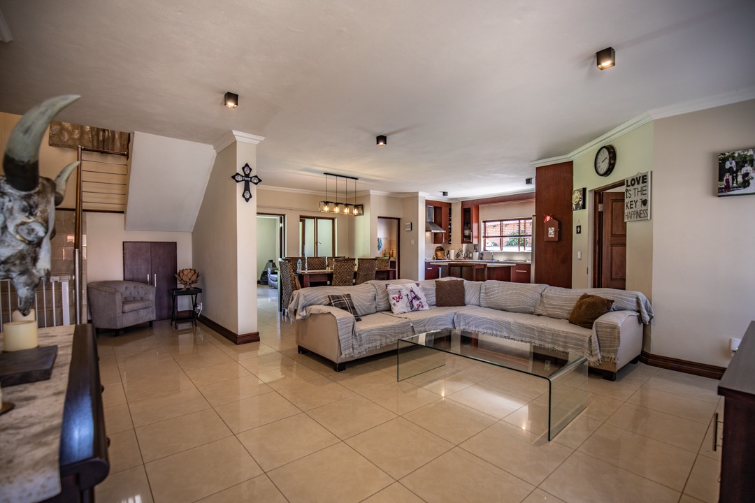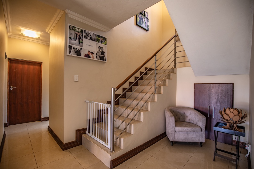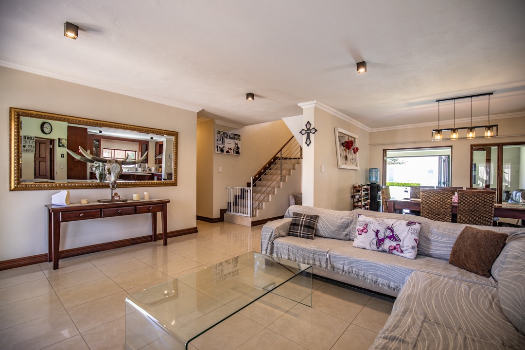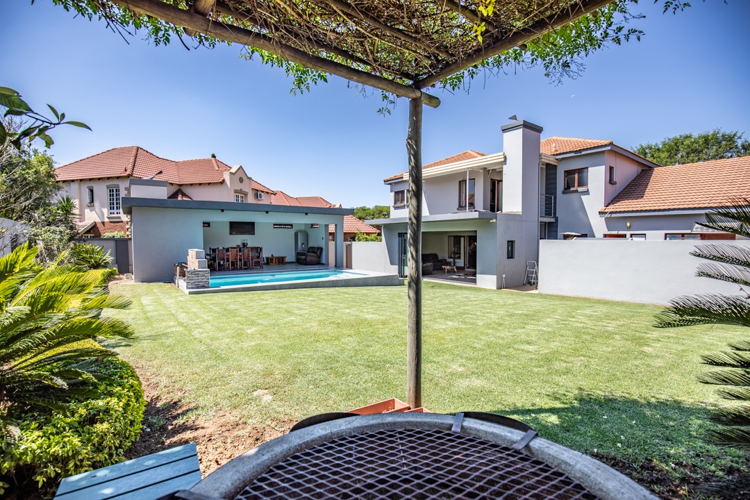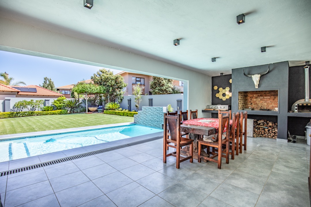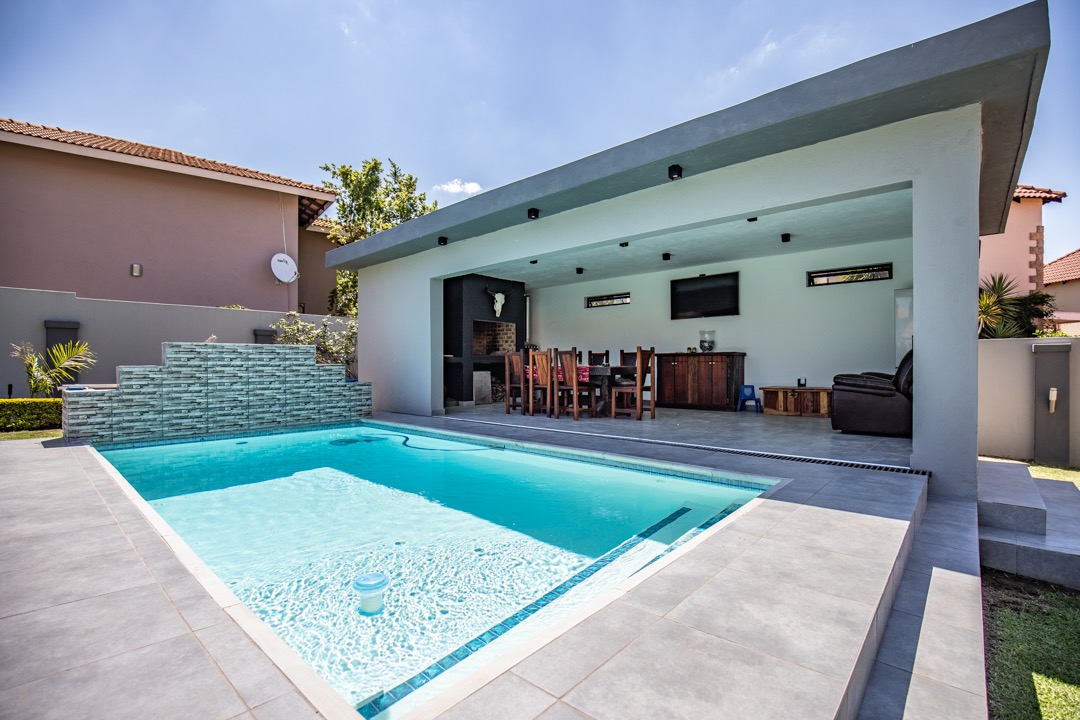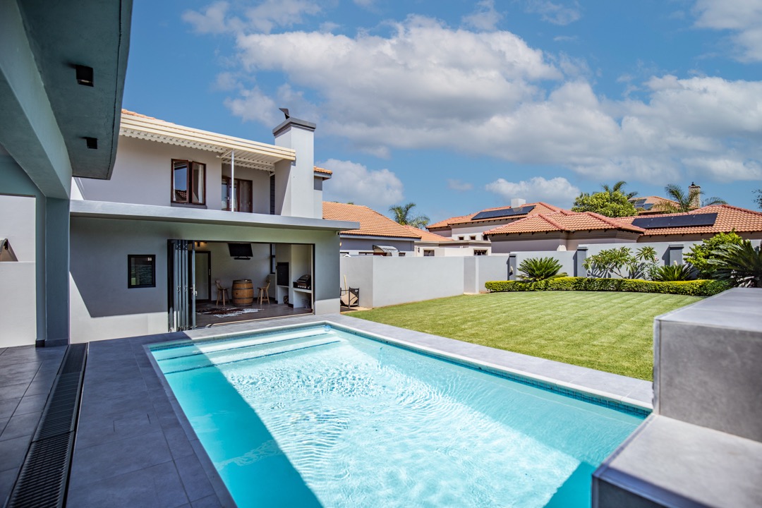 As you ascend the staircase, you'll find all the bedrooms conveniently located upstairs, along with an additional office and study room for added functionality. This property is truly an entertainer's dream, featuring a marvellous pool and a well-designed entertainment area and a built in braai stand for guests to relish. The lush, well-maintained garden adds to the property's charm. Security is a priority in this tight and secure area with 24-hour guarding, ensuring peace of mind. Moreover, its prime location near Six Fountains Lifestyle Centre, The Grove mall, and the National Highway N4 provides convenient access to shopping and transportation, making this residence an ideal blend of luxury and practicality.