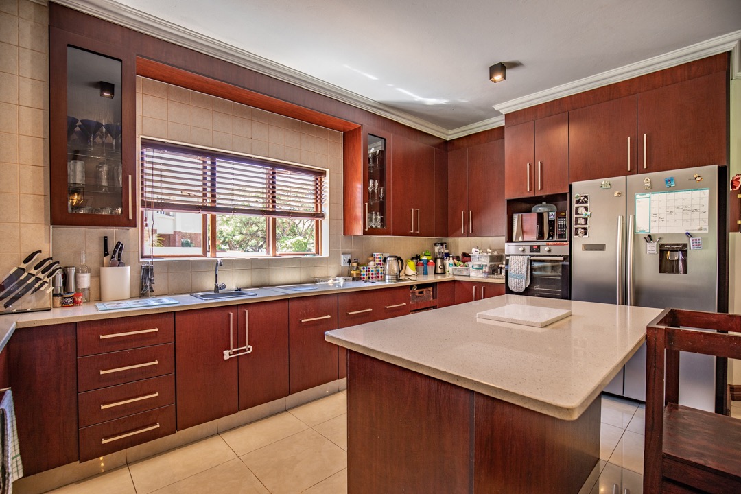 Welcome to this absolutely gorgeous property nestled in the heart of Six Fountains. Boasting 4 bedrooms, 3 bathrooms and a maids quarter, this spacious home invites you into a warm and expansive open-plan lounge and living area the moment you step through the front door. Downstairs, discover a versatile room perfect for use as a study or guest bedroom. The kitchen, a chef's dream, features ample cupboard space and magnificent countertops, setting the stage for culinary delights.