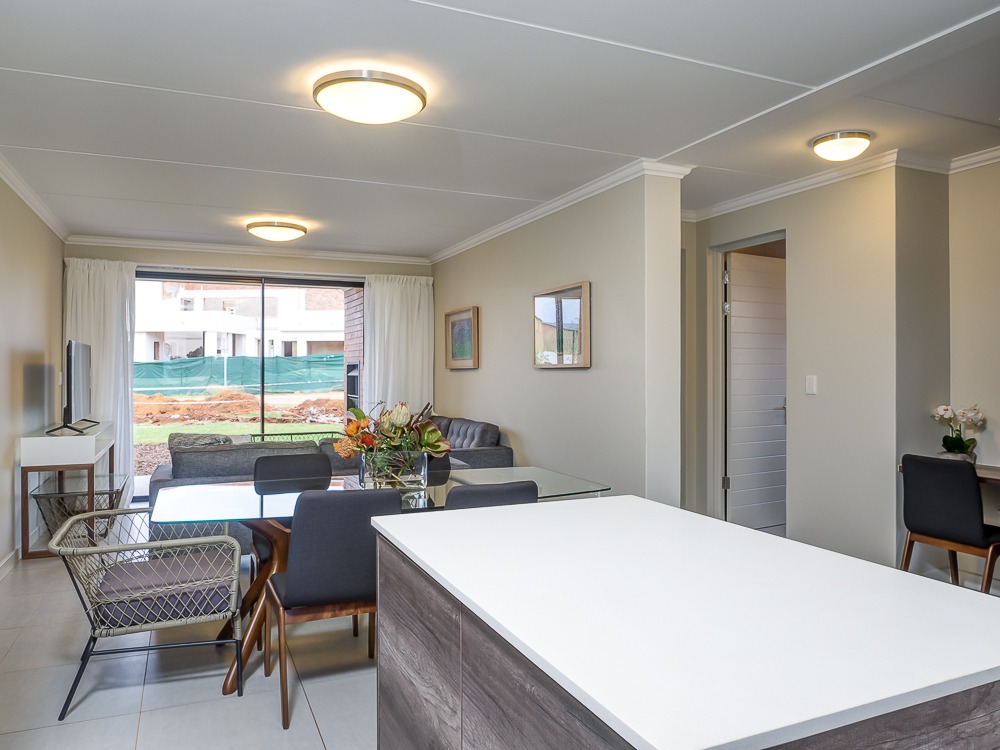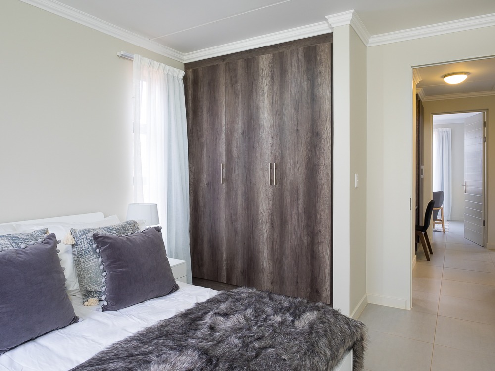 Step into a world of modern elegance. Our 3-bedroom apartment feature vaulted ceilings, high-end finishes like Hans Grohe taps and solid wood doors, gourmet kitchens, and expansive living areas that flow onto a covered patio with a built-in braai. Wake up to the serenity of nature from your luxurious retreat.
