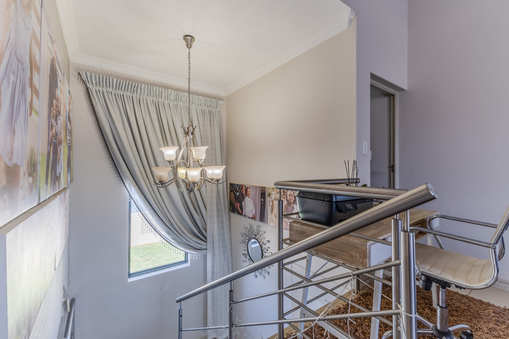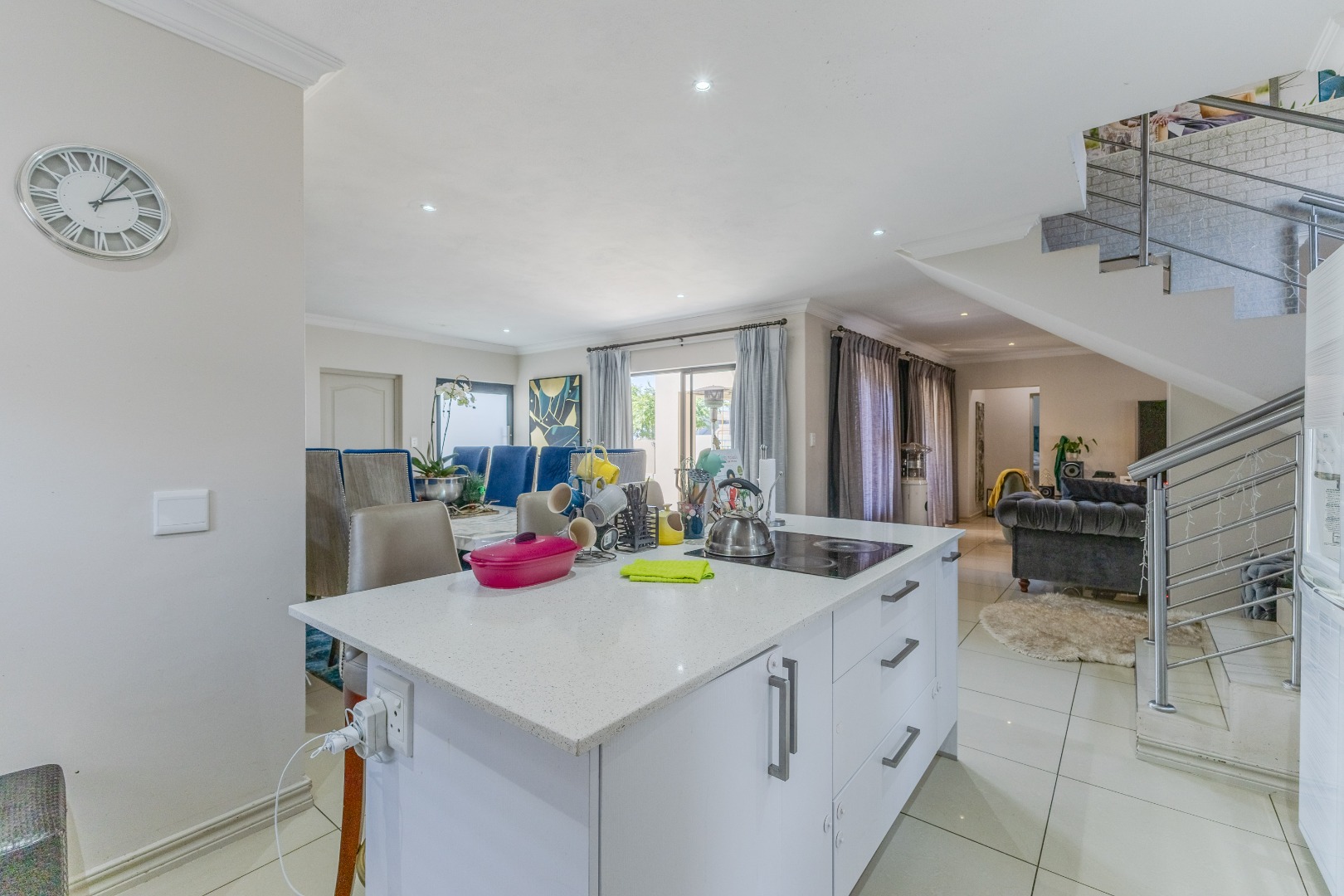 Come and discover this lovely 4-bedroom, 3-bathroom home available for rent in the sought-after The Hills Game Reserve Estate in Pretoria. This modern property is designed for comfortable living, featuring an inviting open-plan layout that seamlessly connects the living spaces. You'll find a bright, well-equipped kitchen with sleek white cabinetry, a large island perfect for casual meals or entertaining, and integrated appliances that make daily life a breeze. The dining area flows nicely from the kitchen, creating a great space for family dinners. Upstairs, you'll find the spacious bedrooms, including one with its own en-suite bathroom, offering a private retreat. There's also a convenient guest toilet downstairs. The home boasts modern finishes throughout, including stylish tiled flooring and a contemporary staircase. For your vehicles, there are two garages, and the property even includes staff quarters, adding to its practicality. Plus, it's pet-friendly, so your furry friends are welcome to join the family fun! Imagine spending sunny days by your private pool, enjoying the fantastic South African weather. This home is perfect for families looking for a secure and vibrant lifestyle within an eco-estate and nature reserve setting. You'll also benefit from fibre connectivity, ensuring you stay connected. The Hills Game Reserve Estate offers a unique blend of luxury living and natural beauty, making it a truly special place to call home. Key Features: * 4 Bedrooms, 3 Bathrooms (1 En-suite) * Modern Open-Plan Living * Well-Equipped Kitchen with Island * Private Swimming Pool * 2 Garages & Staff Quarters * Pet-Friendly Property * Fibre Ready * Located in The Hills Game Reserve Estate, Pretoria