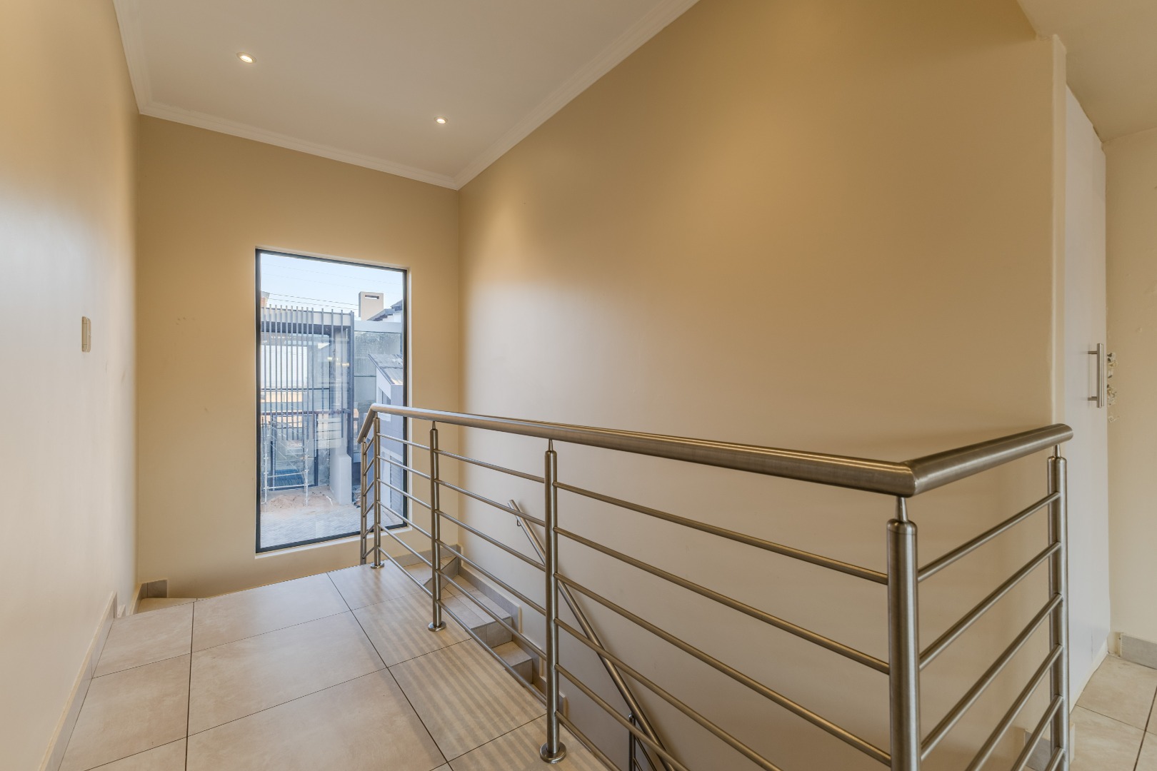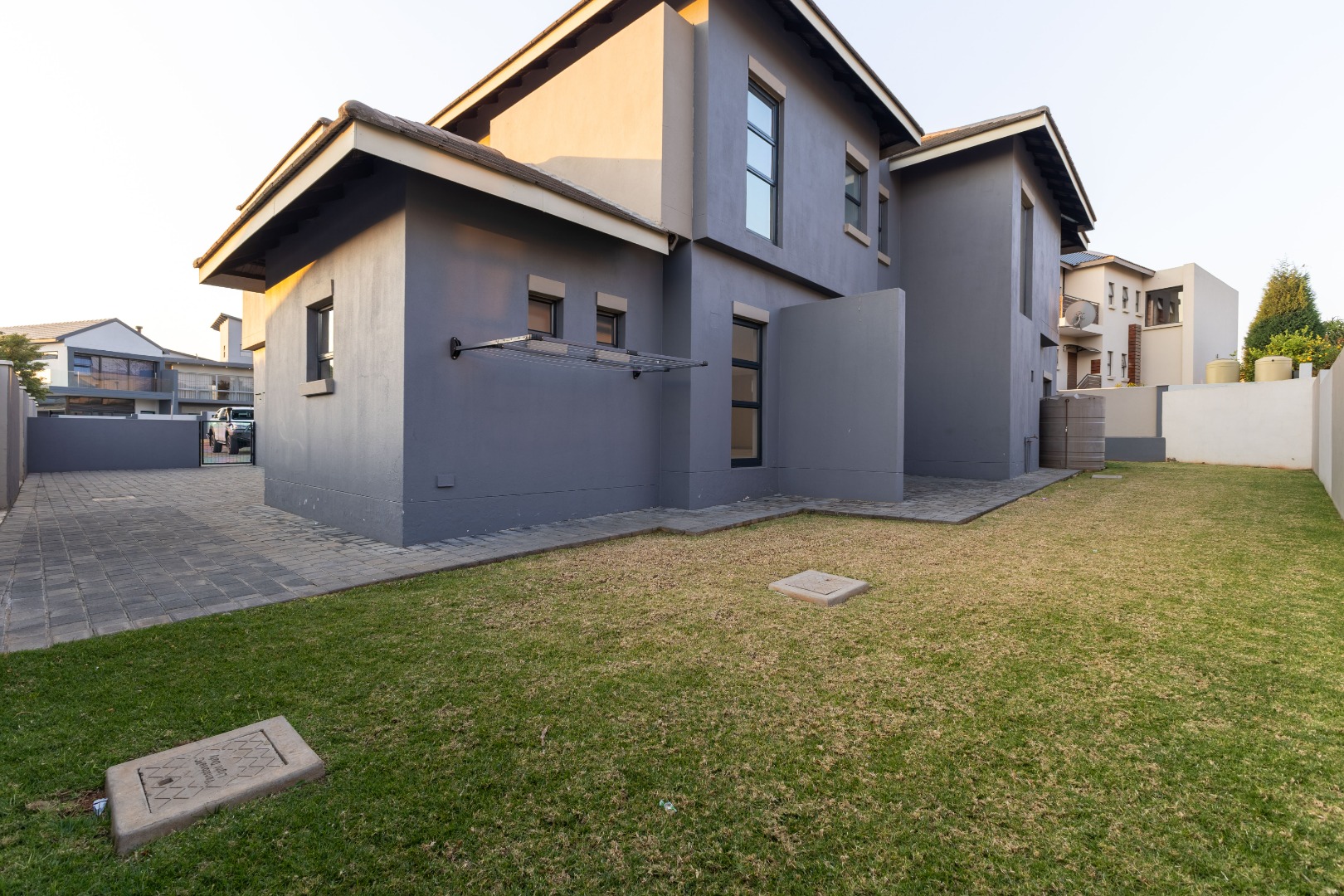 This modern, two-story residential property offers a spacious living experience with 4 bedrooms and 3 bathrooms. The contemporary design is evident from the entrance hall, leading to expansive open-plan living areas. Large sliding glass doors invite abundant natural light and provide access to multiple balconies. Interiors boast neutral walls, durable tiled and modern laminate flooring, recessed lighting, and elegant crown molding. A dedicated family TV room provides versatile space, complemented by a well-appointed kitchen and ample built-in storage. Designed for comfortable family living, this unfurnished home allows tenants to personalise the space. Practical features include a double garage and staff quarters. The modern bathroom features a freestanding bathtub and floating vanity, adding a touch of luxury. Situated within a prestigious eco-estate in Pretoria, residents benefit from an exclusive nature reserve lifestyle. This esteemed estate offers a secure environment and access to a gym, promoting an active lifestyle. Connectivity is ensured with fibre infrastructure, and the property is equipped with water tanks for enhanced sustainability. Pretoria's premier eco-estate provides a unique blend of urban convenience and natural tranquility, making it a highly sought-after address. This prime location offers residents a serene escape while remaining close to essential amenities. Key Features: * 4 Bedrooms, 3 Bathrooms * Modern Two-Story Design * Spacious Open-Plan Living * Multiple Balconies * Double Garage * Fibre Ready * Eco Estate & Nature Reserve Lifestyle * Access to Gym * Staff Quarters
