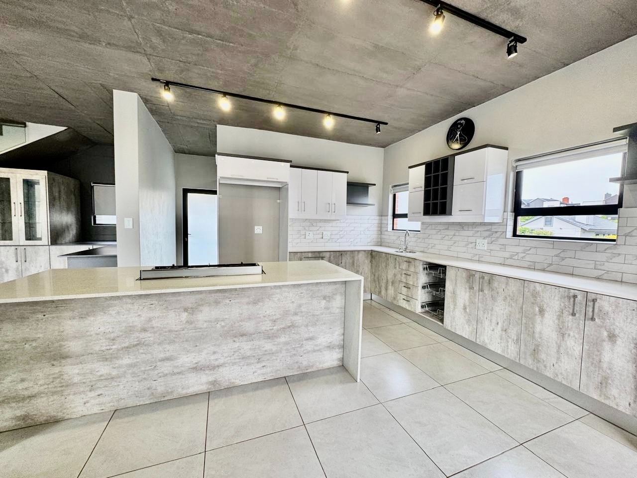 The modern kitchen features a large central island, ample cupboard space and a separate scullery to keep the living areas neat and uncluttered. A guest bedroom with its own en-suite bathroom is conveniently located on the ground floor.