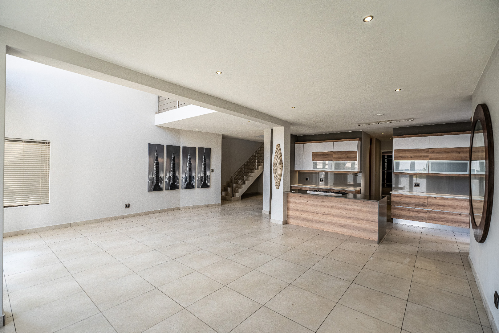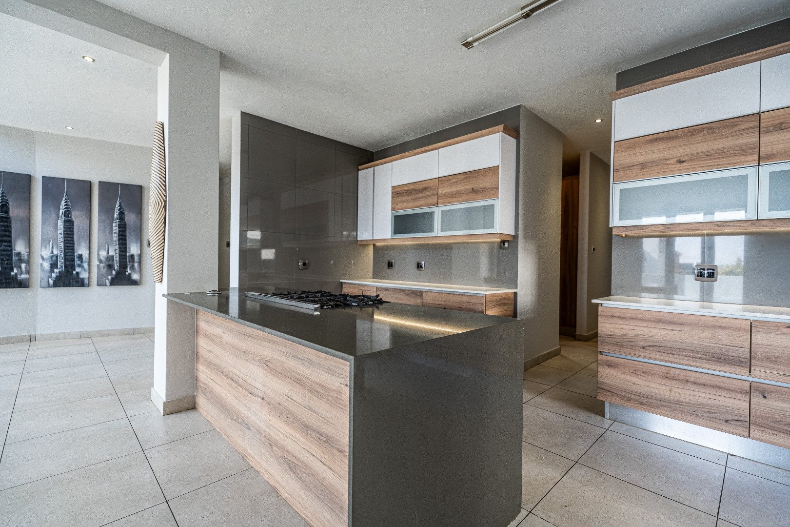 - Open Plan Living Area: Seamlessly integrates the living room, dining area, and kitchen, enhanced by beautiful artwork pieces that add a touch of sophistication.
