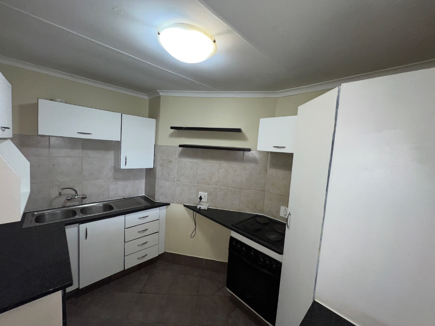 The inviting open-plan lounge and dining area provides a spacious environment for relaxation and entertaining, extending to a private balcony – perfect for morning coffee or evening sundowners. The modern kitchen features sleek finishes, ample cabinetry, and dedicated space for appliances.