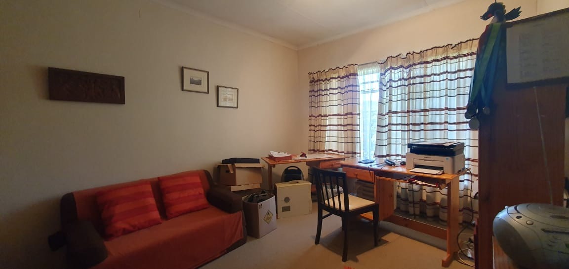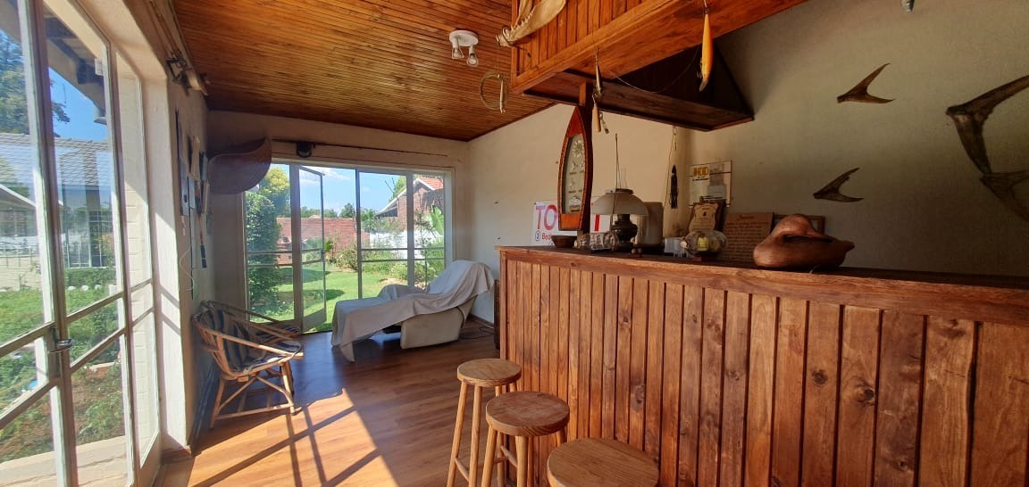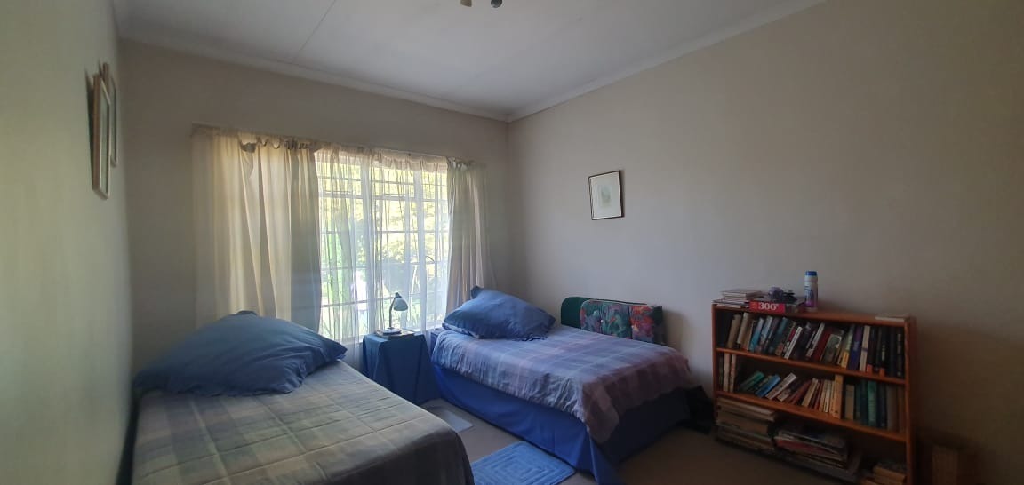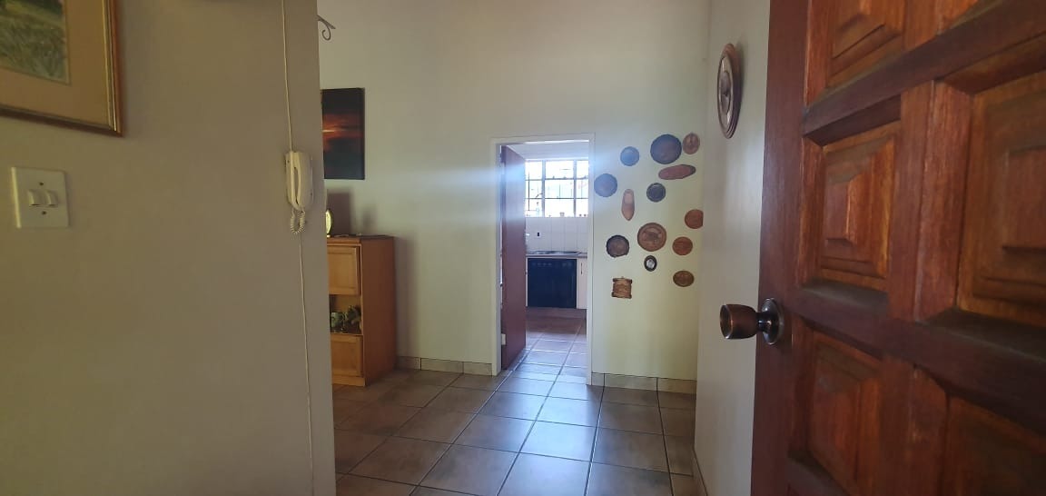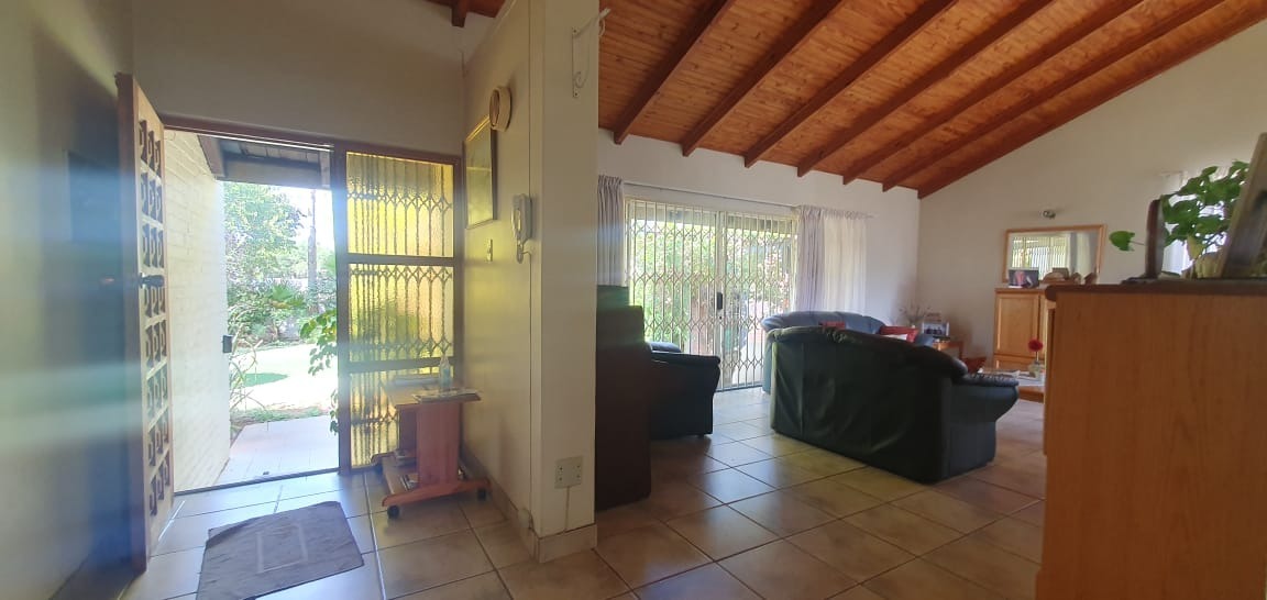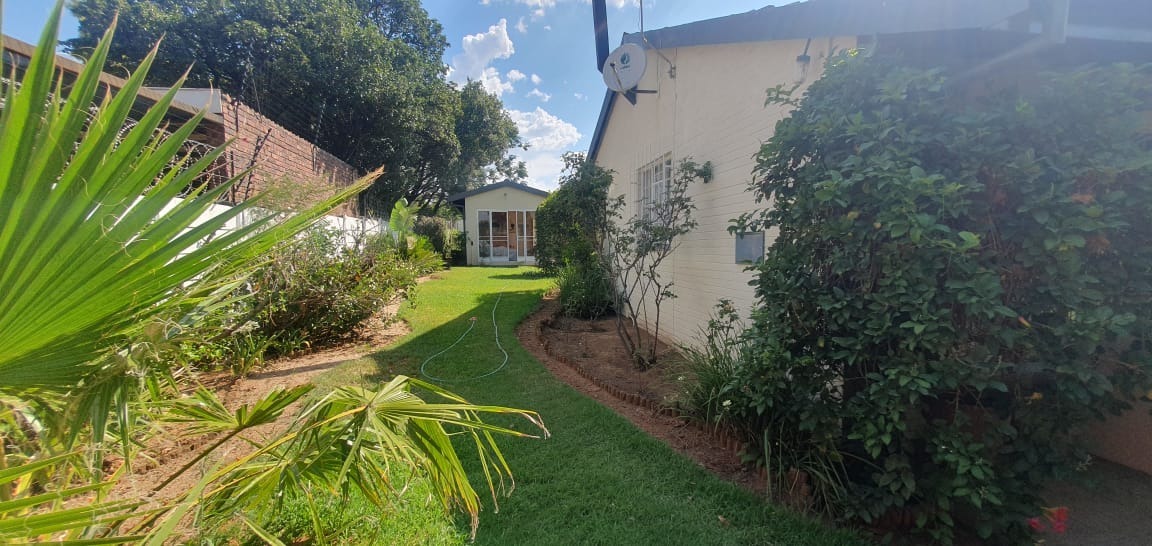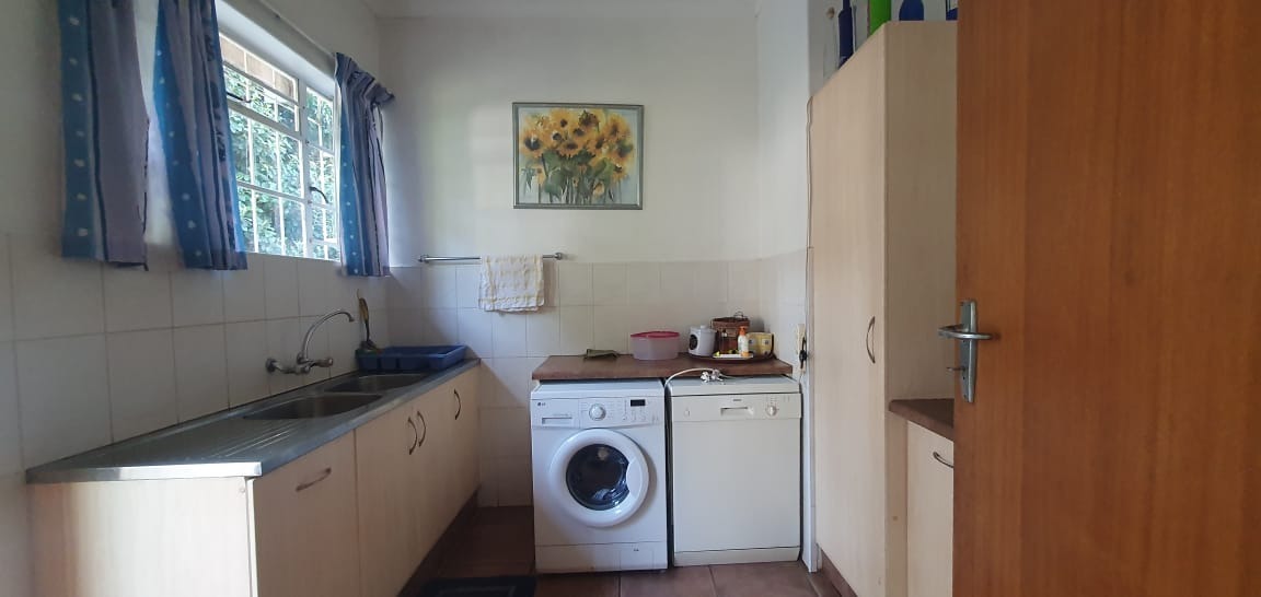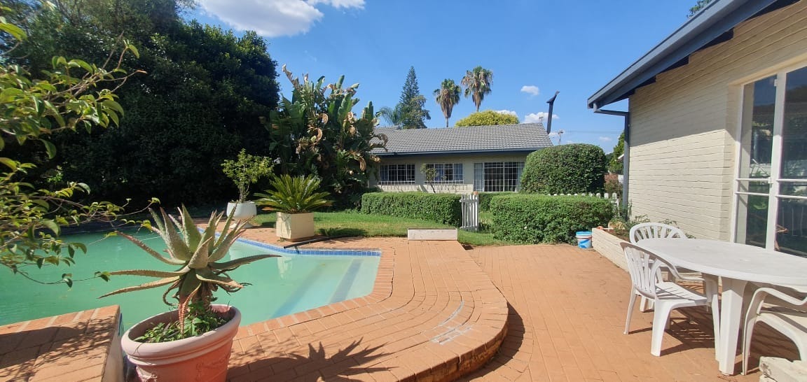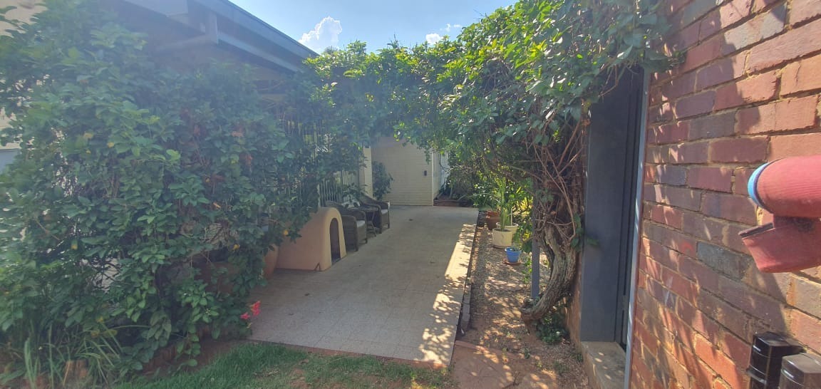 Externally, the property extends its appeal with a meticulously maintained 1200 sqm erf. Residents will appreciate the private garden, an inviting patio, and a refreshing swimming pool, ideal for relaxation and entertaining. A built-in braai facility further enhances outdoor living. The property also provides ample parking, including a double garage and additional parking spaces, all accessible via a paved driveway. This residence is pet-friendly, accommodating a variety of household needs.